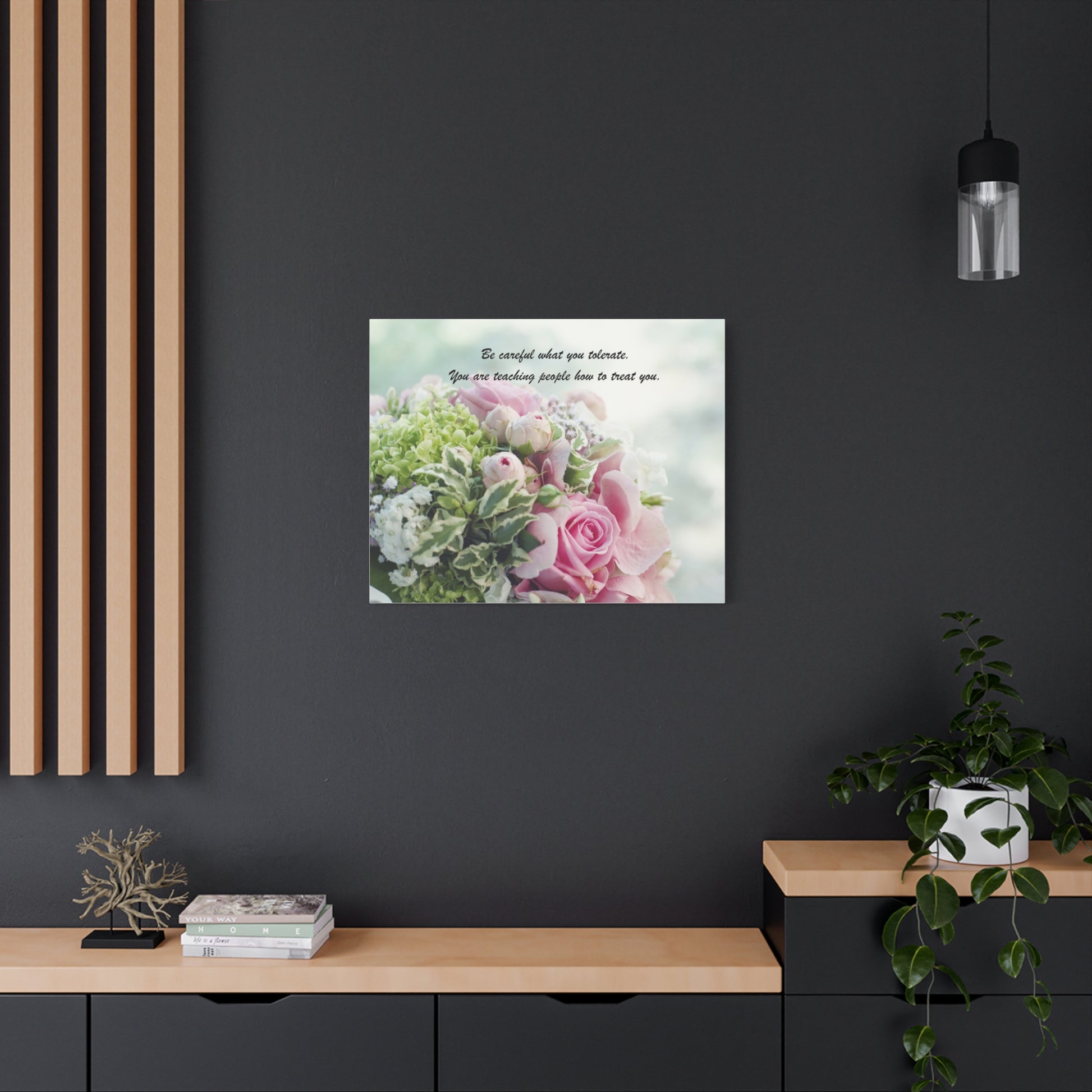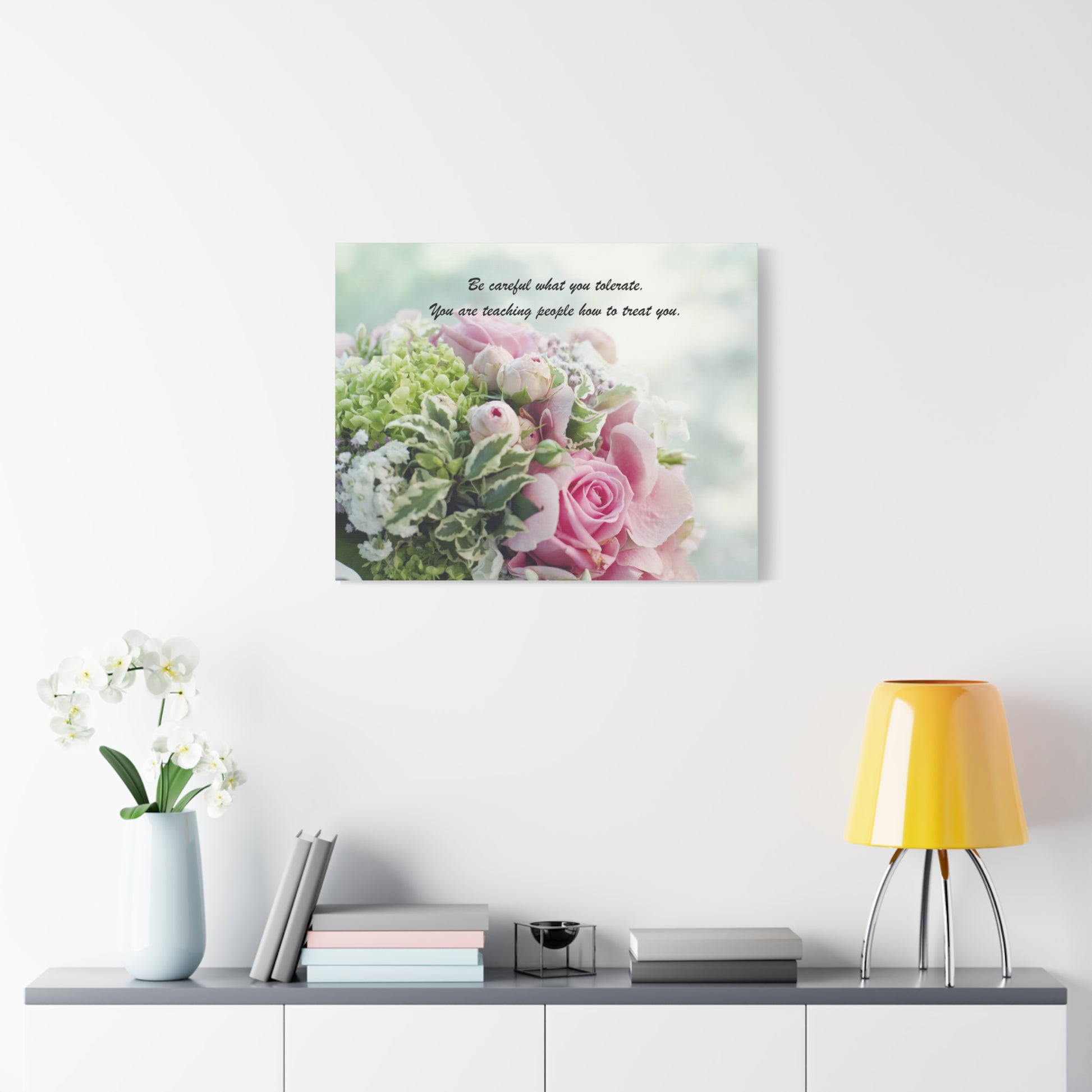 Floral Quote Canvas Print — "Be careful what you tolerate. You are teaching people how to treat you."
