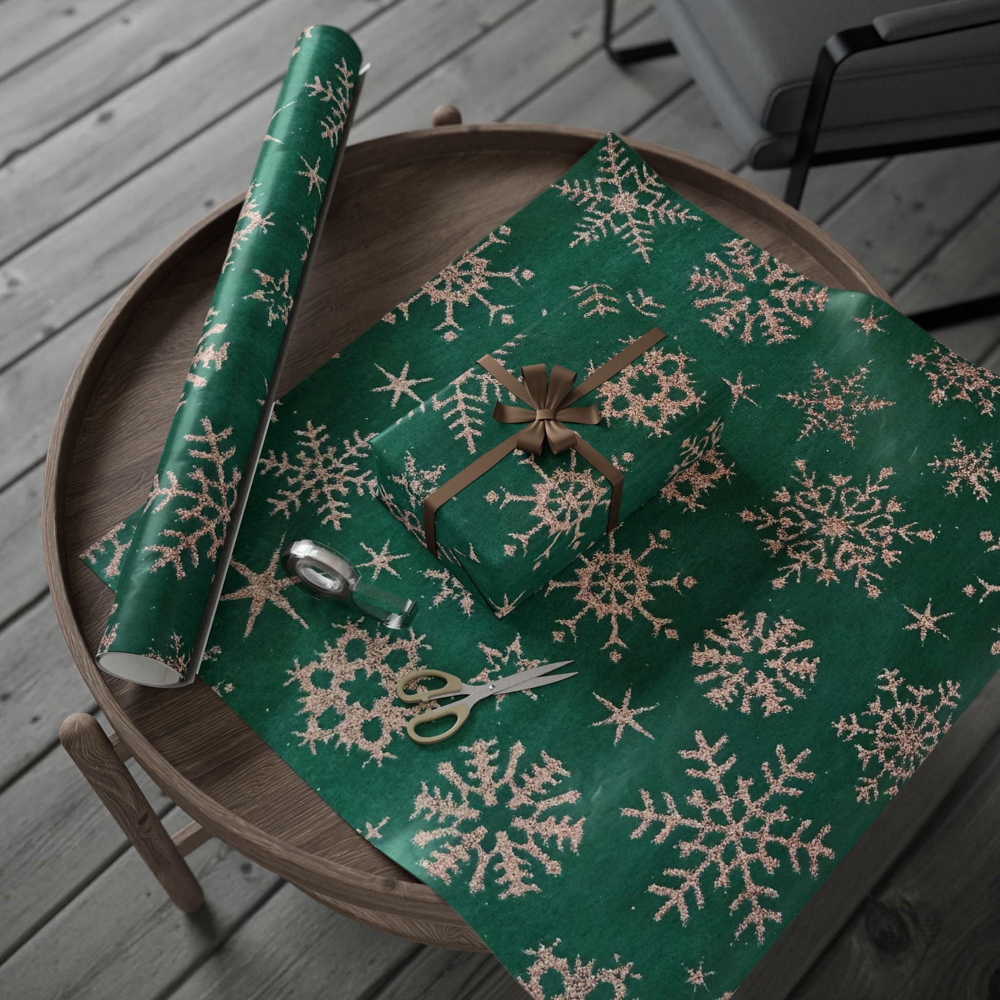 Green Snowflake Wrapping Paper Roll — Festive Holiday Gift Wrap
