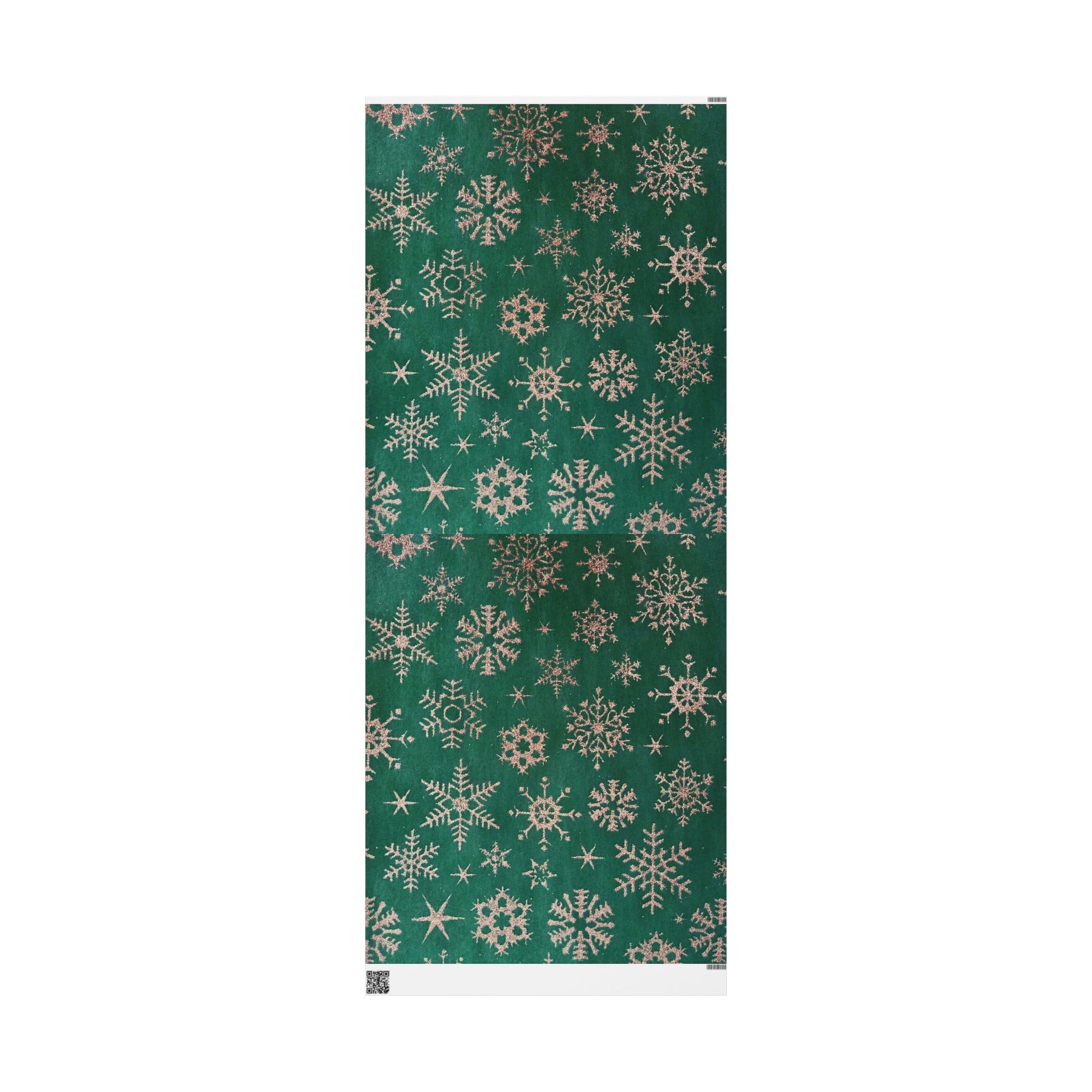 Deep forest-green wrapping paper patterned with delicate snowflake motifs, bringing a quiet, wintry charm to gift presentation. The subtle contrast of the pale snowflakes against the rich green creates a cozy, nostalgic mood — like a walk through a fir grove dusted with fresh snow. Lightweight yet durable, these single-sided sheets lend a refined, handcrafted feel to holiday bundles, small boxes, and long, narrow parcels. The finish options let you choose a soft, painterly matte or a luminous glossy sheen depending on whether you want a muted, rustic look or a brighter, festive shimmer. Printed in high-definition on fine art paper, the design keeps edges and details crisp and elegant, turning even simple gifts into moments that feel thoughtfully wrapped and cared for.