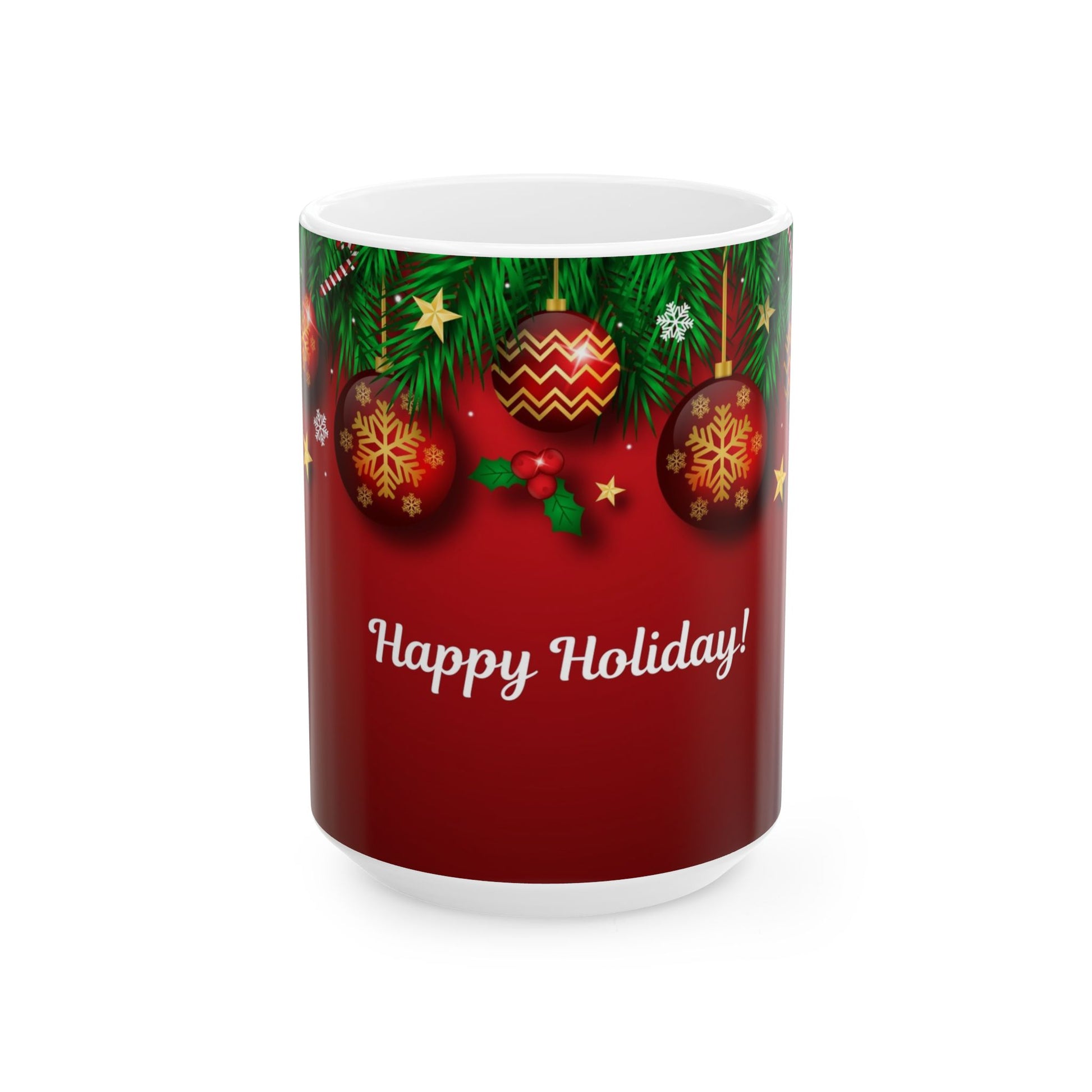 Happy Holiday Ceramic Mug — Festive Christmas Ornaments (11oz & 15oz)