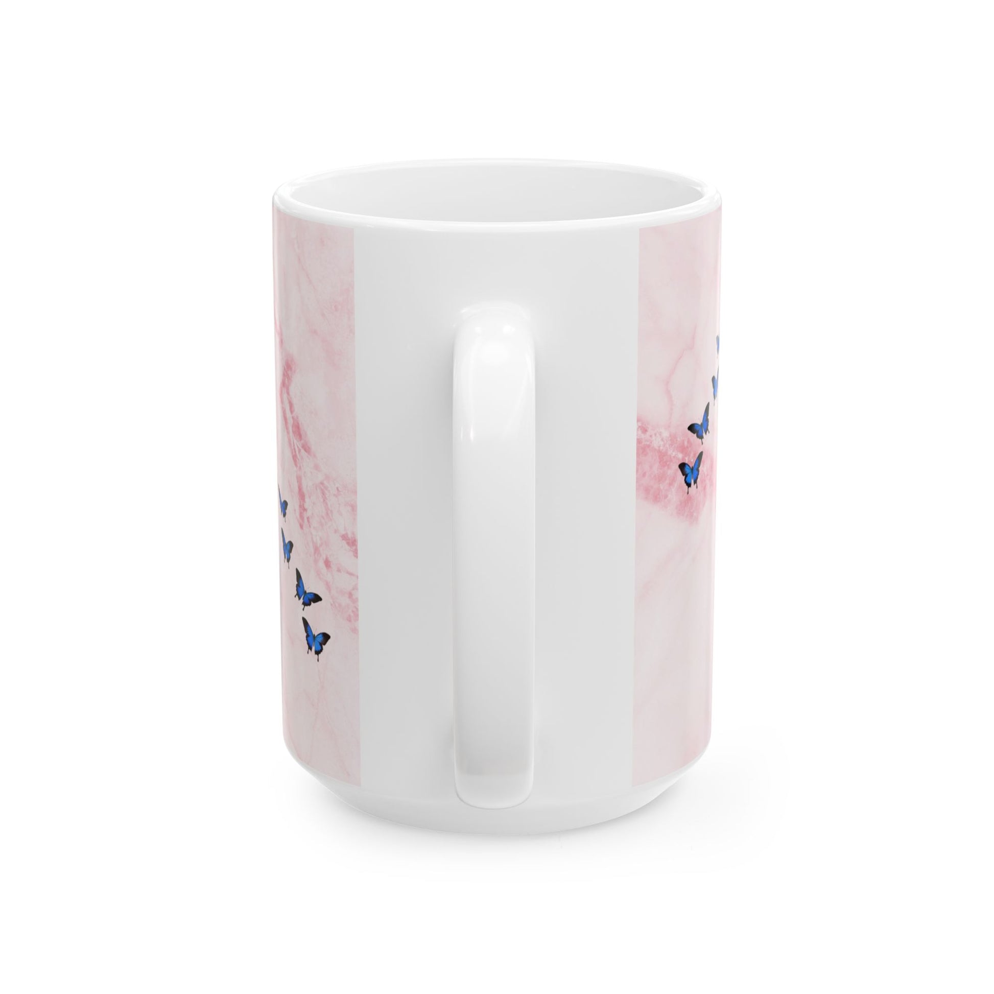 Healing Quote Mug — Pink Marble Butterfly Inspirational Ceramic Coffee Cup (11oz/15oz)