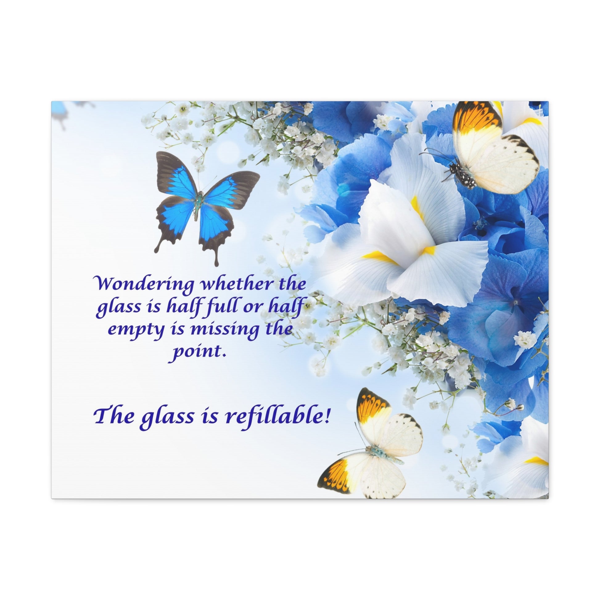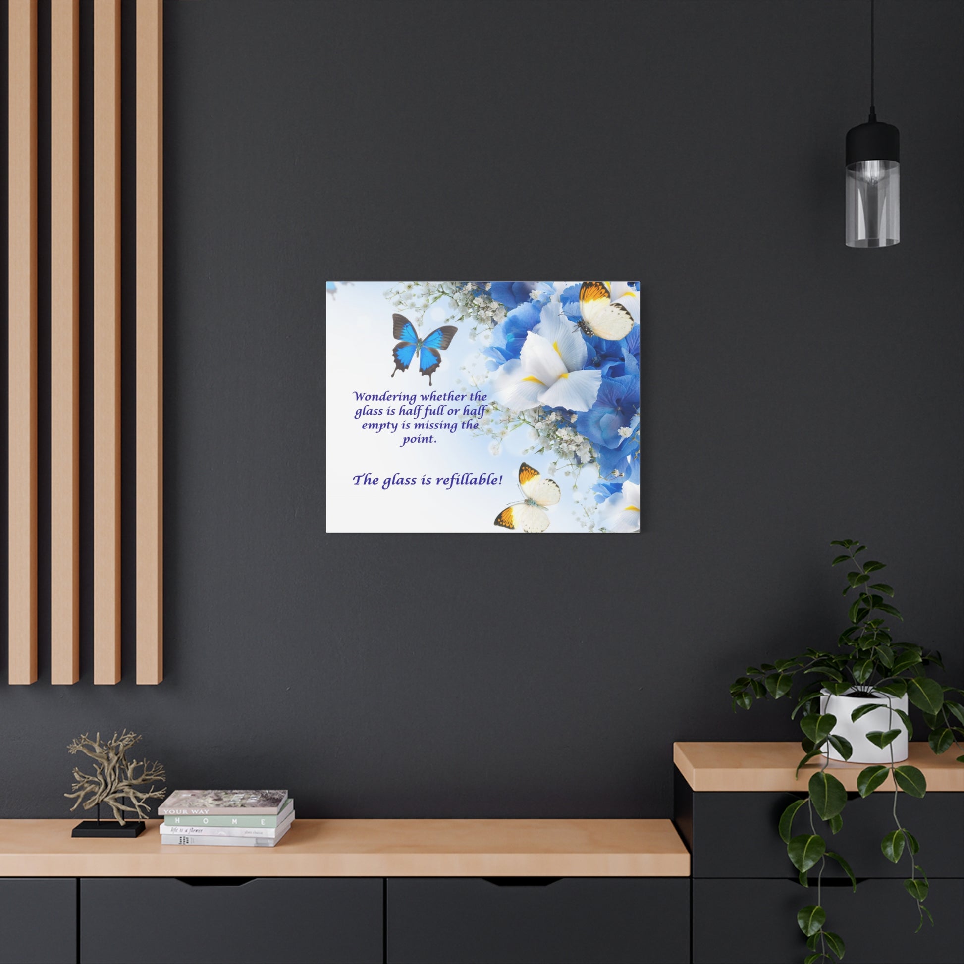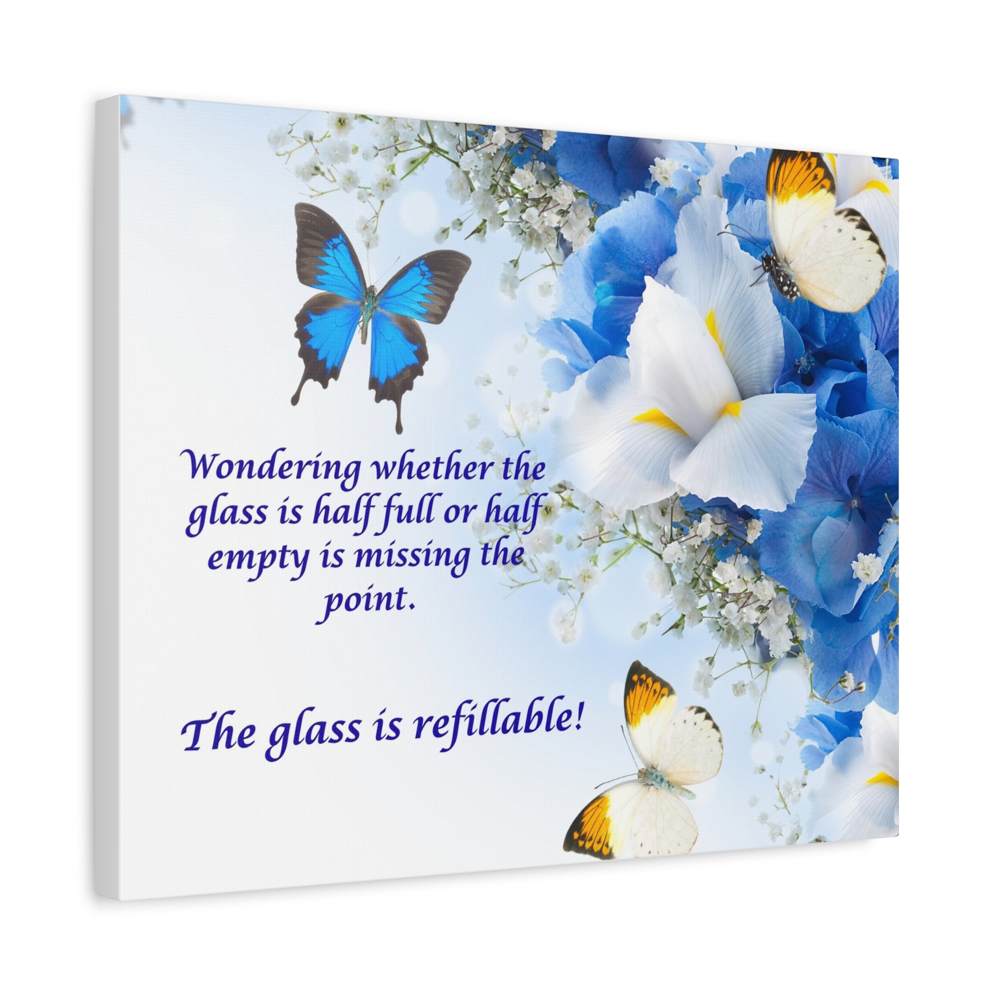 Inspirational Butterfly Canvas Wall Art — "The glass is refillable!" Motivational Floral Print