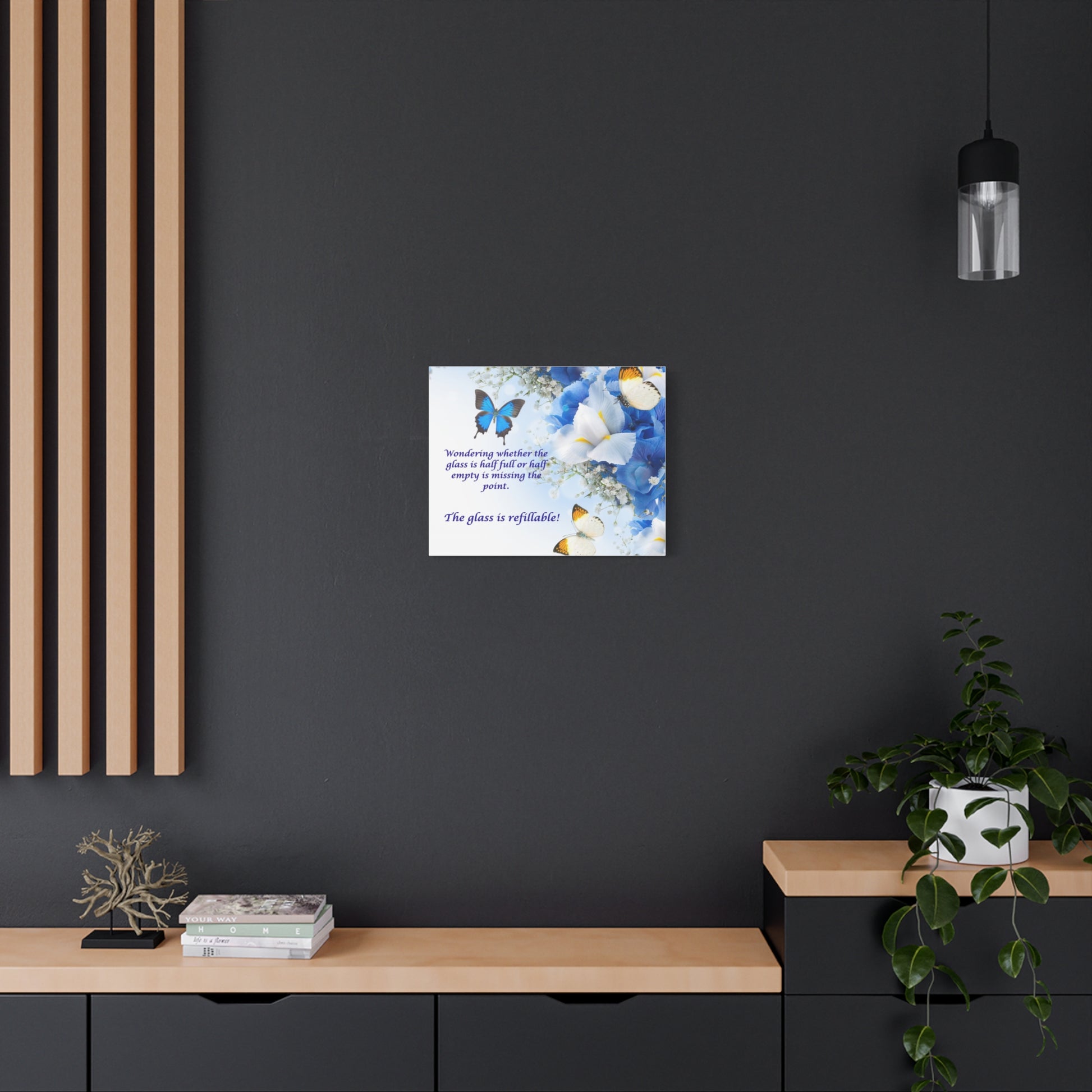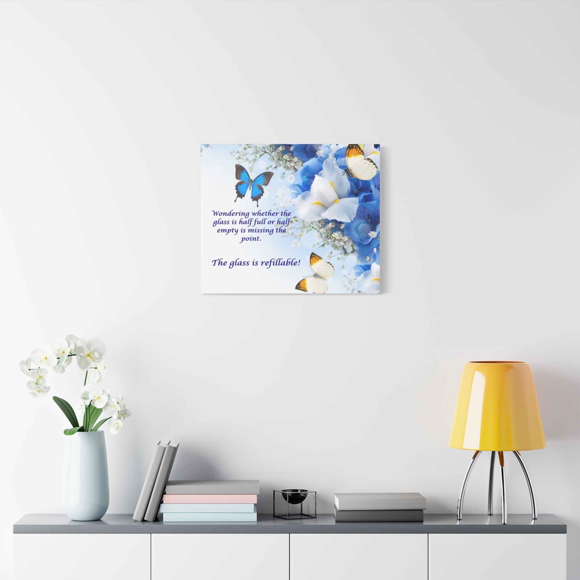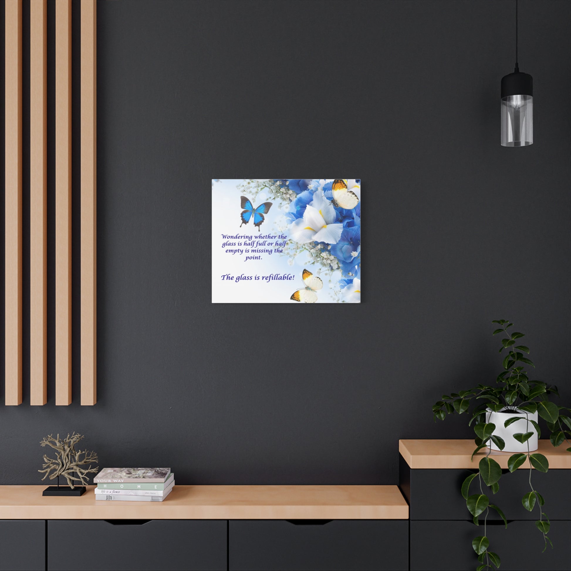 Inspirational Butterfly Canvas Wall Art — "The glass is refillable!" Motivational Floral Print
