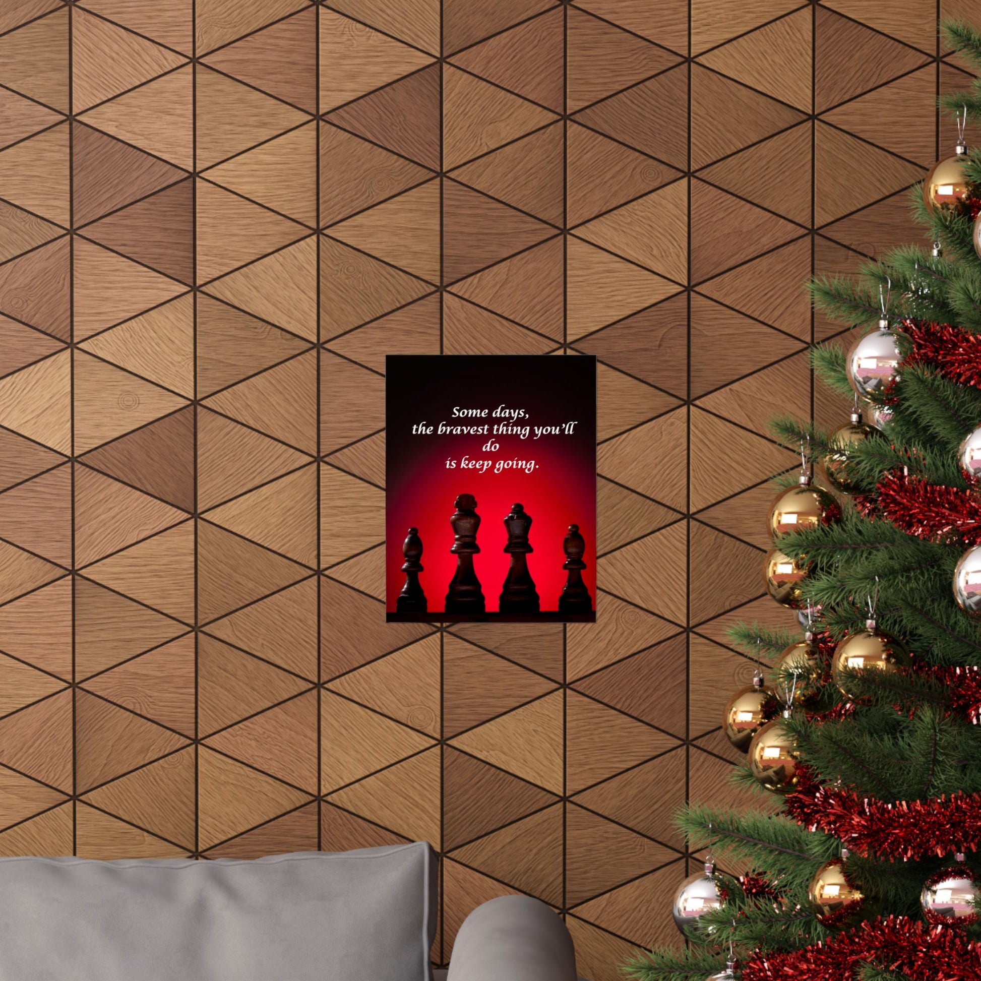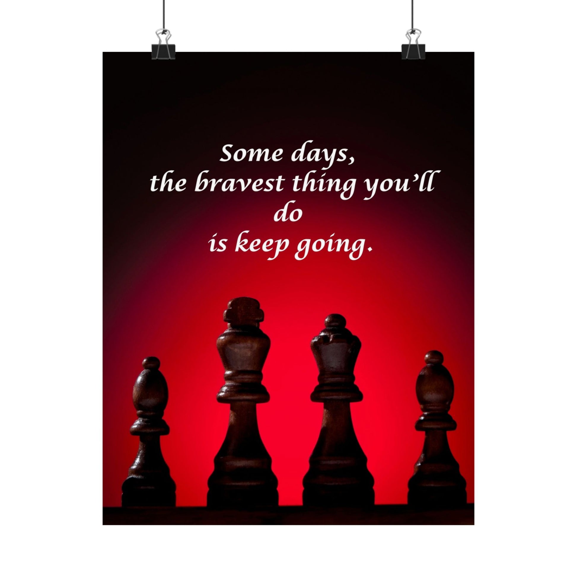 Inspirational Chess Poster — “Some days, the bravest thing you’ll do is keep going.” Matte Vertical Print