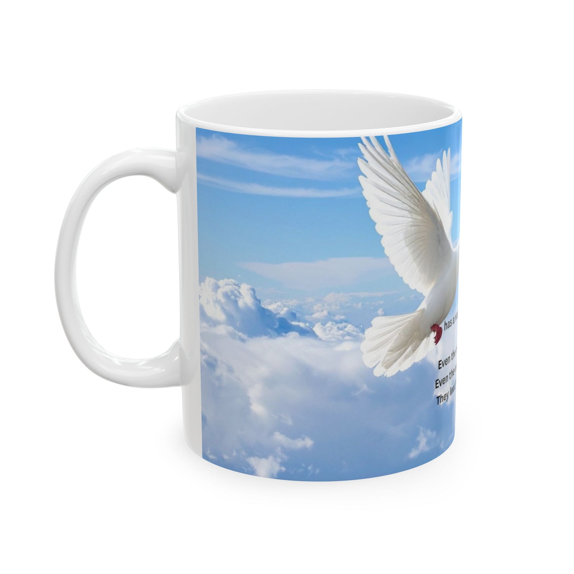 Inspirational Dove Ceramic Mug – "Life has a way of working itself out" Sky Message Coffee Cup (11oz, 15oz)