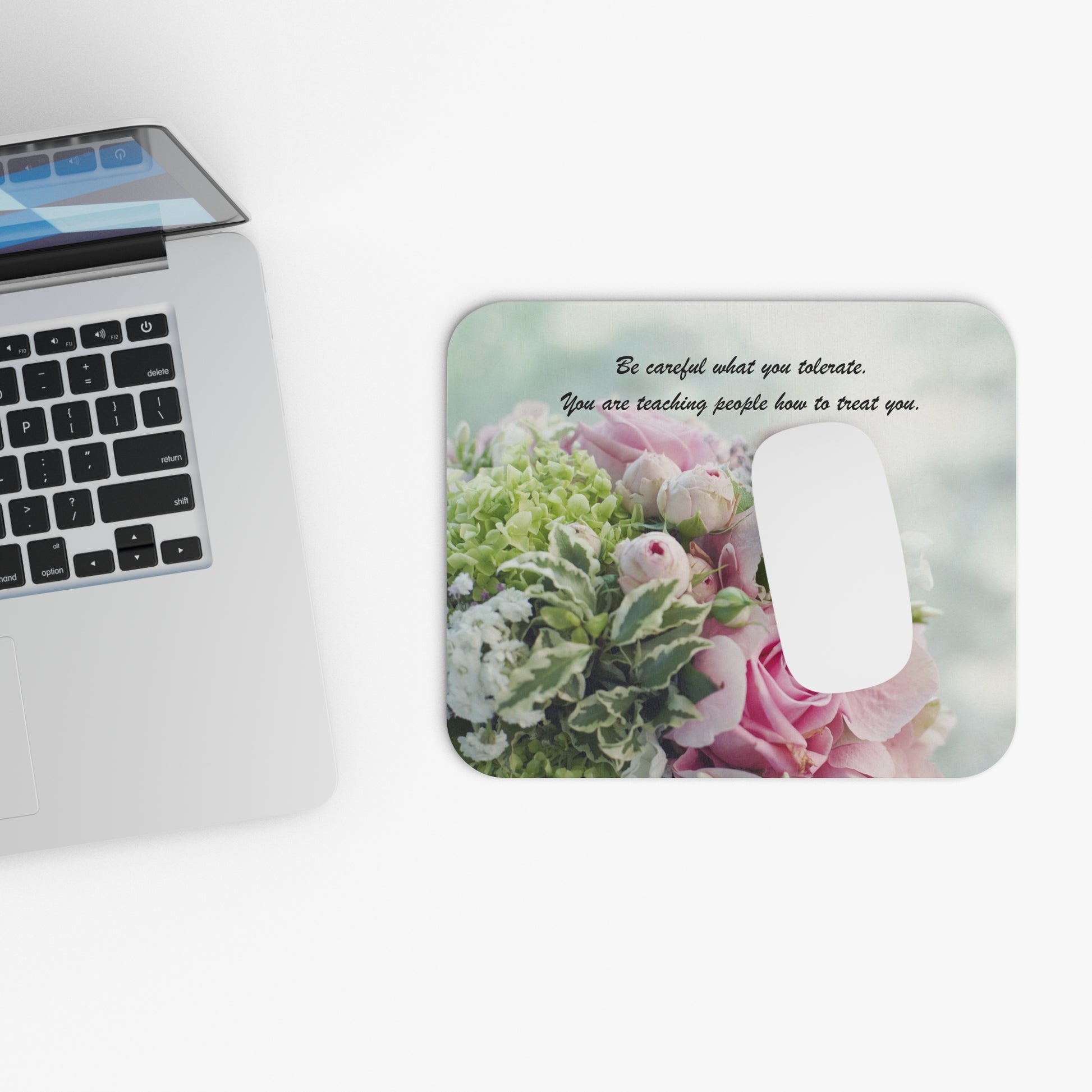 Inspirational Floral Mouse Pad — “Be careful what you tolerate. You are teaching people how to treat you.”