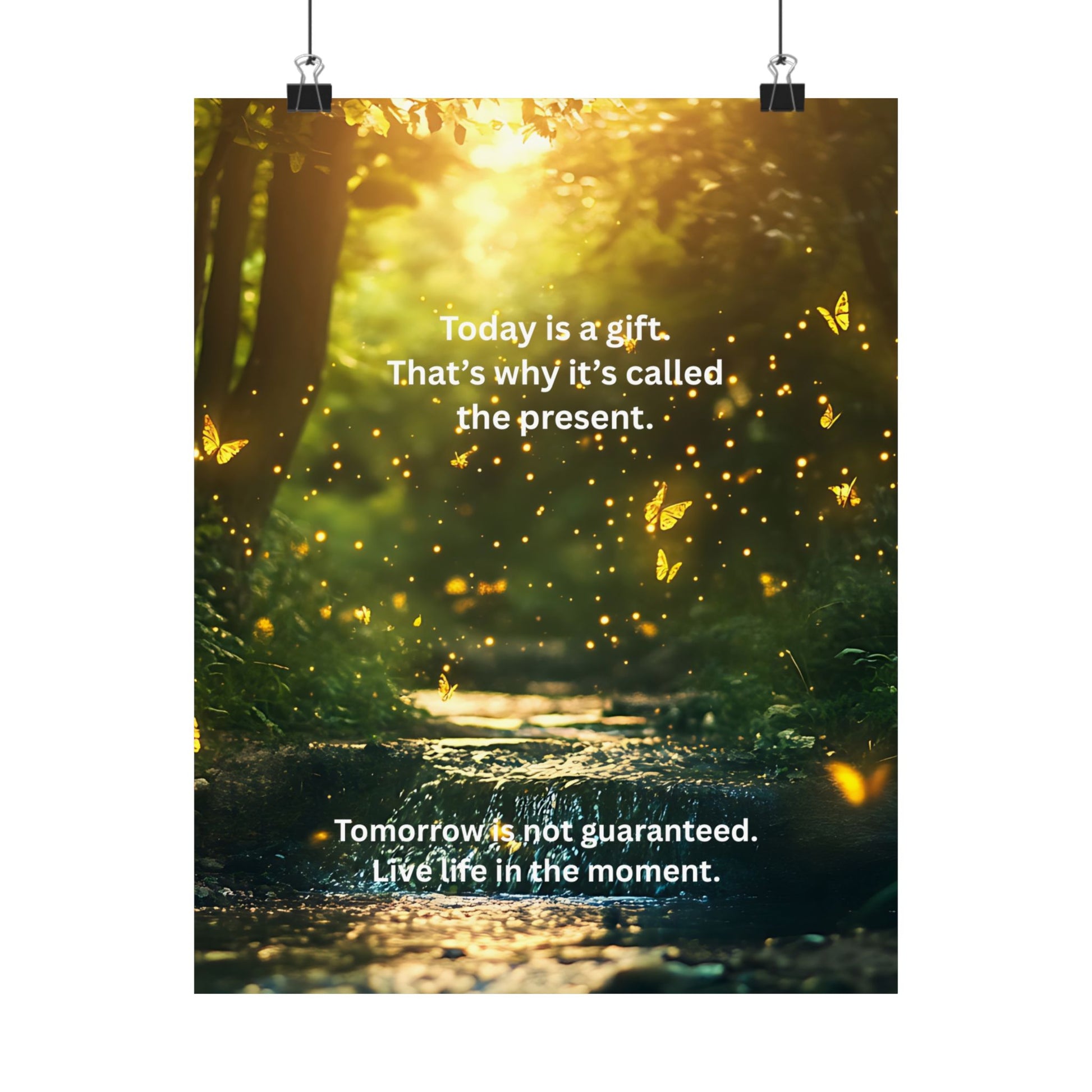 Inspirational Forest Poster – "Today is a gift. That's why it's called the present." Matte Vertical Wall Art