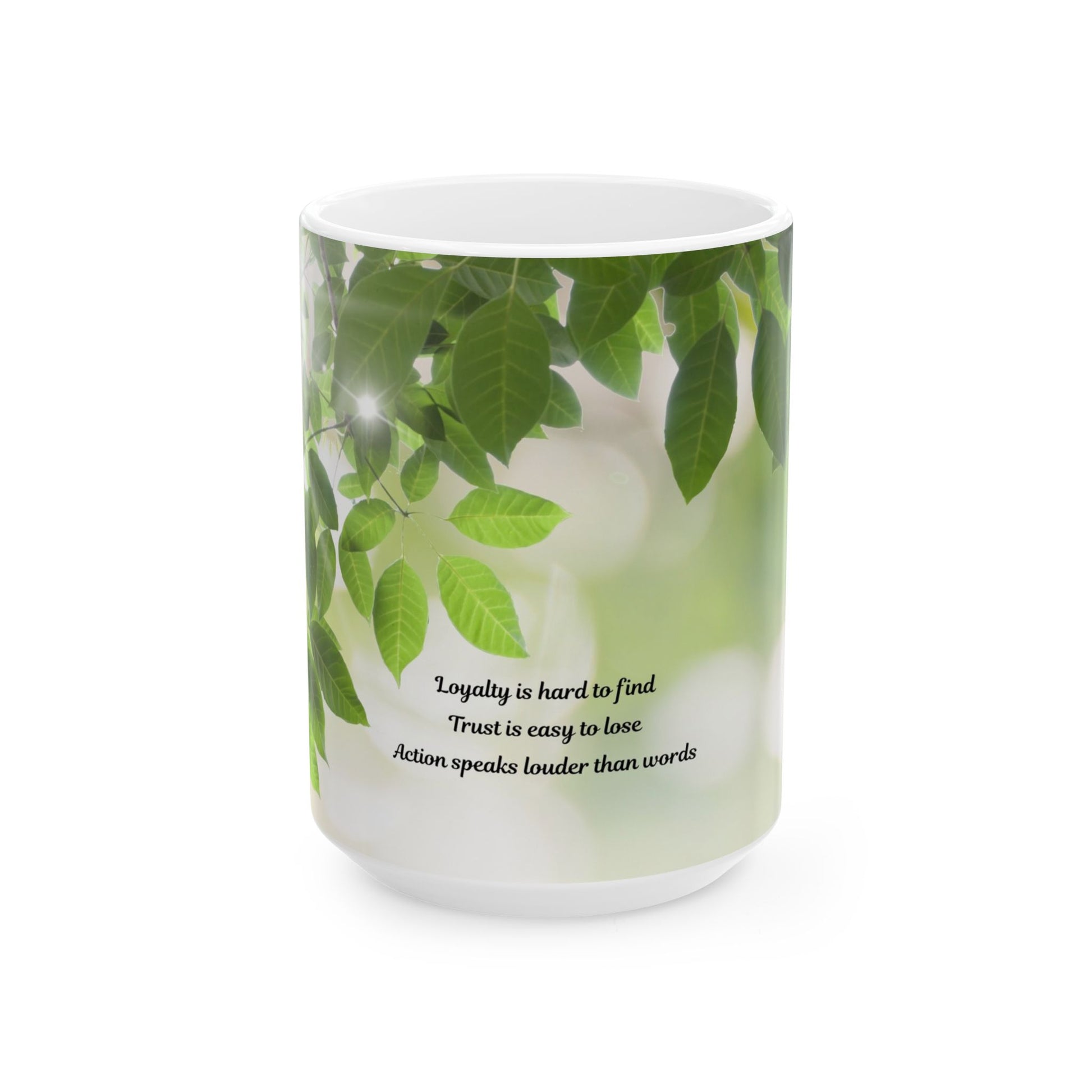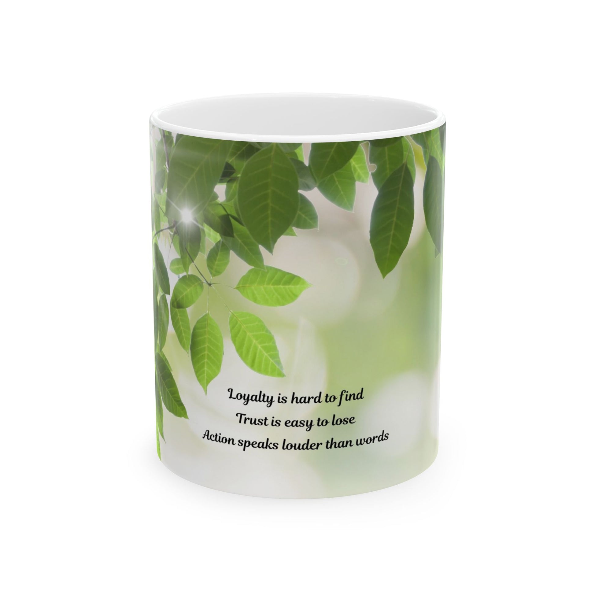 Inspirational Green Leaves Ceramic Mug — "Loyalty is hard to find" Quote (11oz, 15oz)