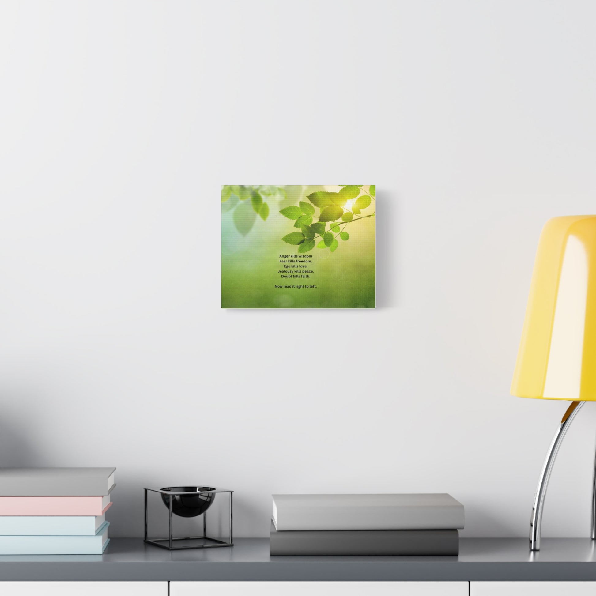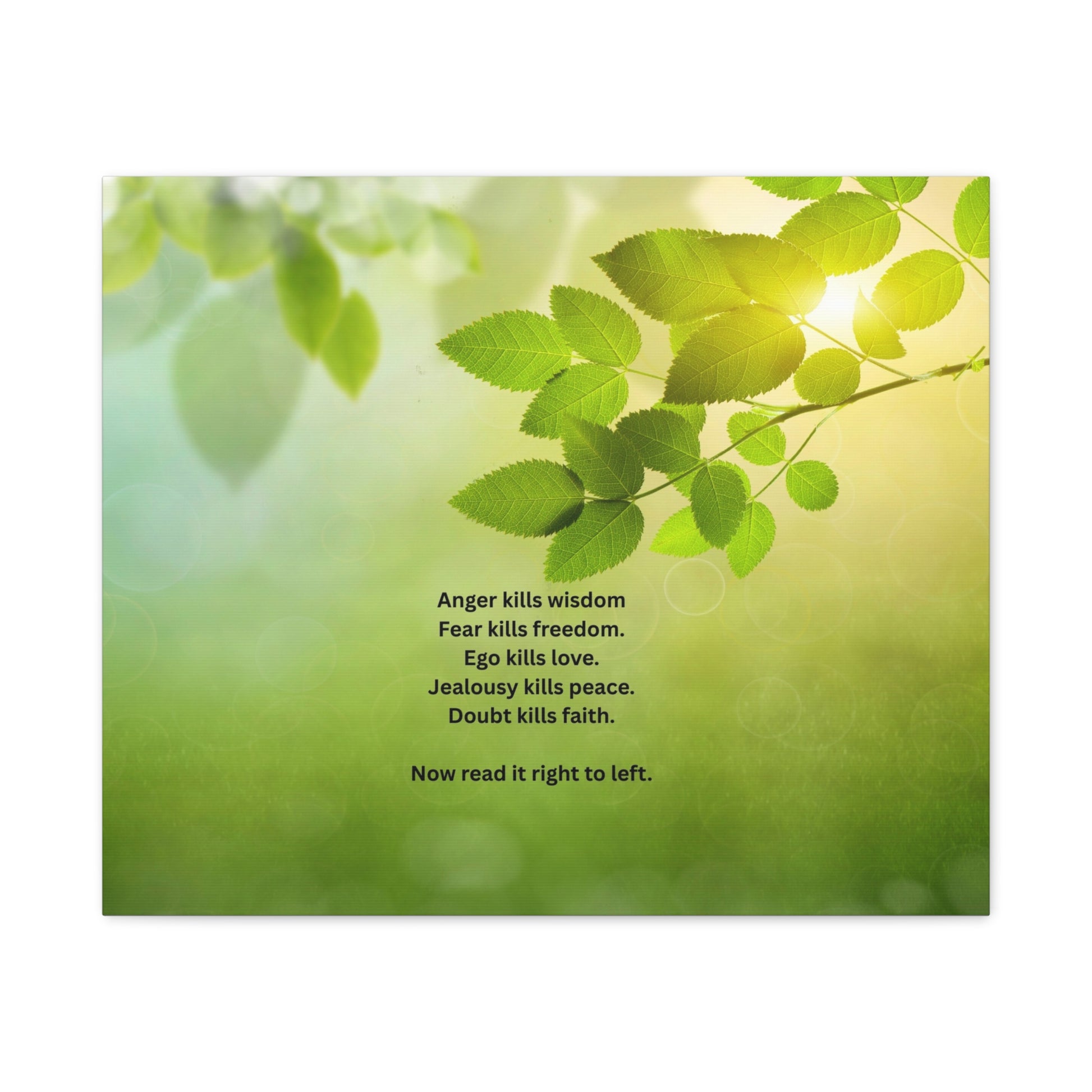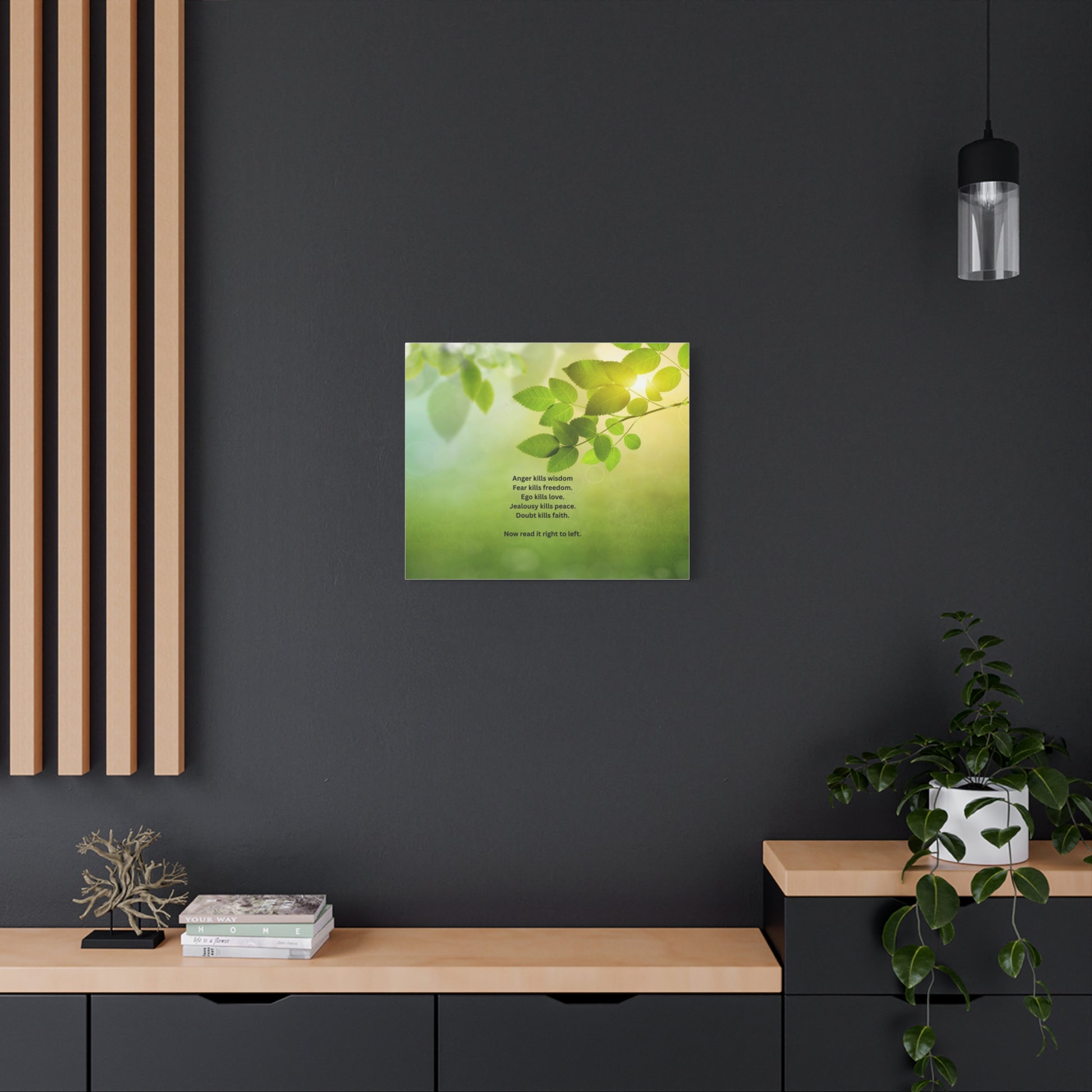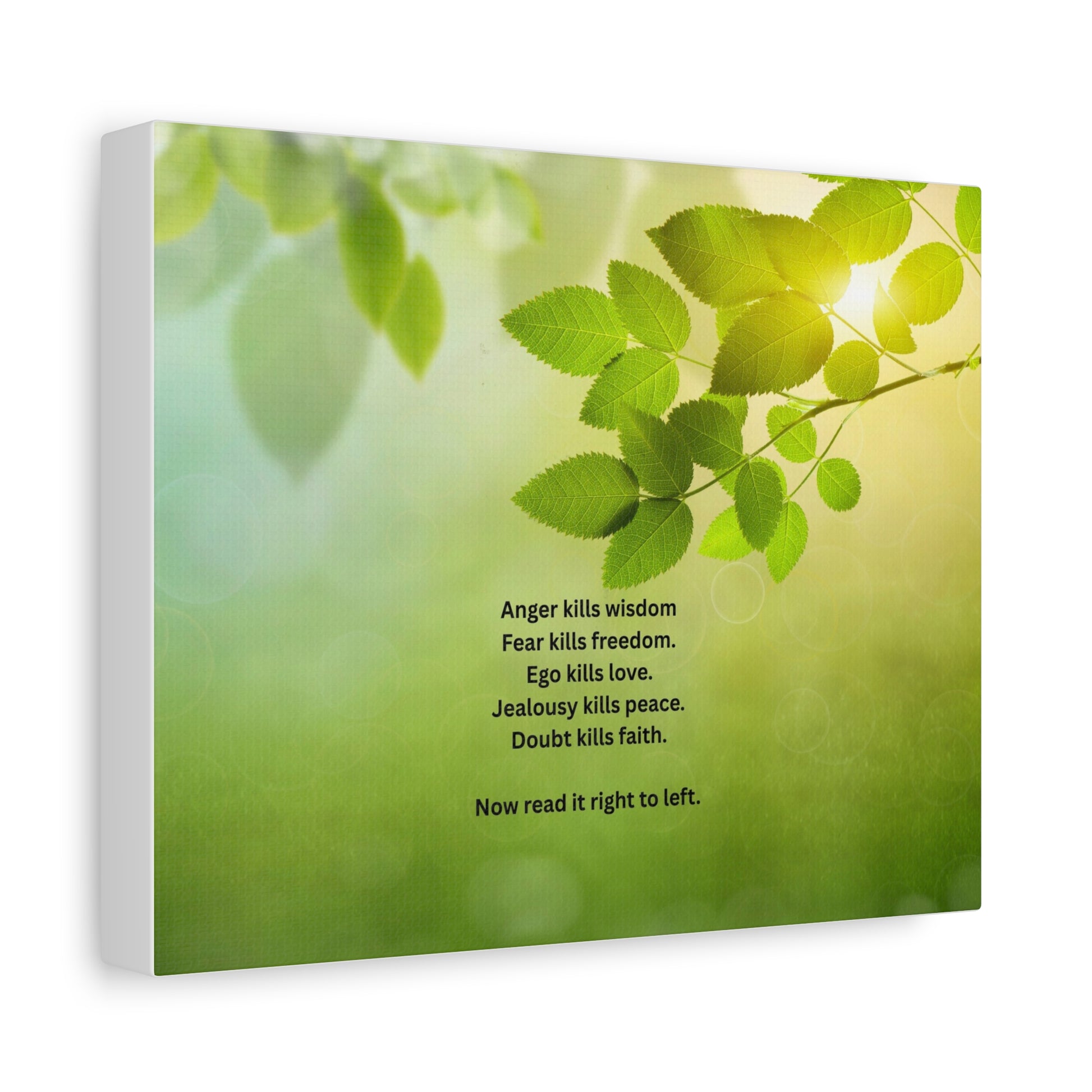 Inspirational Leaf Canvas Wall Art — "Anger kills wisdom... Now read it right to left"