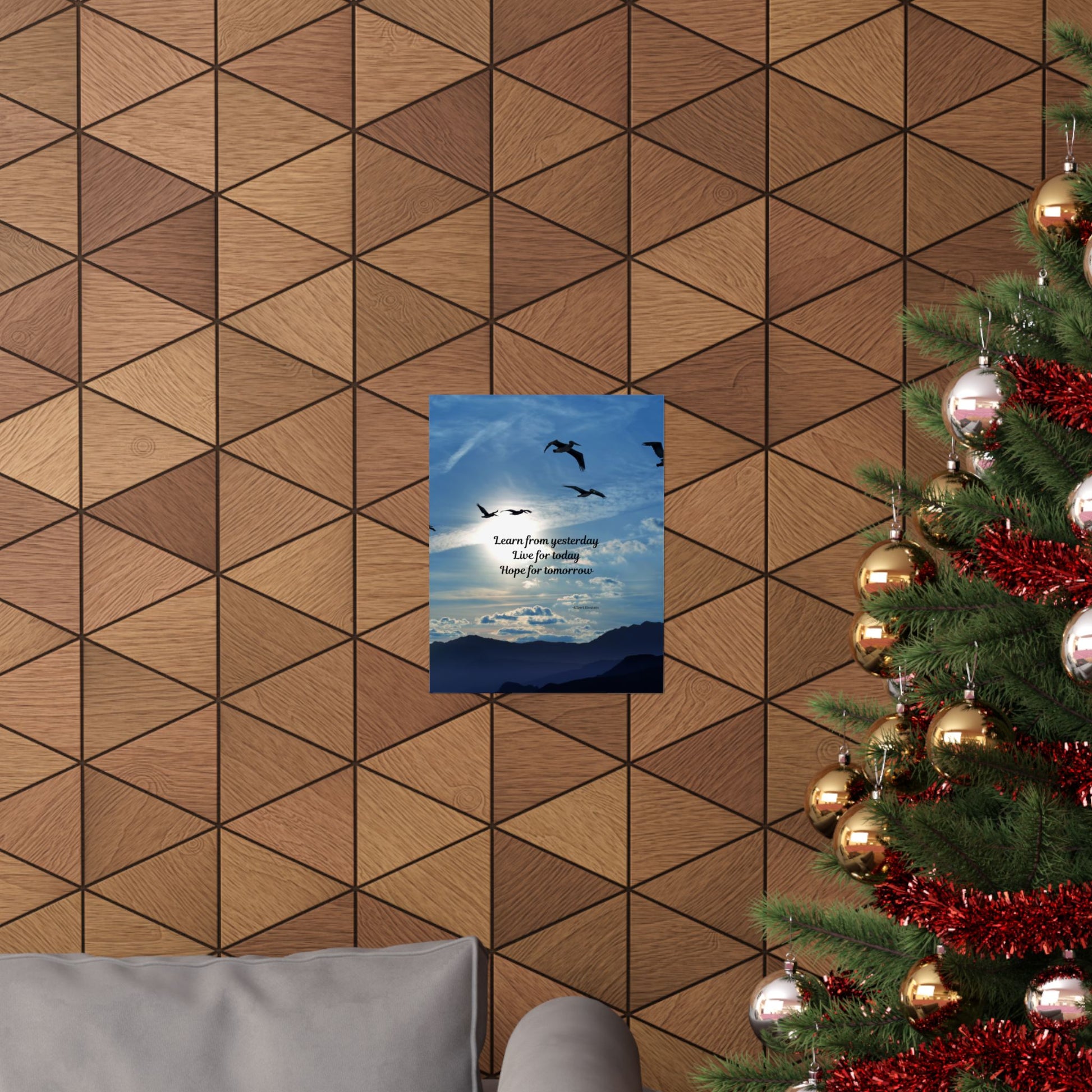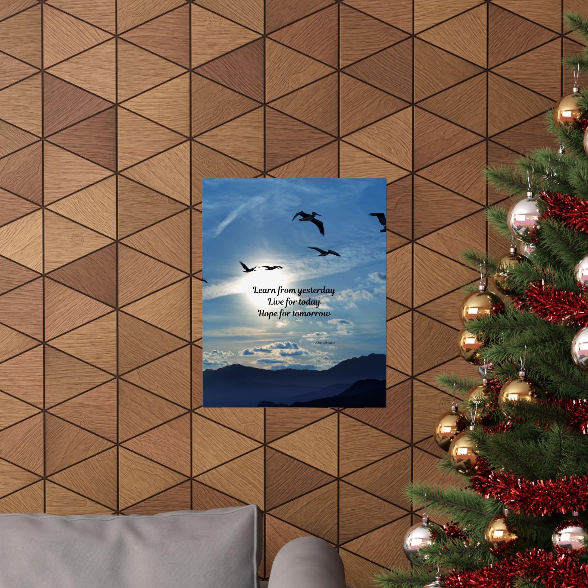 Transform your space with this stunning Matte Vertical Poster, featuring an inspirational quote that encourages reflection and positivity. The serene imagery of birds soaring against a beautiful sky radiates tranquility and hope, making it a perfect addition to any home or office. This elegant piece is not just decor—it's a daily reminder to embrace the present and look towards the future. Ideal for art lovers, those seeking motivation, or anyone looking to uplift their environment, this poster fits beautifully in living rooms, bedrooms, and workspaces alike. It's a thoughtful gift for occasions such as birthdays, graduations, or even as a housewarming present, helping others to inspire and dream. With multiple sizes available, it seamlessly integrates into any interior design style, brightening your walls with its vibrant colors and matte finish.