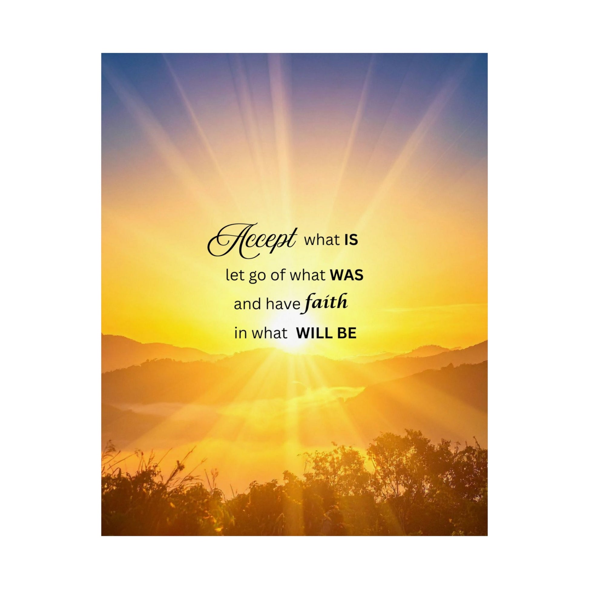 Inspirational Sunrise Poster — "Accept what is, let go of what was" Matte Vertical Print