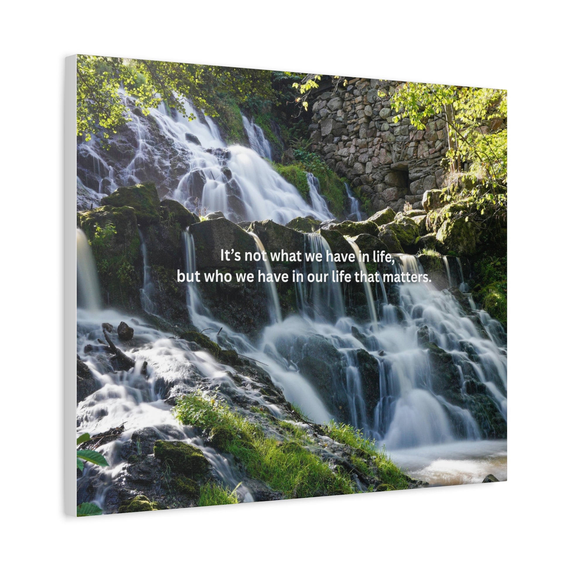 Inspirational Waterfall Canvas — "It's not what we have in life, but who we have in our life that matters"