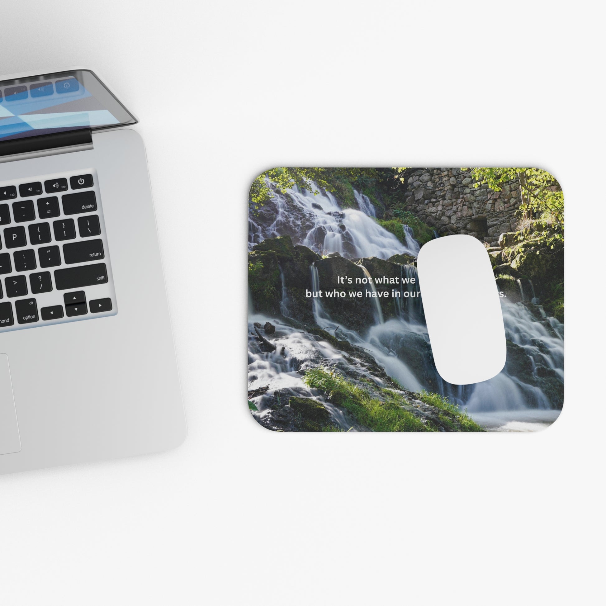 Inspirational Waterfall Mouse Pad — "It's not what we have in life, but who we have"