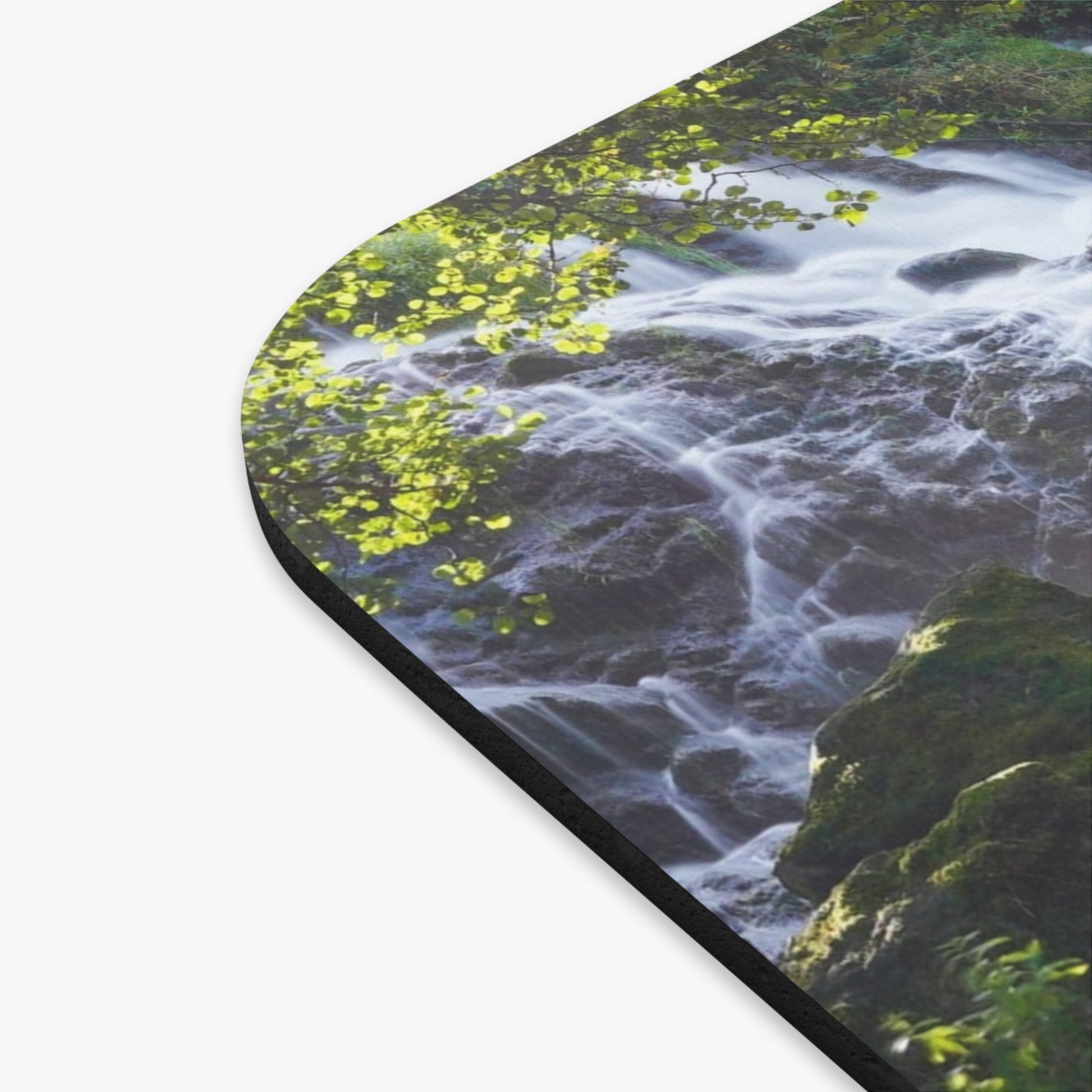 A calming desk companion that brings a gentle stream of nature to everyday work. This rectangular mouse pad features a full-color waterfall scene with an understated, thoughtful quote at its center. The smooth, low-friction surface lets your mouse glide with ease while the dense foam and grippy rubber base keep everything steady during focused sessions. It settles into home offices, study nooks, or creative desks and quietly nudges you toward a moment of calm between tasks.