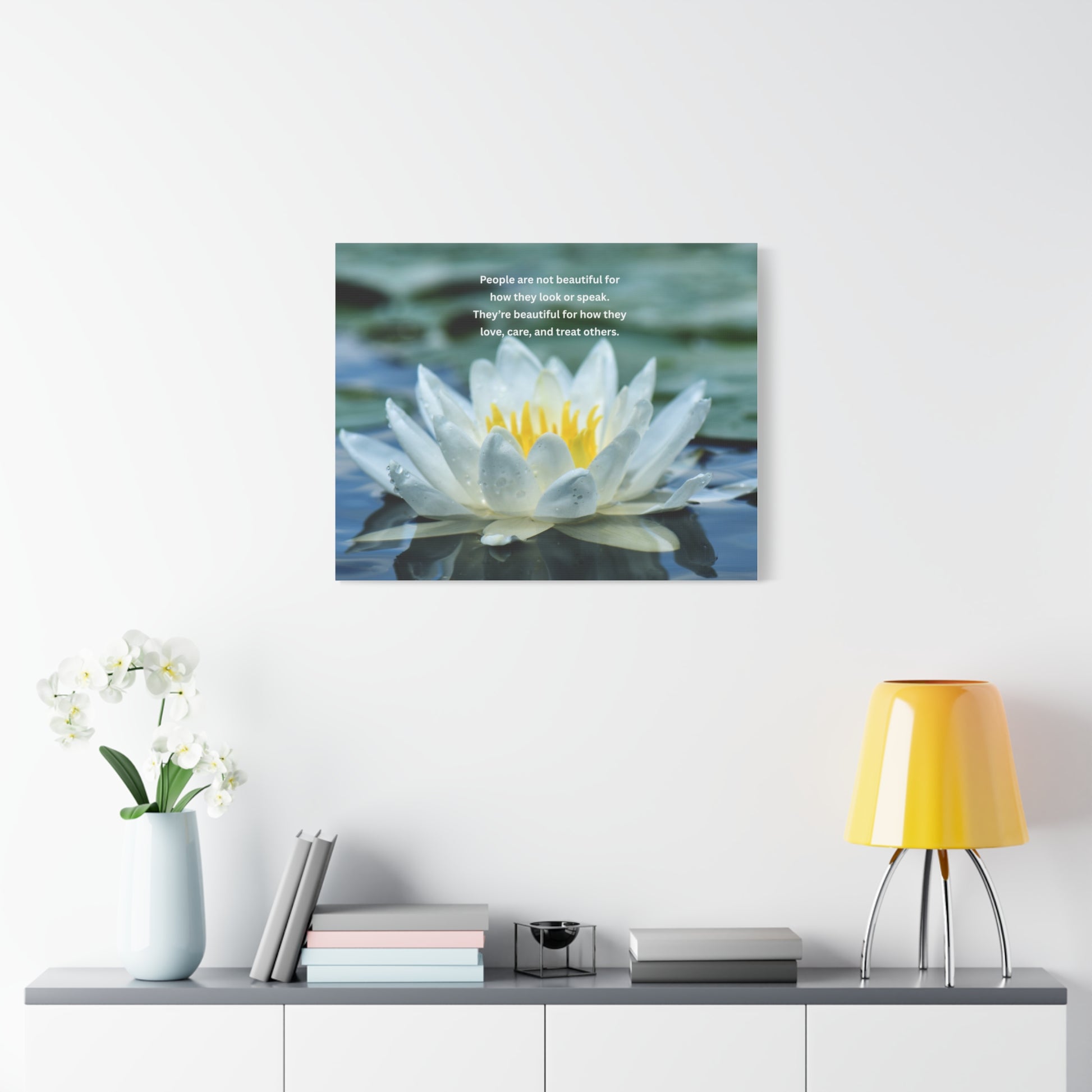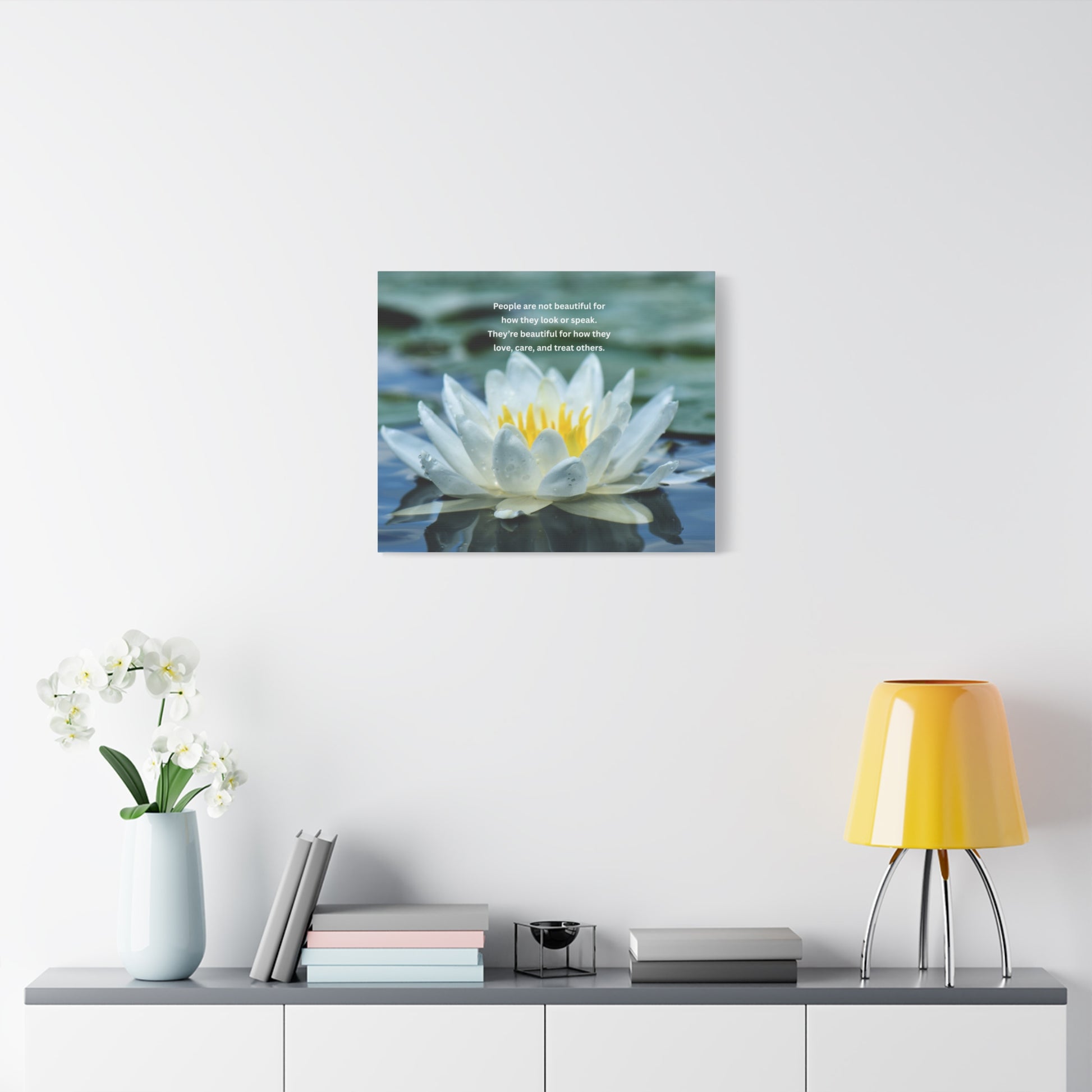 Lotus Wall Canvas – "People are not beautiful for how they look" Inspirational Quote Art