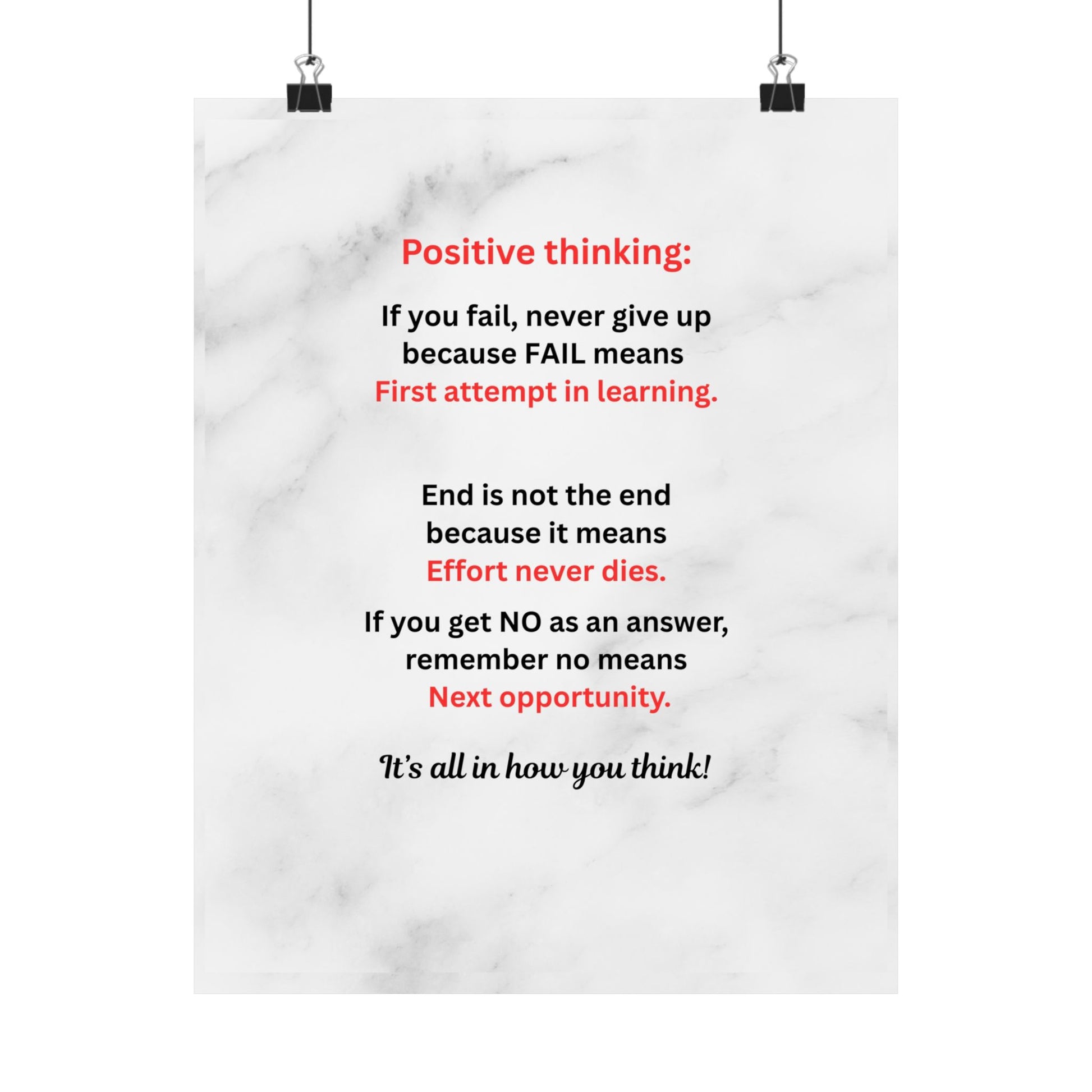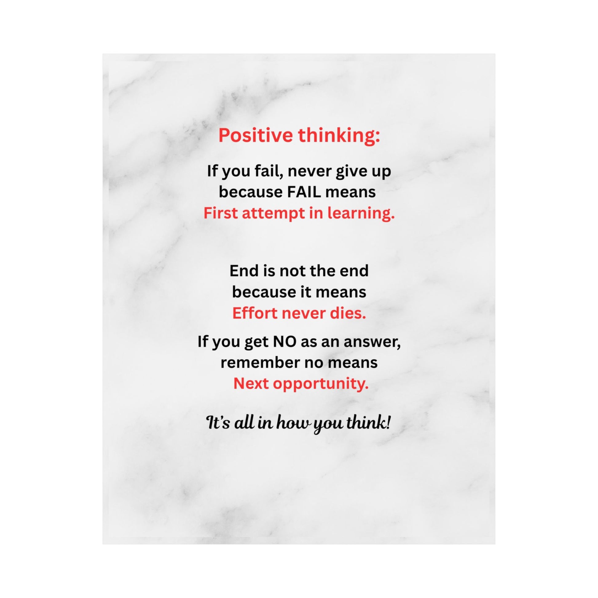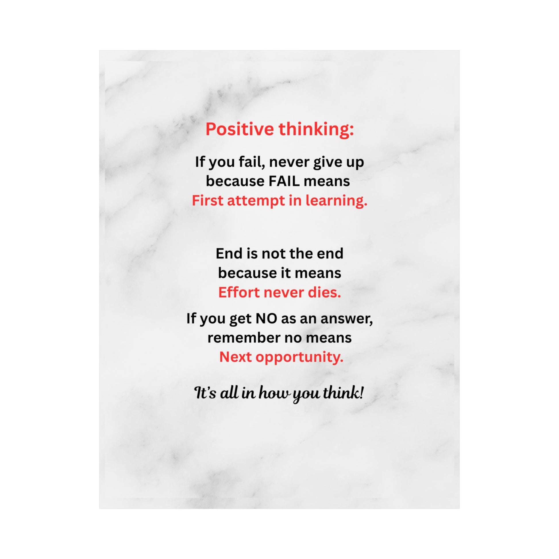 Motivational Poster — "Positive Thinking" Marble Wall Art
