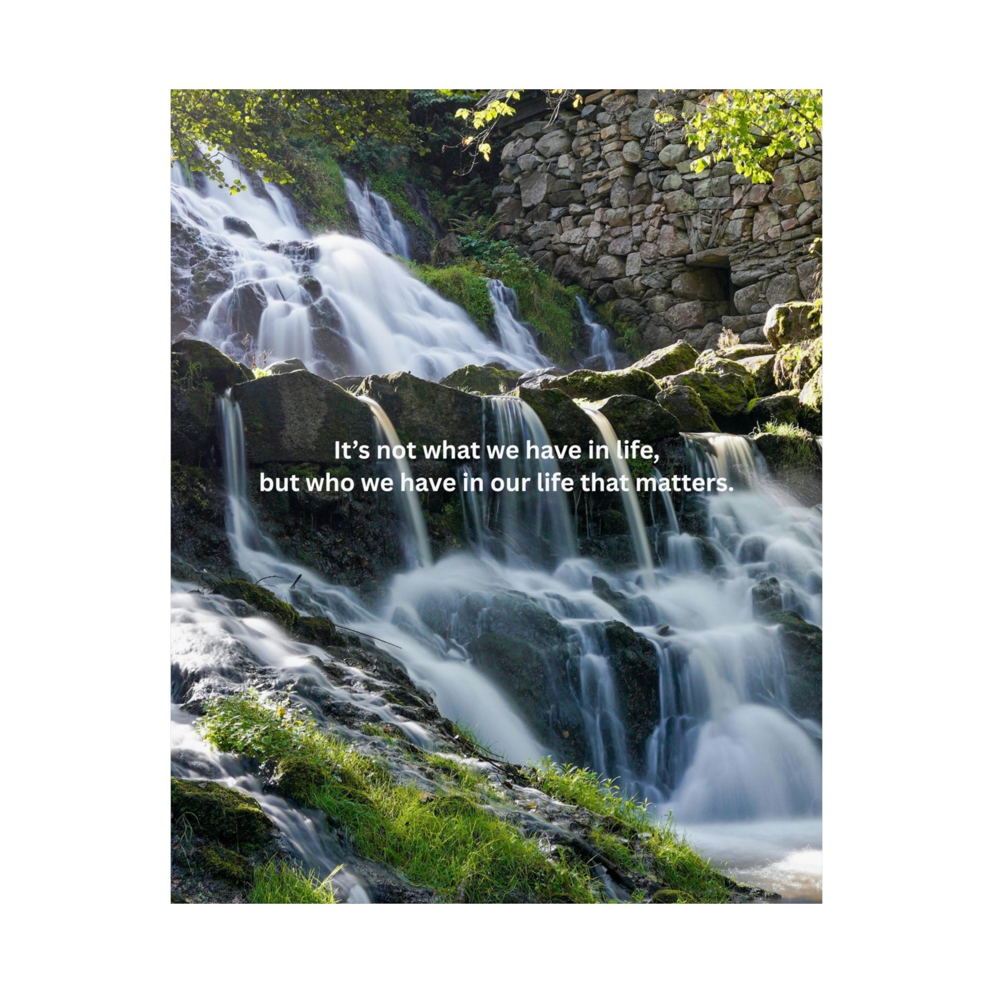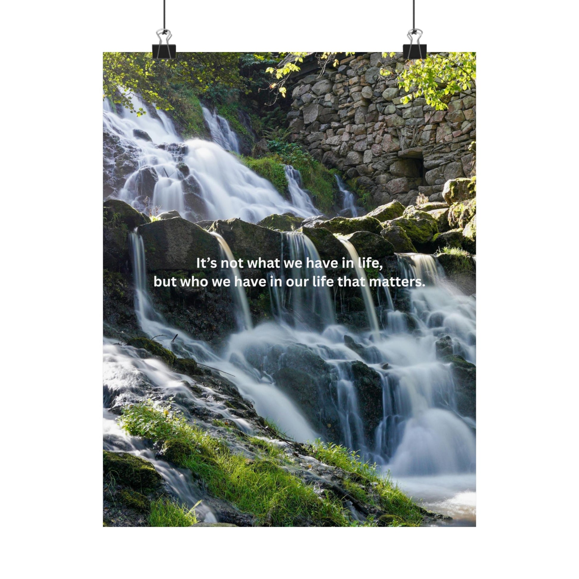 Motivational Waterfall Matte Vertical Poster — "It's not what we have in life, but who we have in our life that matters"