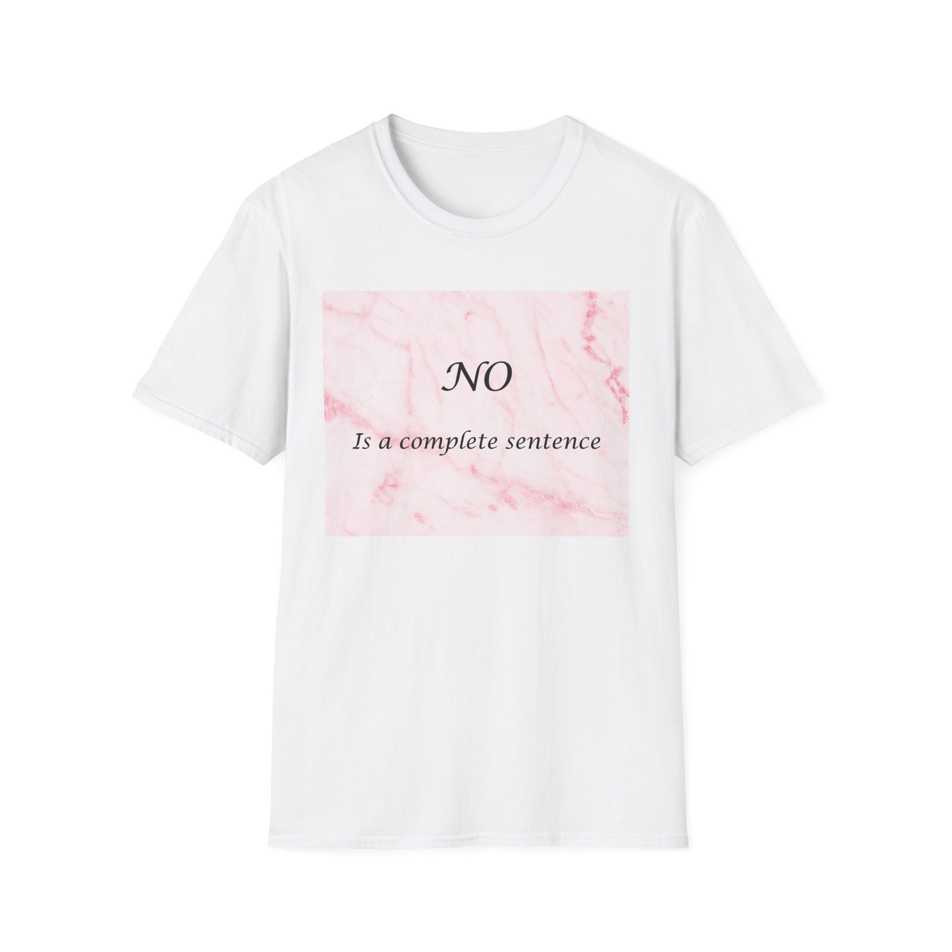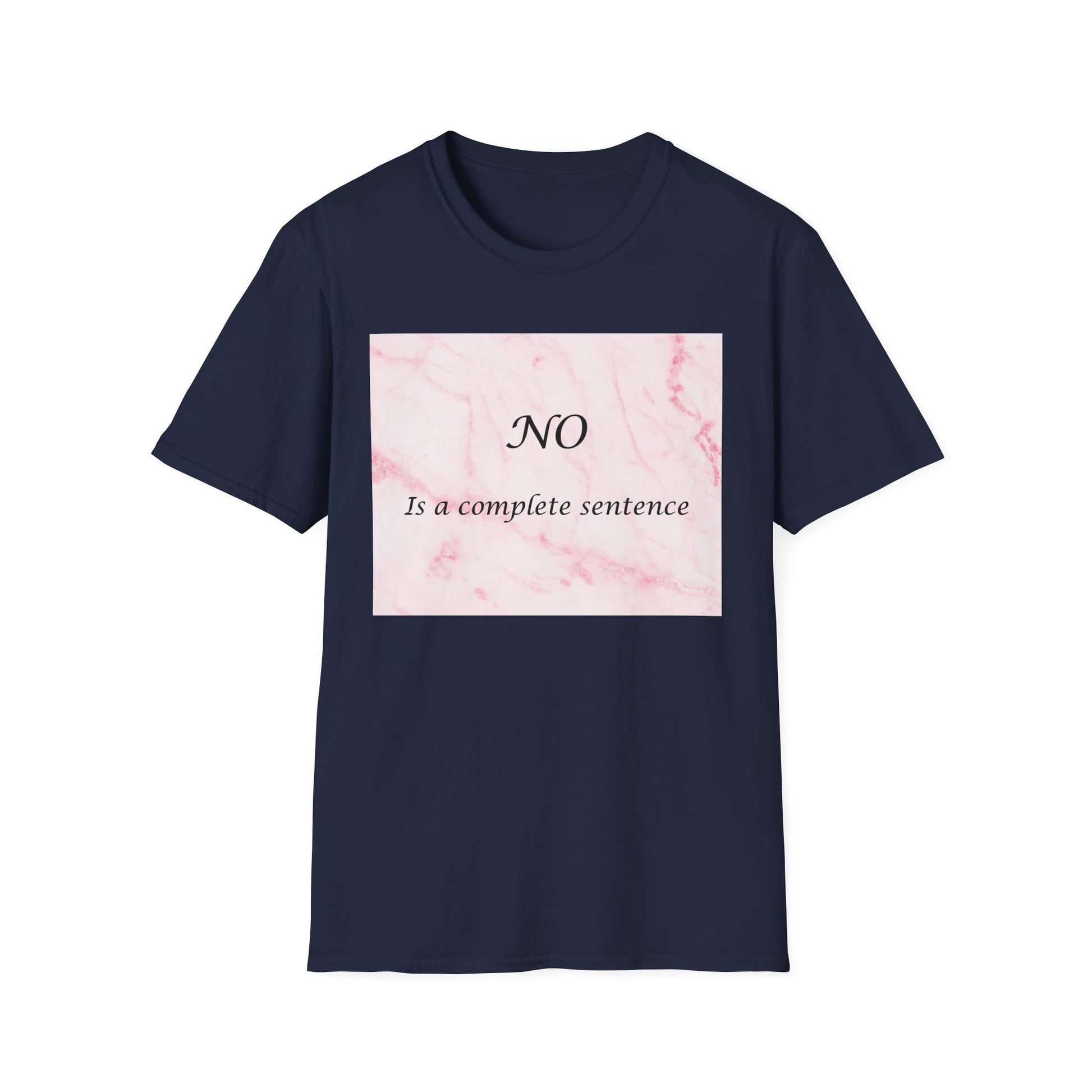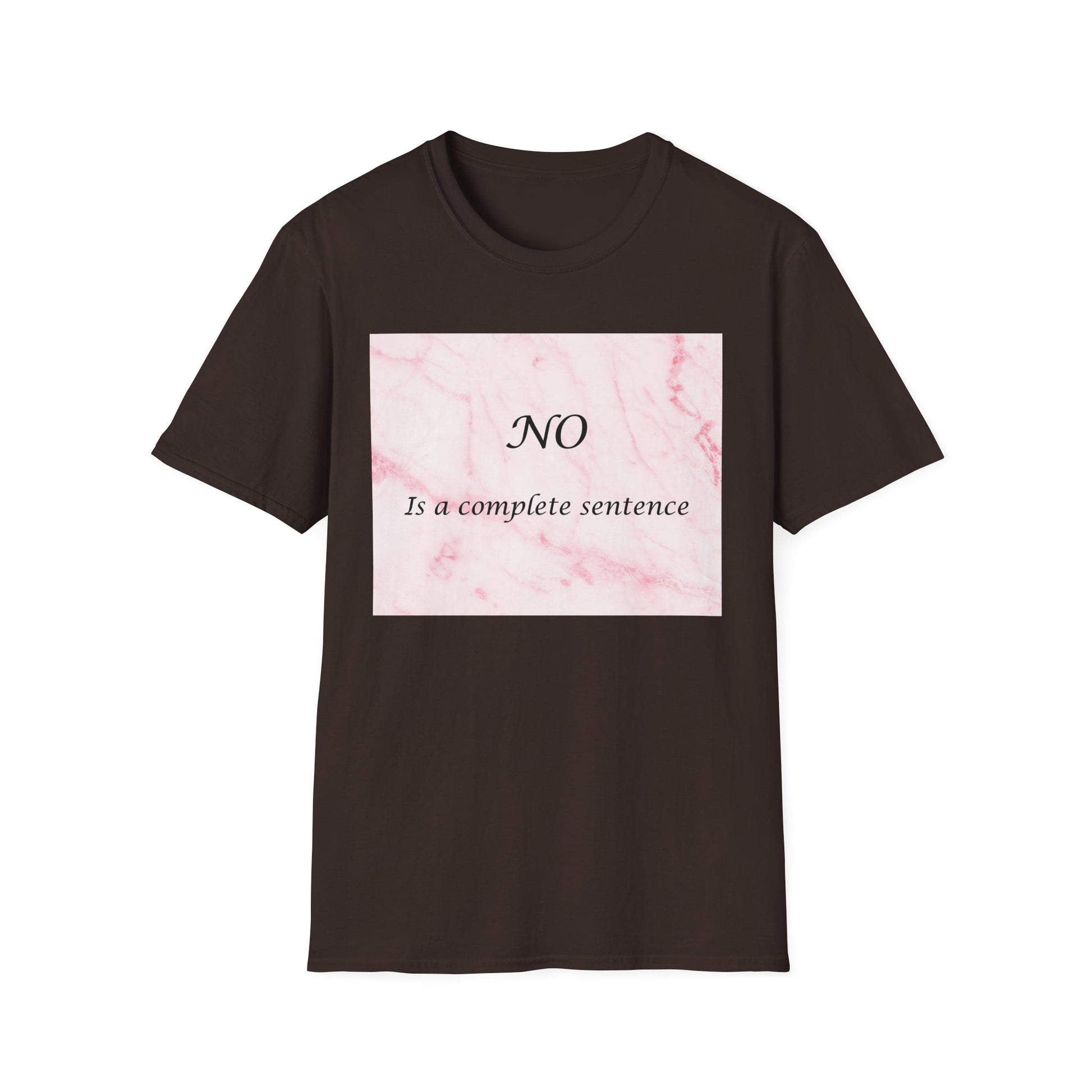 Elevate your wardrobe with this stylish Softstyle T-Shirt, featuring a chic marble-inspired design that conveys a sense of elegance and confidence. Perfect for those who appreciate humor and straightforwardness, this tee communicates the message "NO is a complete sentence" in a playful yet sophisticated manner. Ideal for casual outings, brunches, or even cozy nights in, this shirt is a versatile addition to any fashion-forward individual’s collection. It makes a fantastic gift for friends or loved ones who embody self-assurance and wit. Targeted towards adults, this T-shirt is suitable for various occasions, including birthdays, holidays, or simply adding a touch of motivation to your daily life.