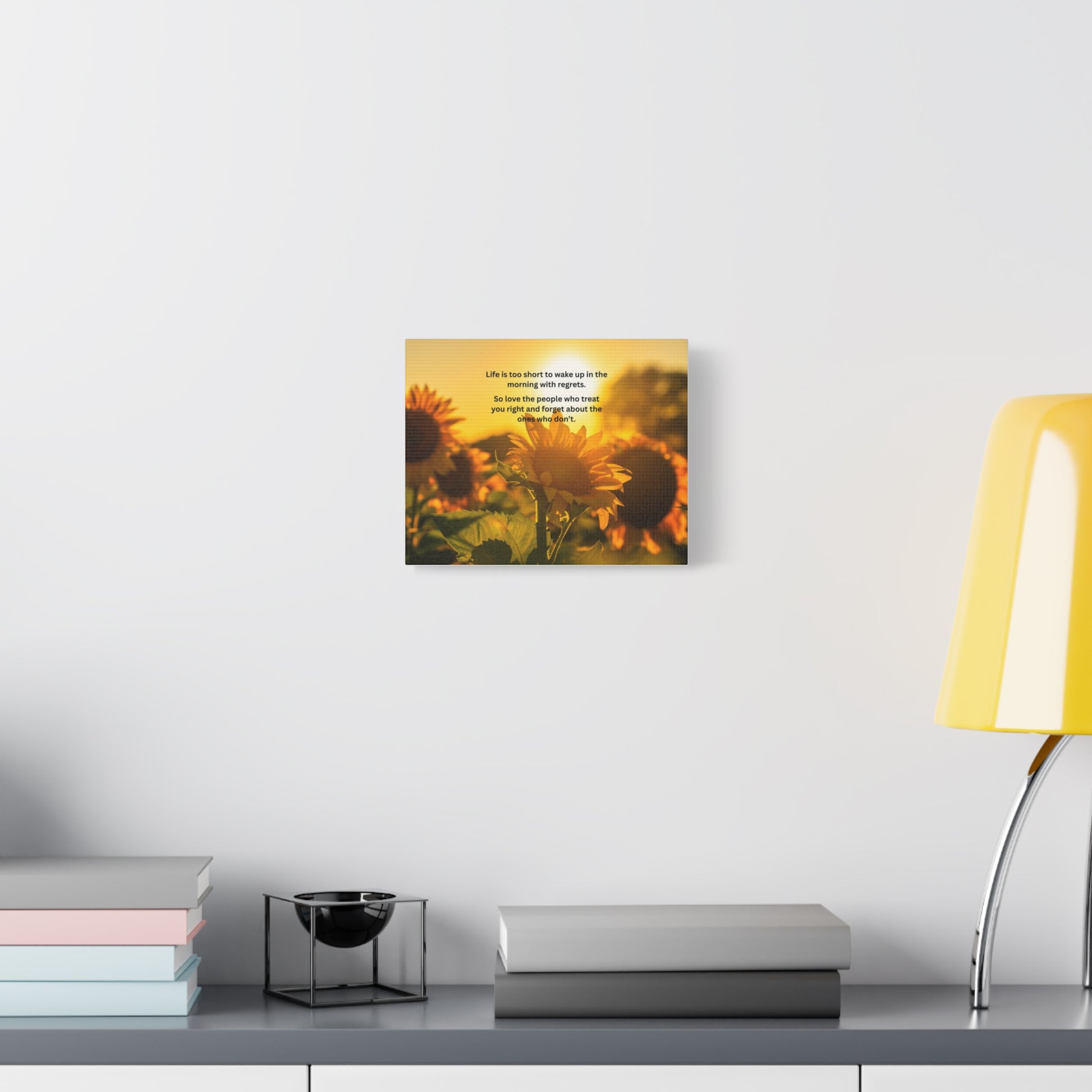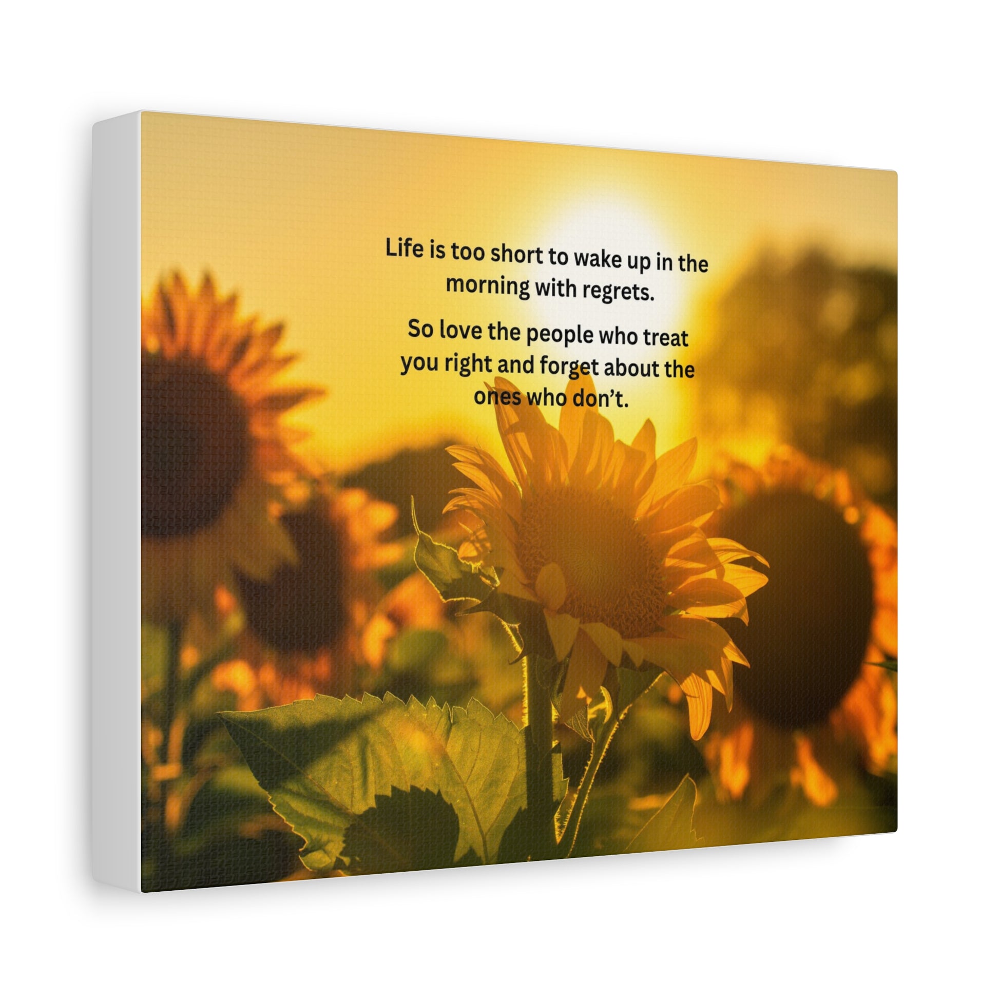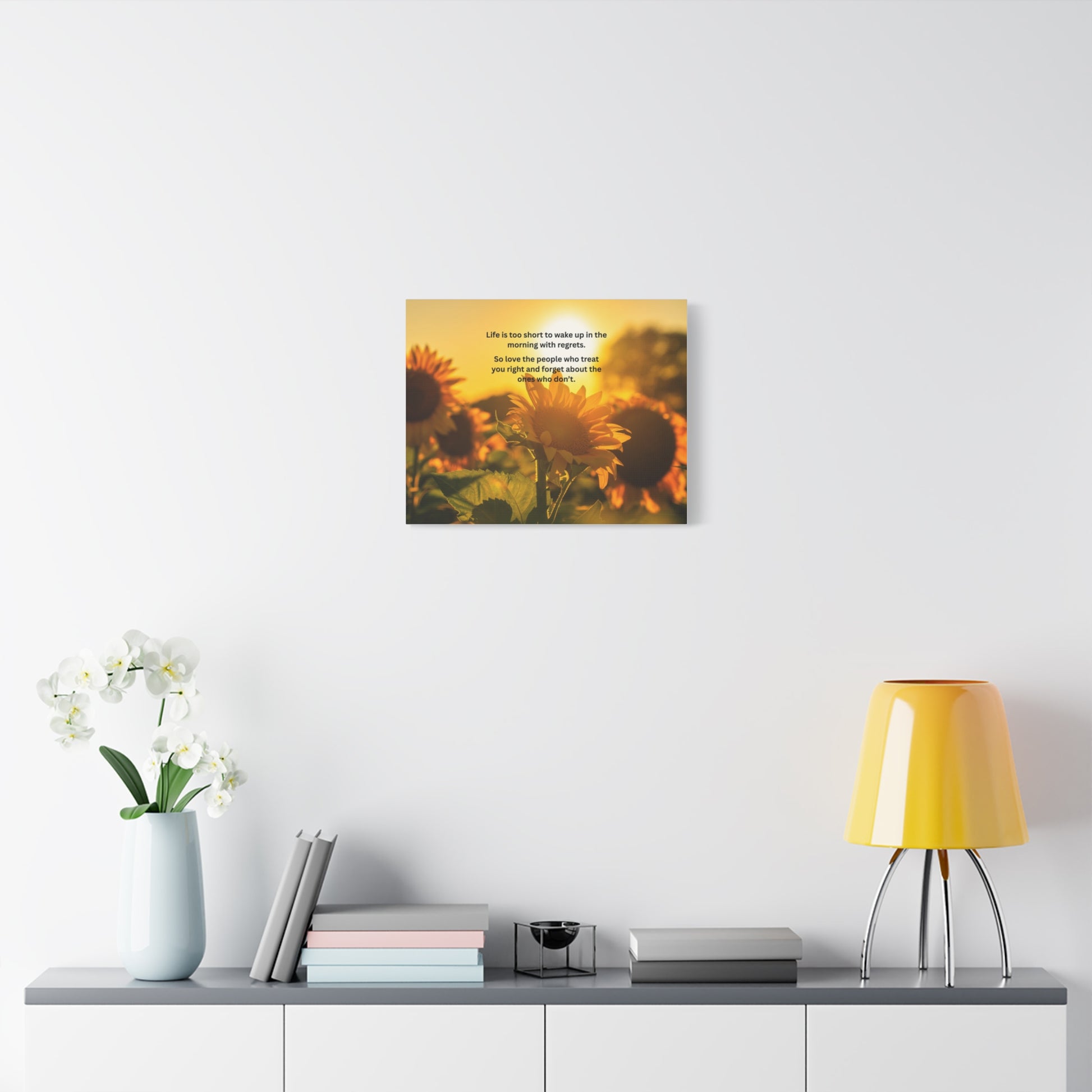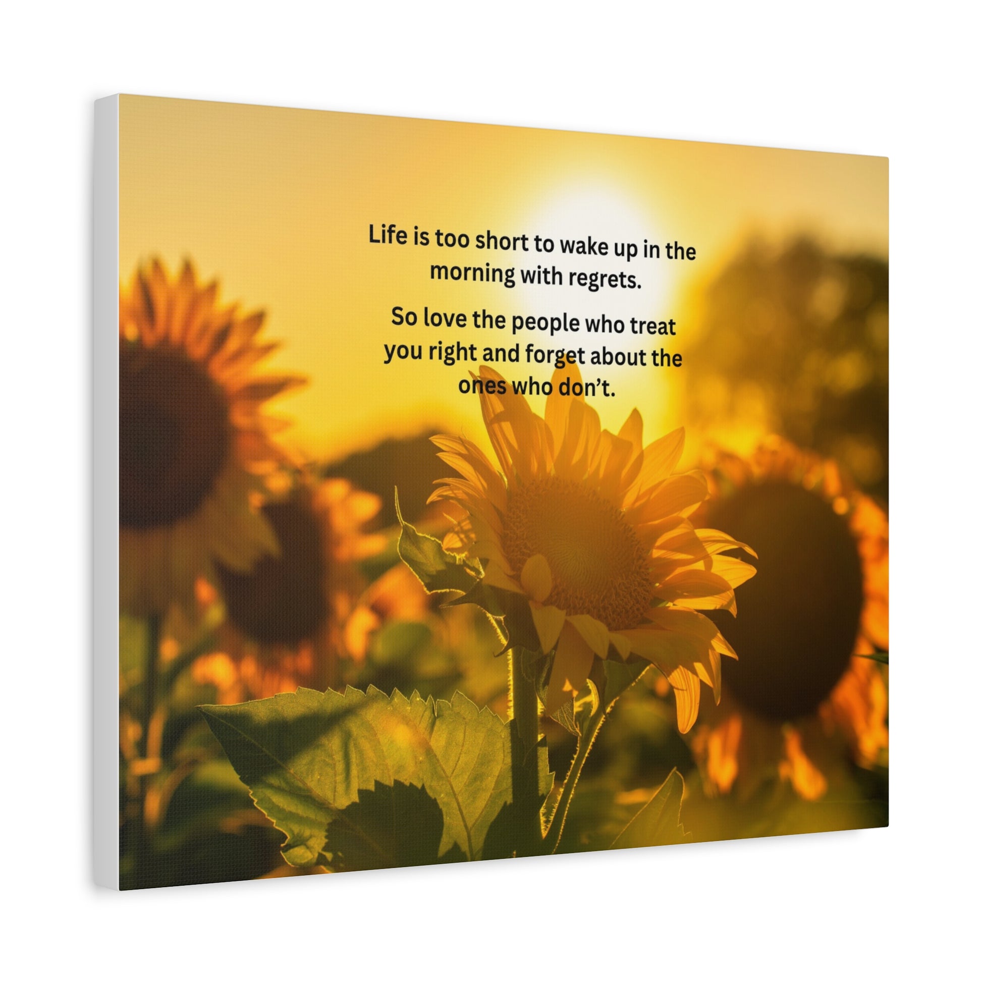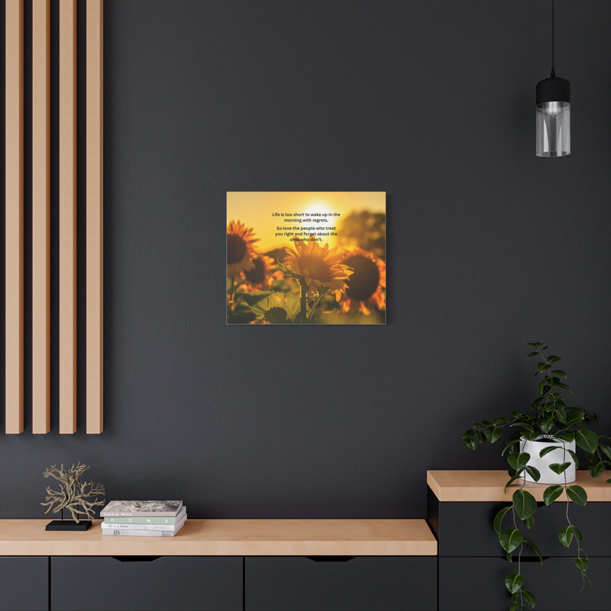 Sunflower Canvas Wall Art — "Life is too short to wake up in the morning with regrets" Inspirational Quote