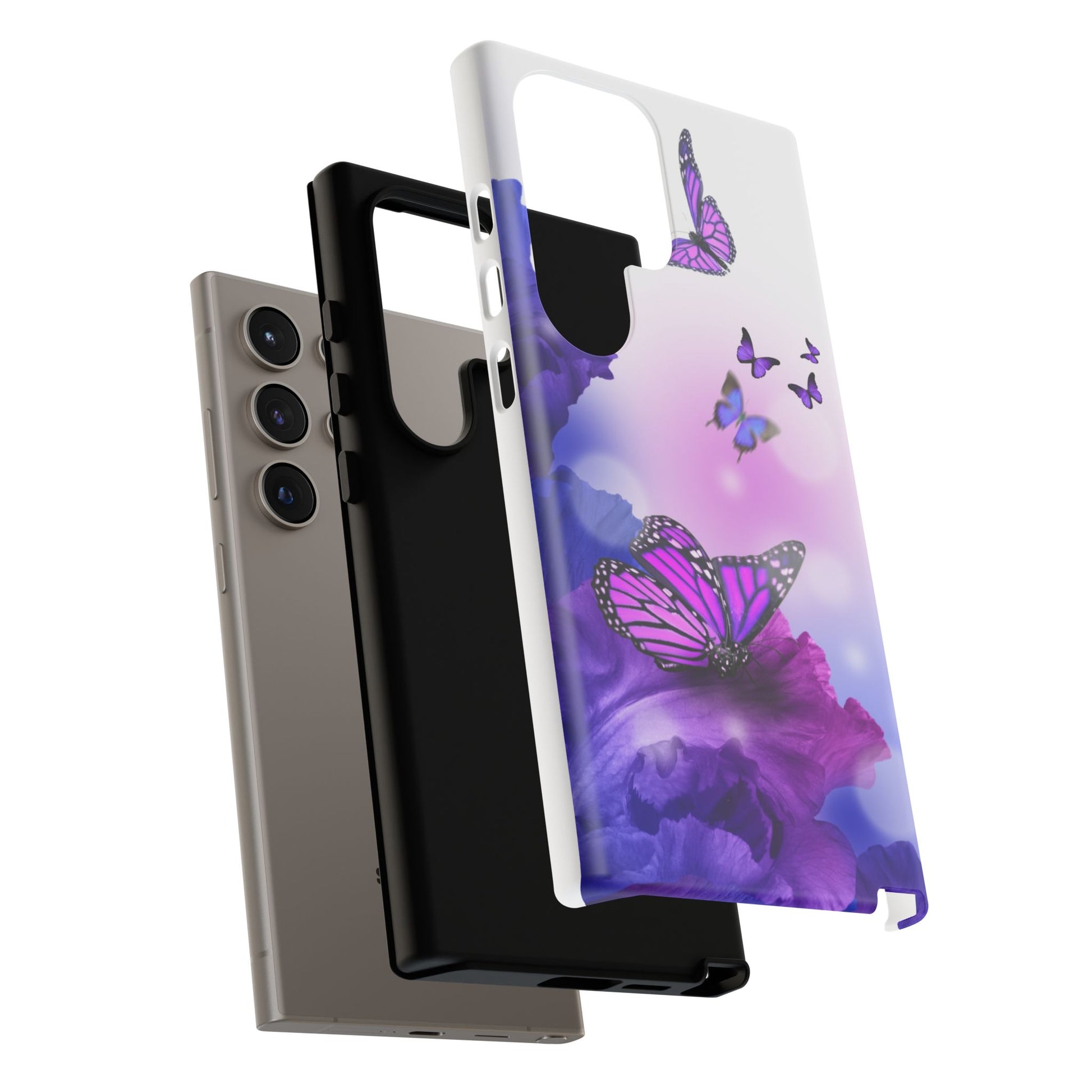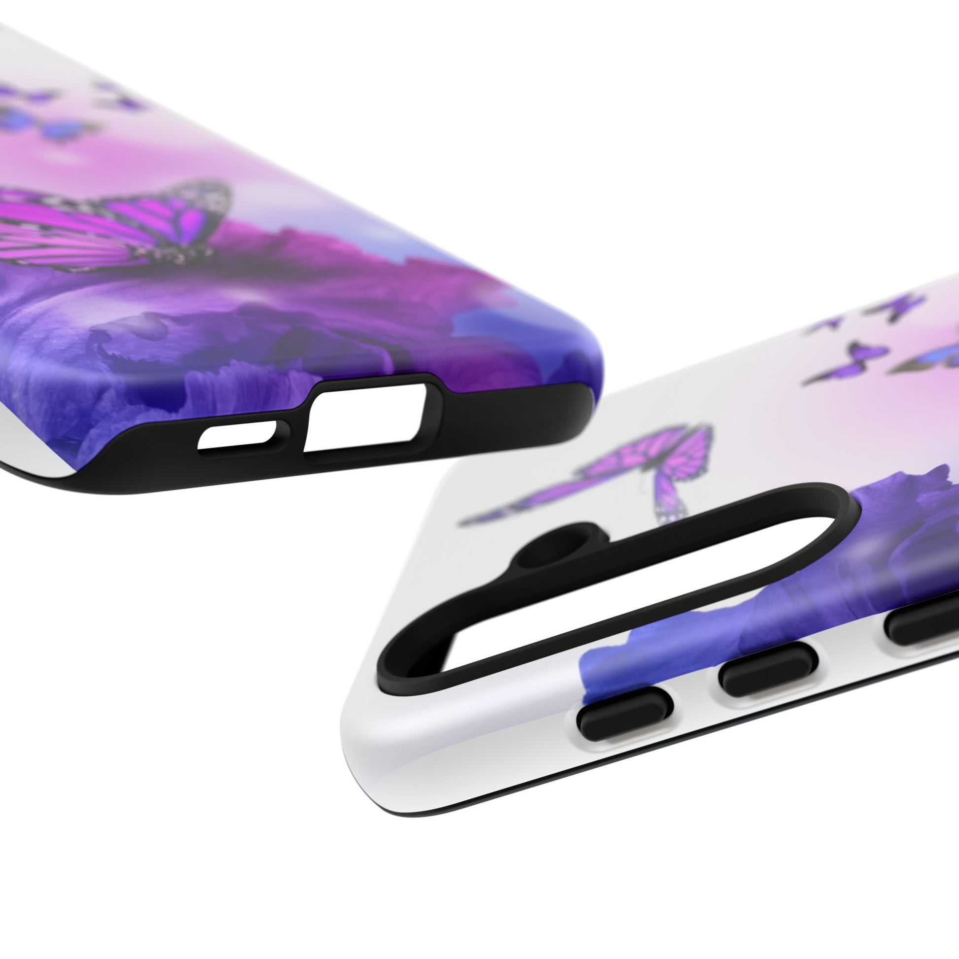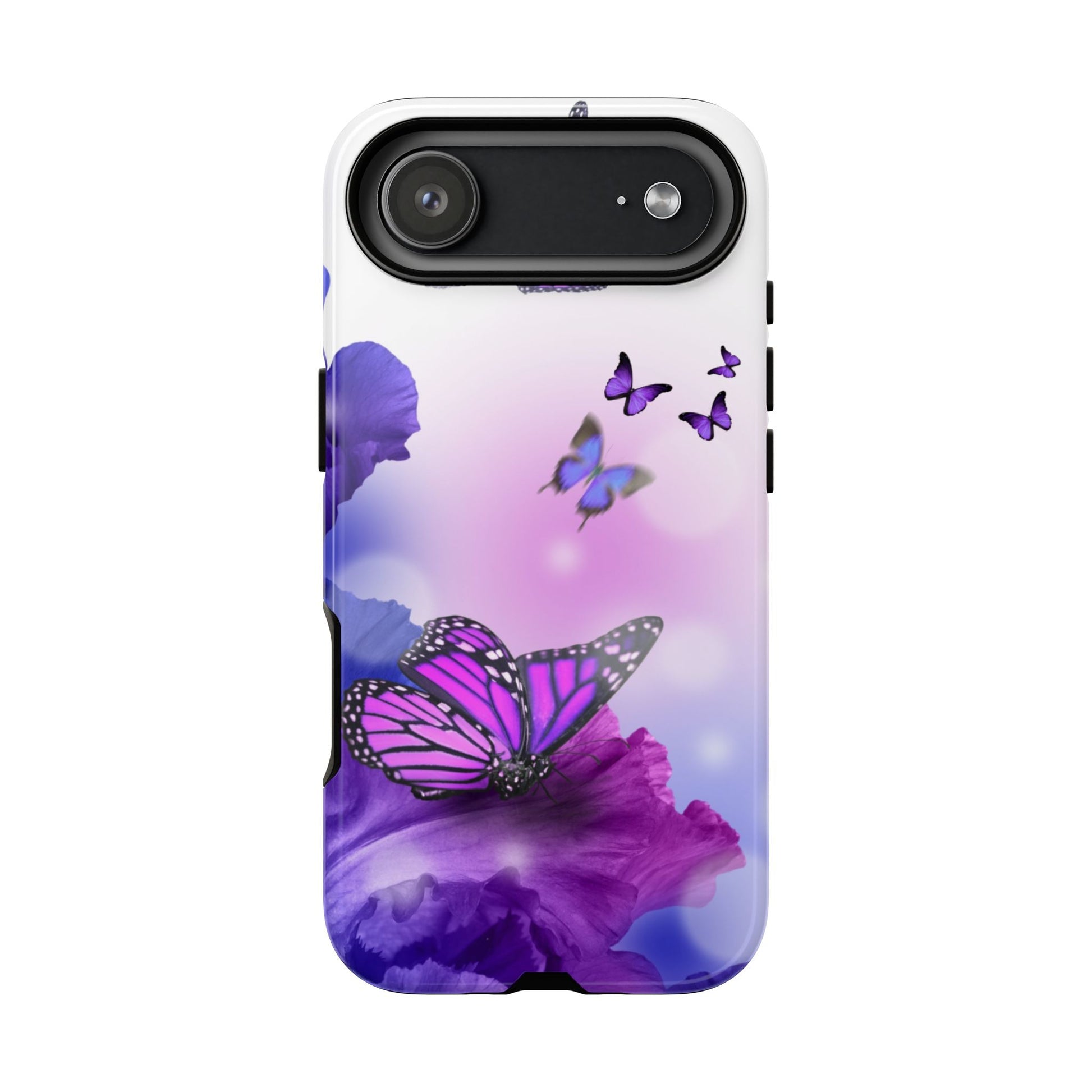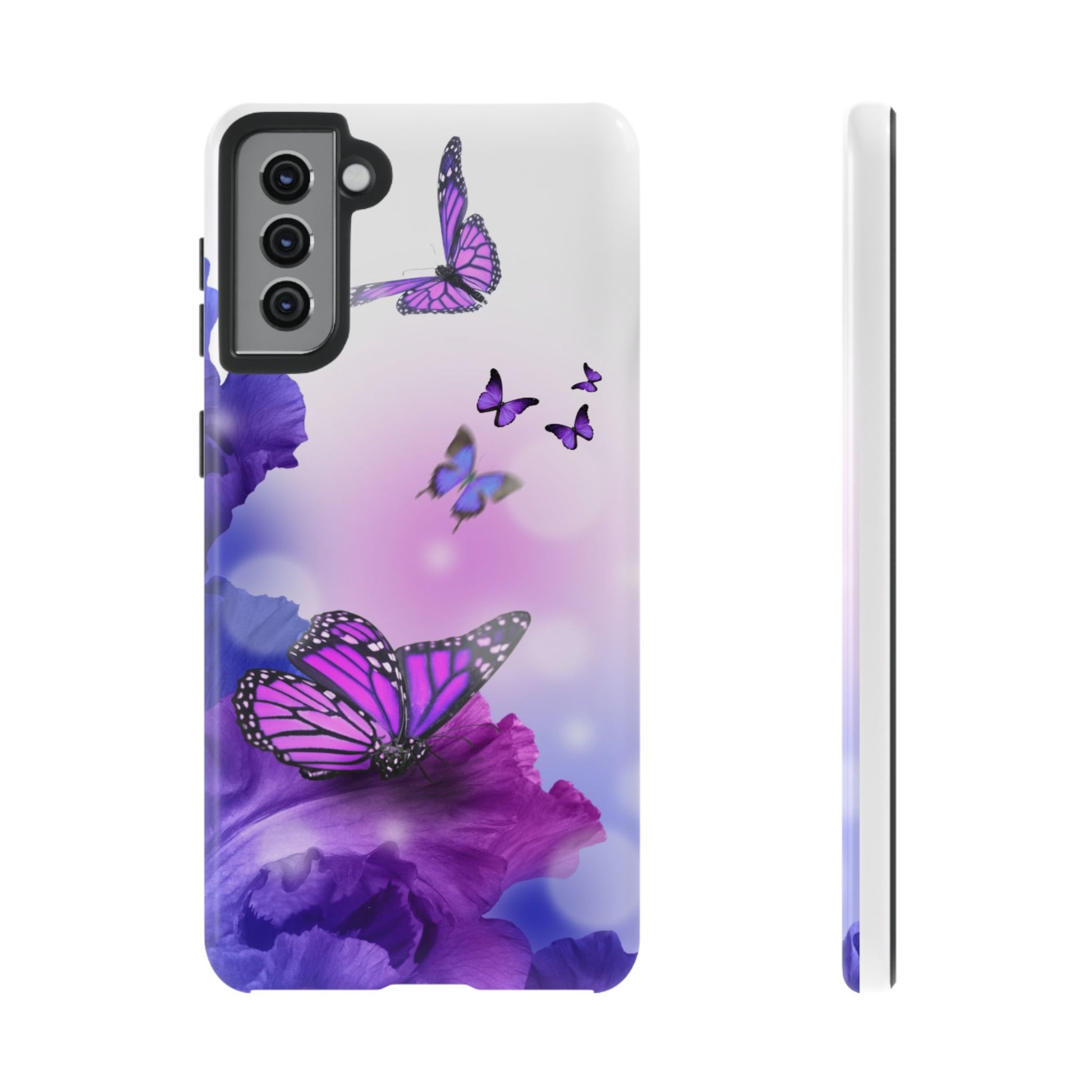 Personalize your iPhone and Samsung Galaxy devices with premium-quality custom protective phone cases. Every case has double layers for extra durability and protection while the clear, open ports stay out of your way when it comes to charging. The outer polycarbonate shell will resist daily impacts. Choose between matte or glossy finish. Beautiful butterfly design to brighten your day.