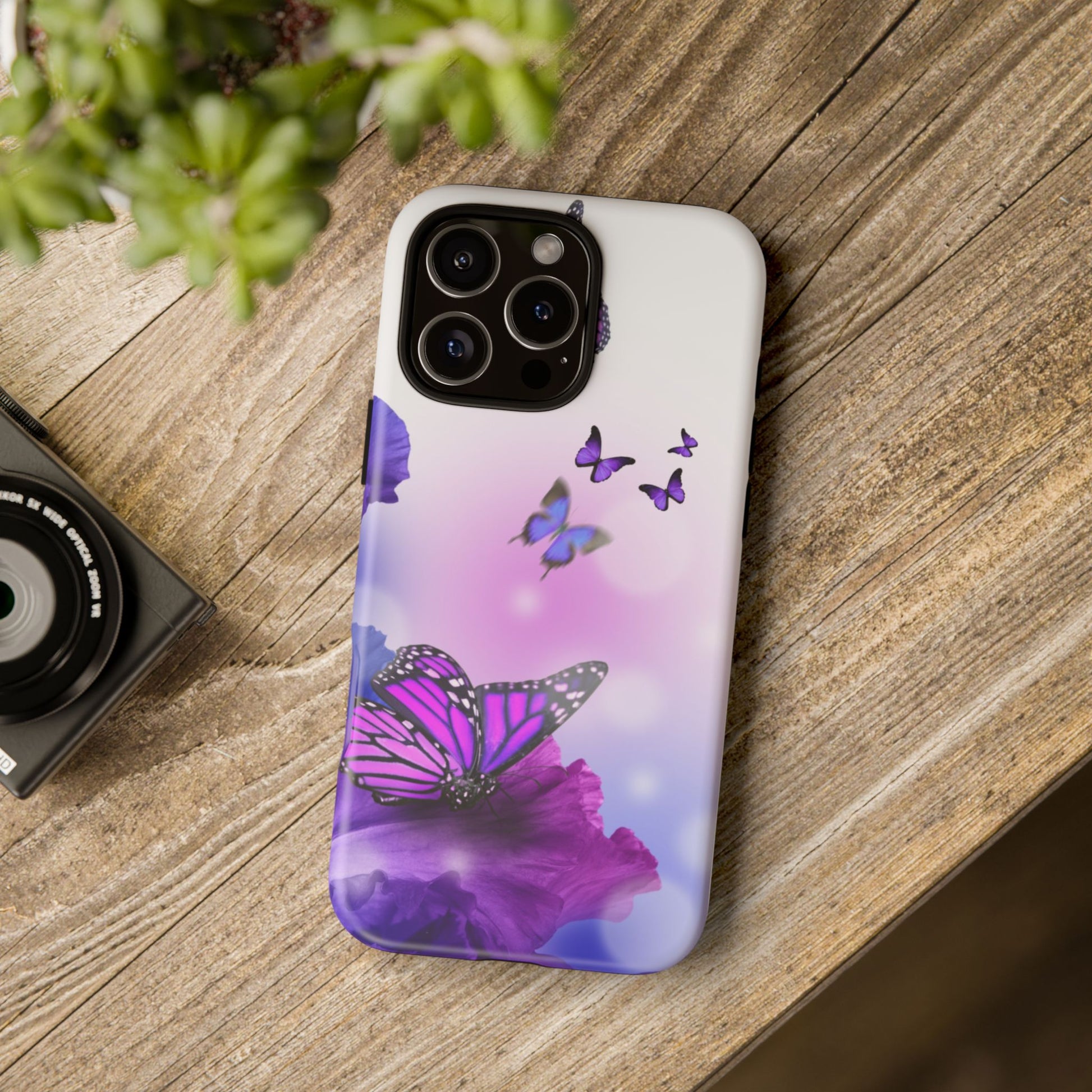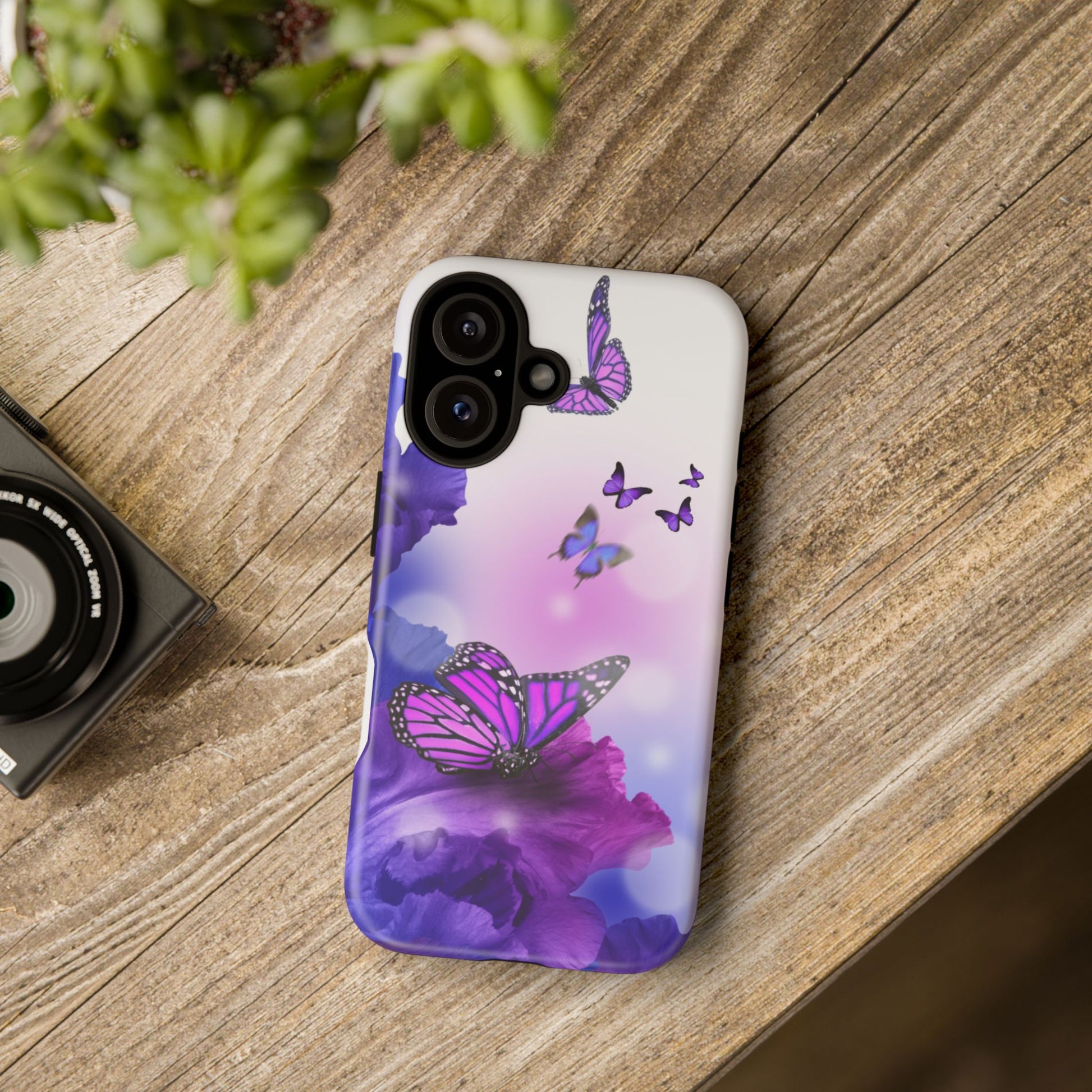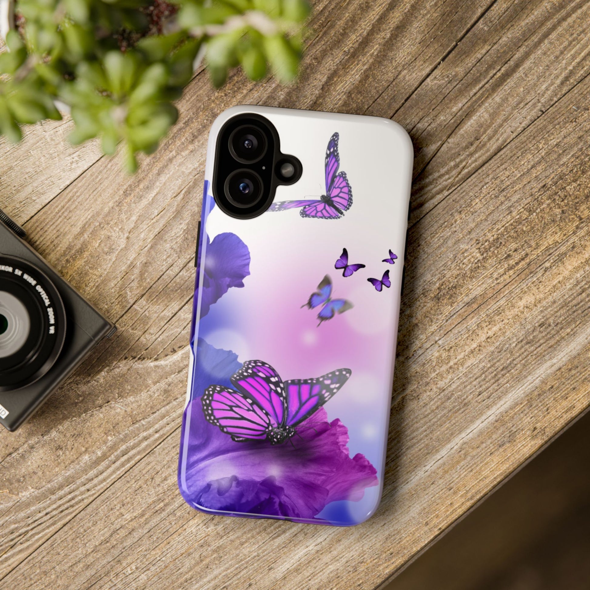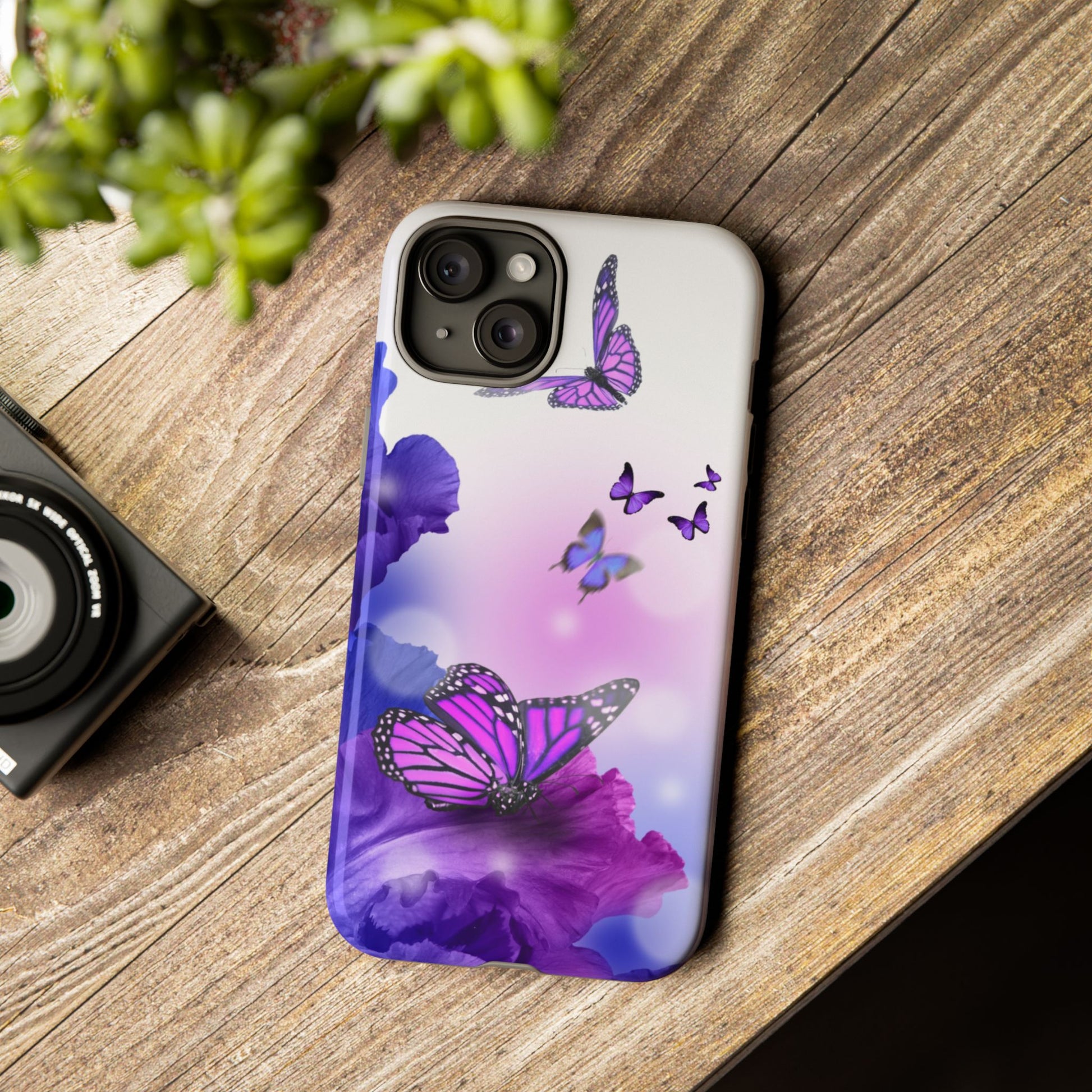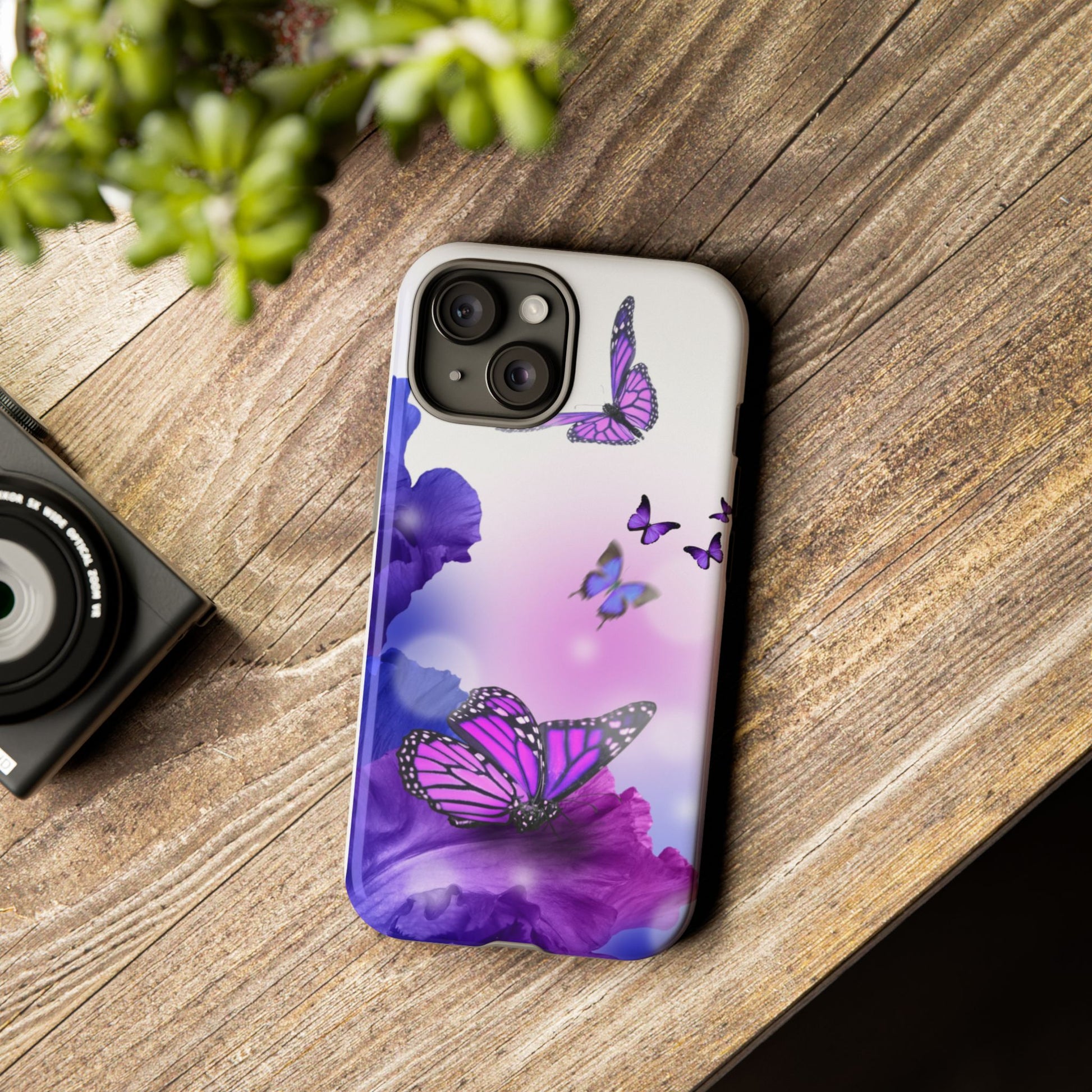 Personalize your iPhone and Samsung Galaxy devices with premium-quality custom protective phone cases. Every case has double layers for extra durability and protection while the clear, open ports stay out of your way when it comes to charging. The outer polycarbonate shell will resist daily impacts. Choose between matte or glossy finish. Beautiful butterfly design to brighten your day.