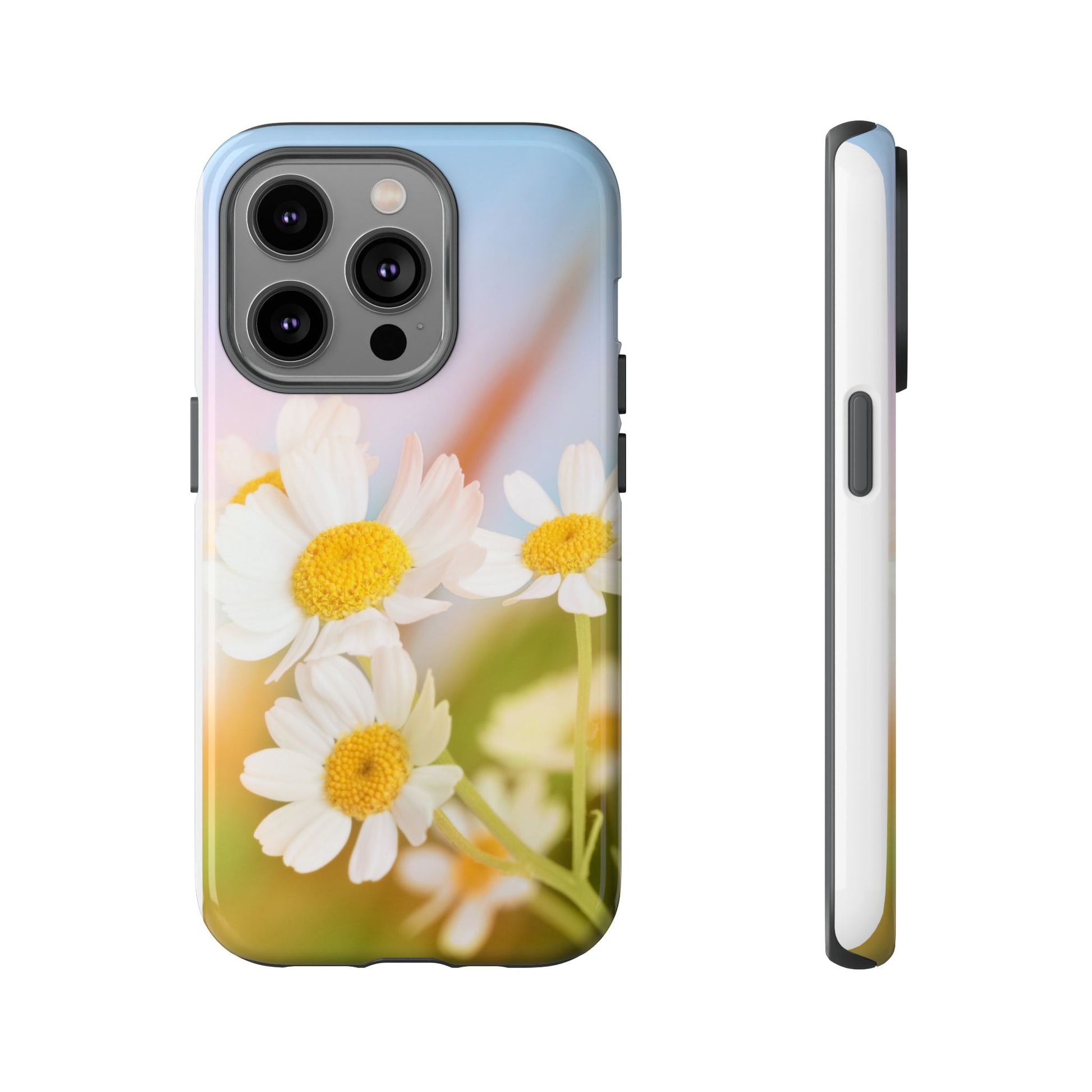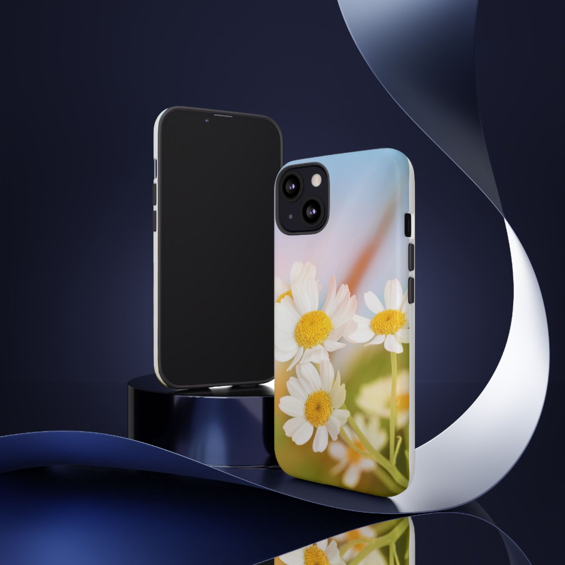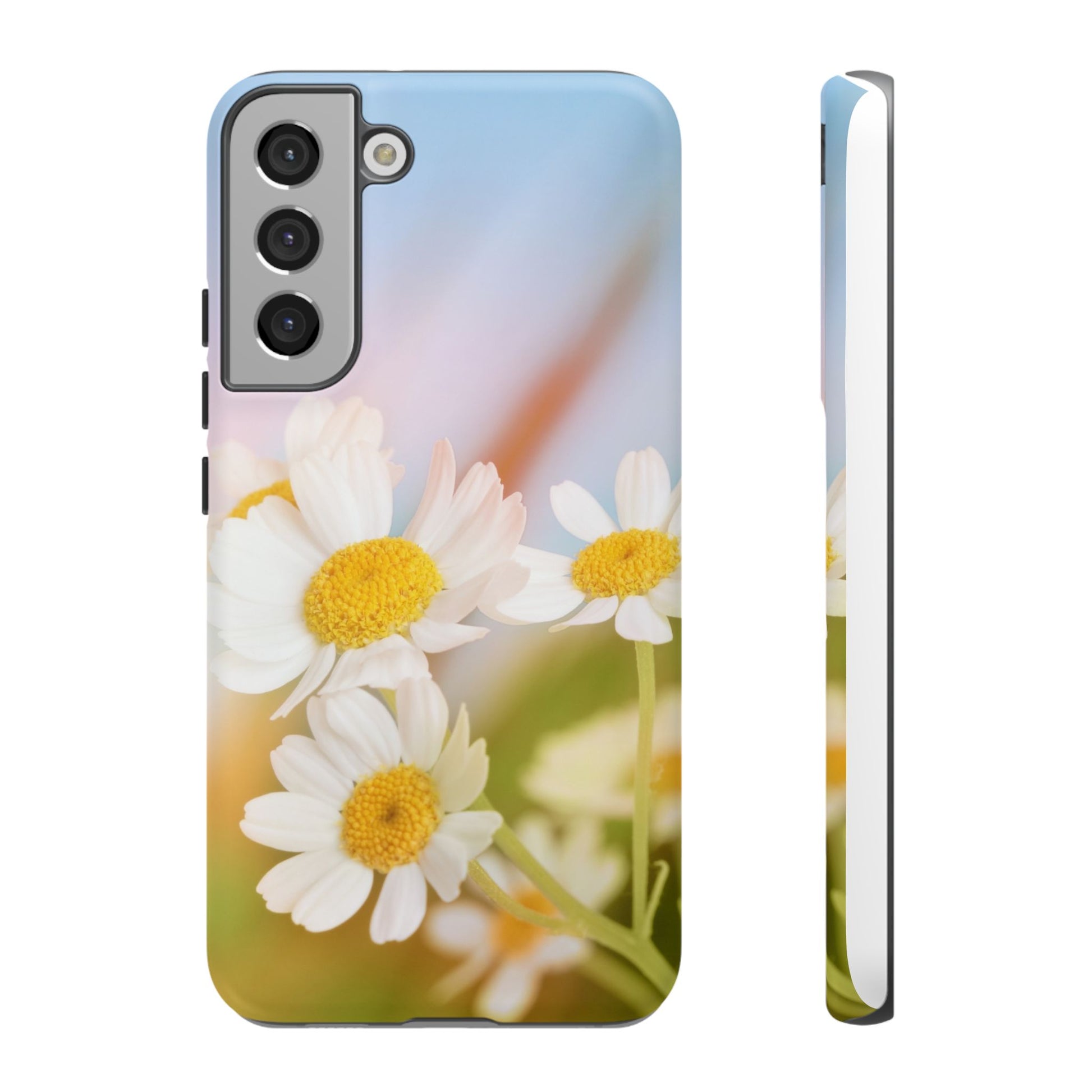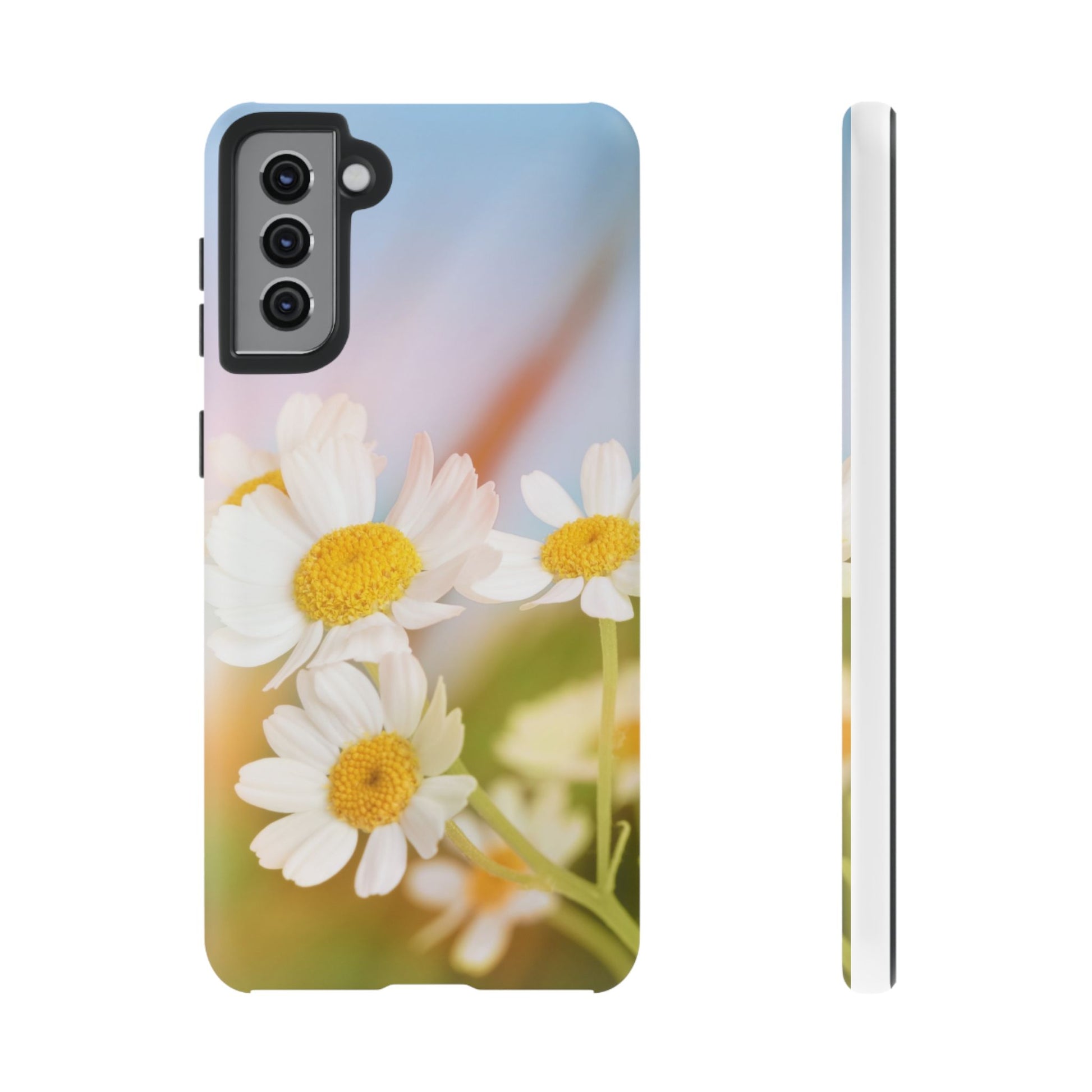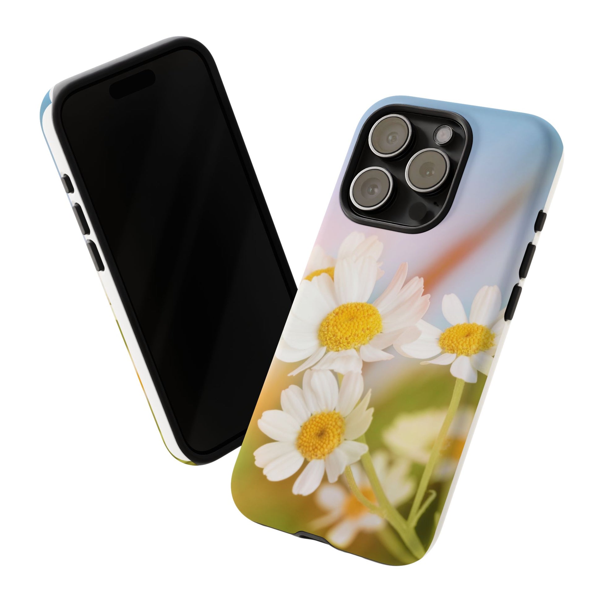 Personalize your iPhone and Samsung Galaxy devices with premium-quality custom protective phone cases. Every case has double layers for extra durability and protection while the clear, open ports stay out of your way when it comes to charging. The outer polycarbonate shell will resist daily impacts. Choose between matte or glossy finish. Beautiful daisy and blue sky design to brighten your day.