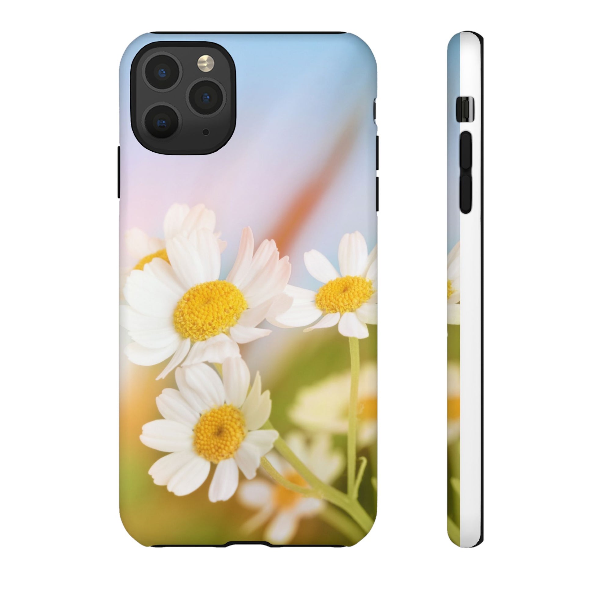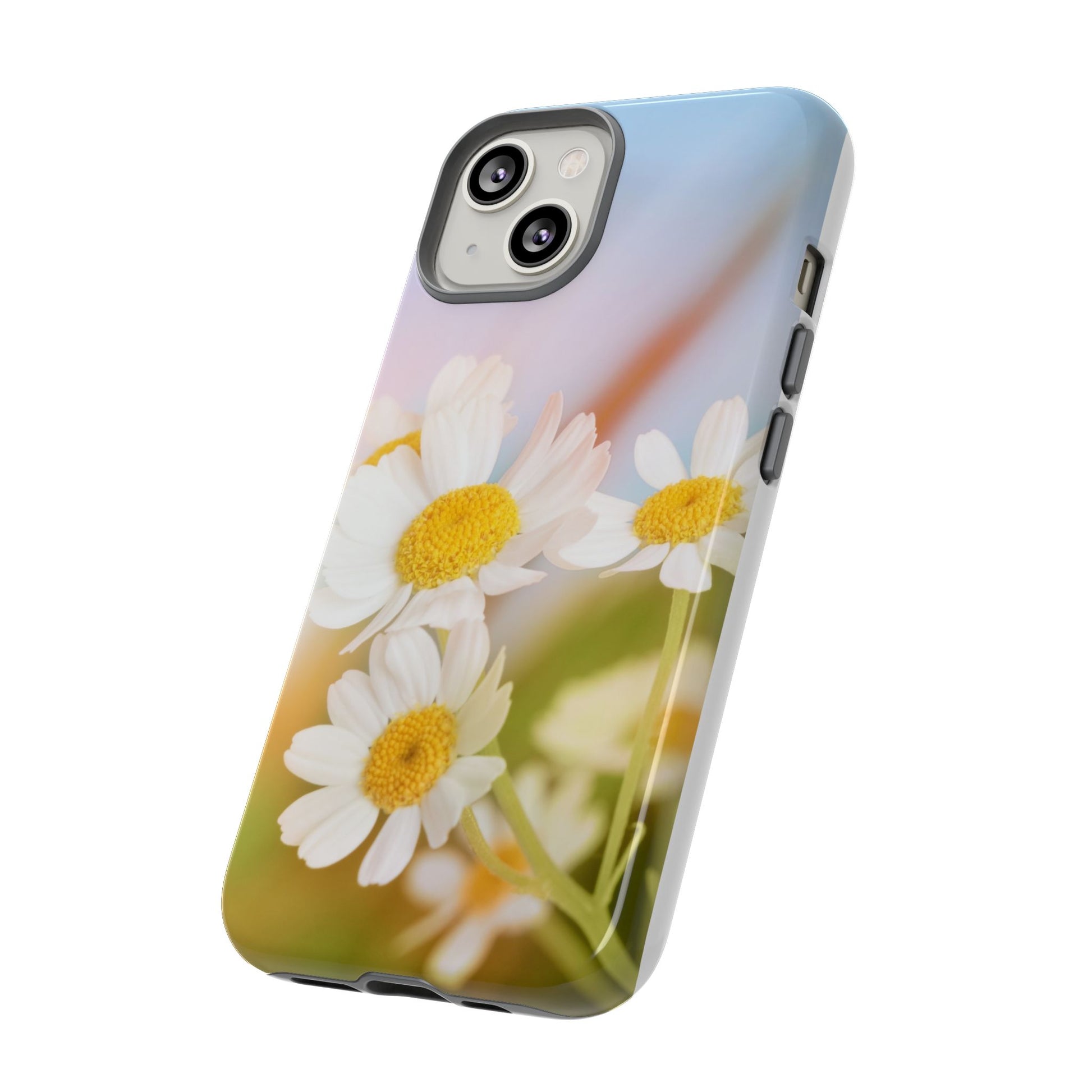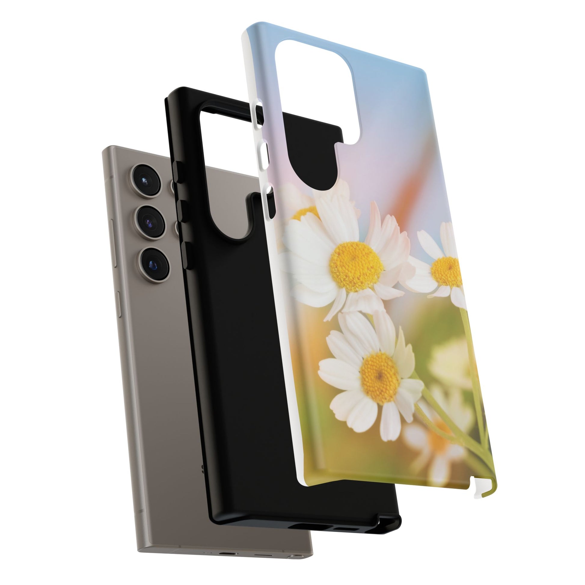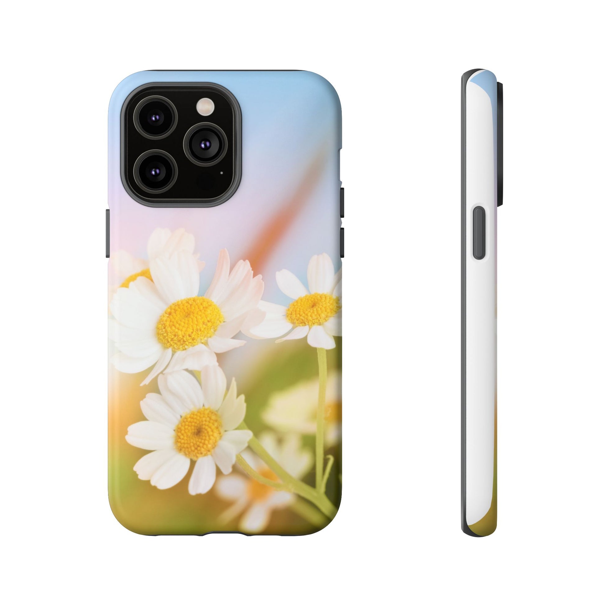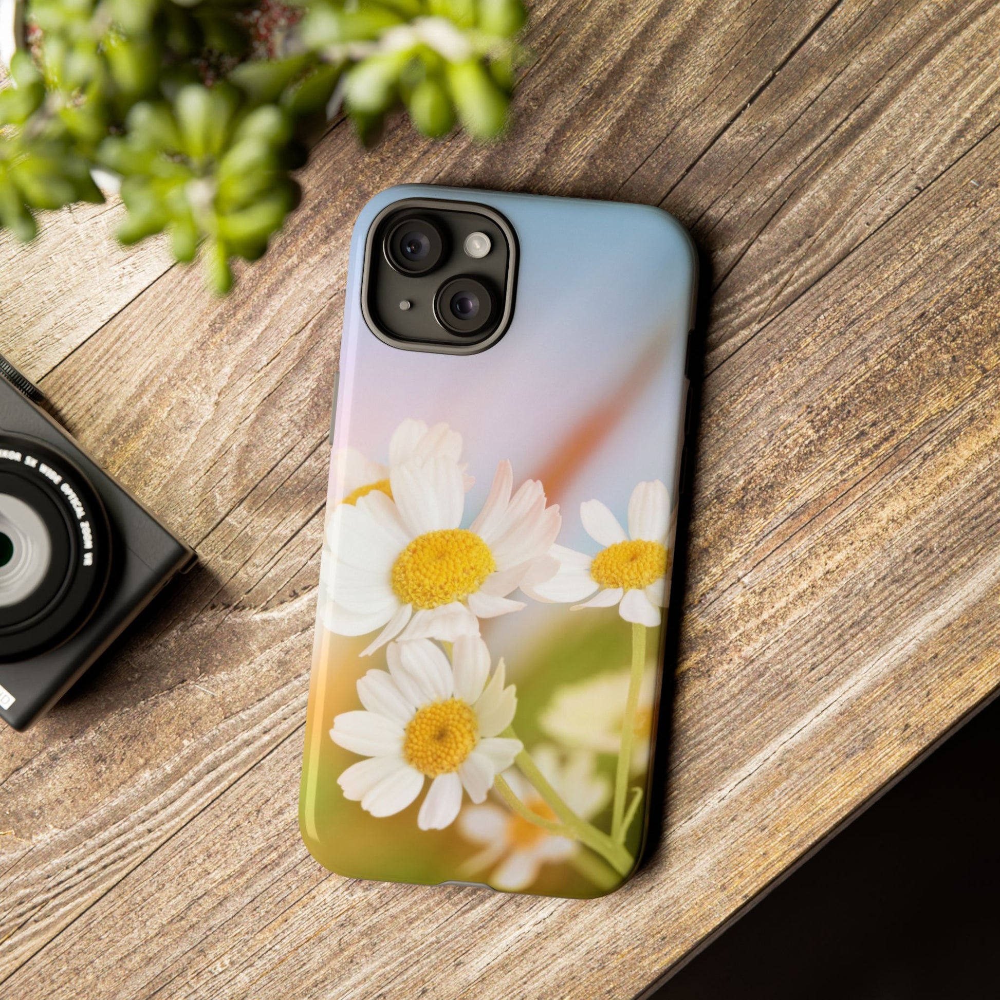 Personalize your iPhone and Samsung Galaxy devices with premium-quality custom protective phone cases. Every case has double layers for extra durability and protection while the clear, open ports stay out of your way when it comes to charging. The outer polycarbonate shell will resist daily impacts. Choose between matte or glossy finish. Beautiful daisy and blue sky design to brighten your day.