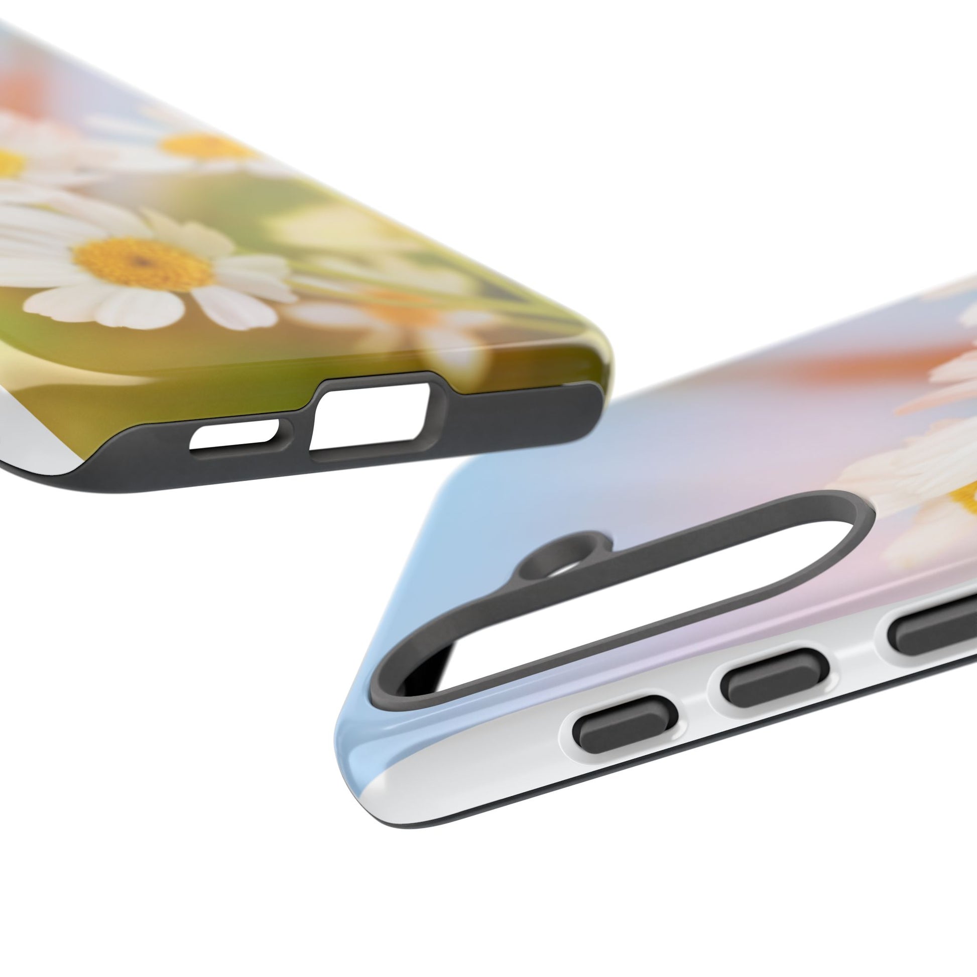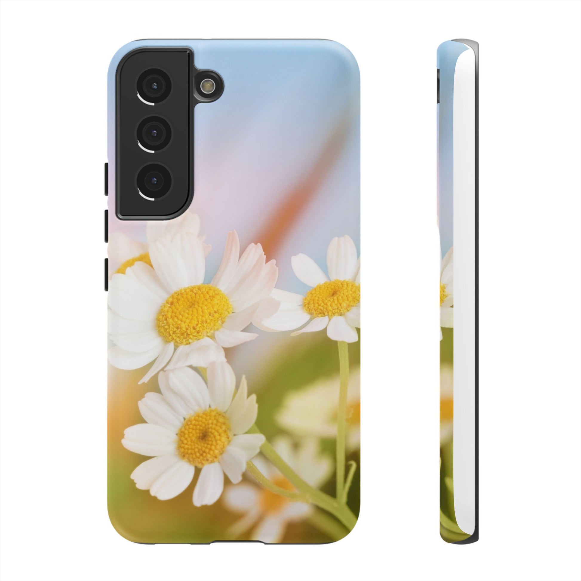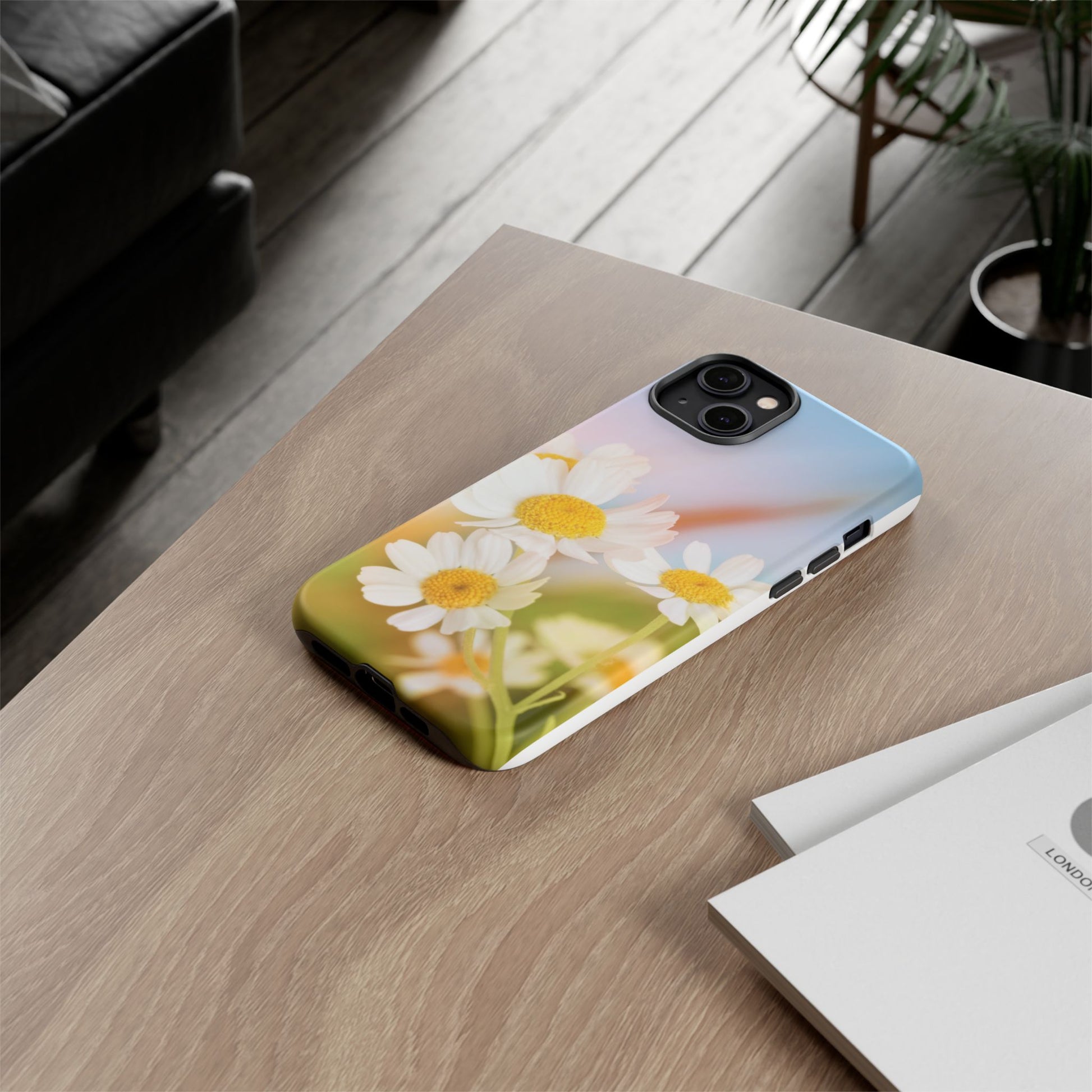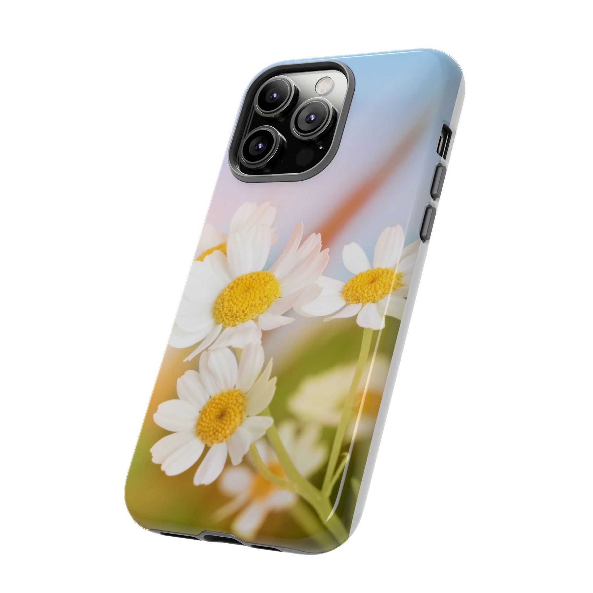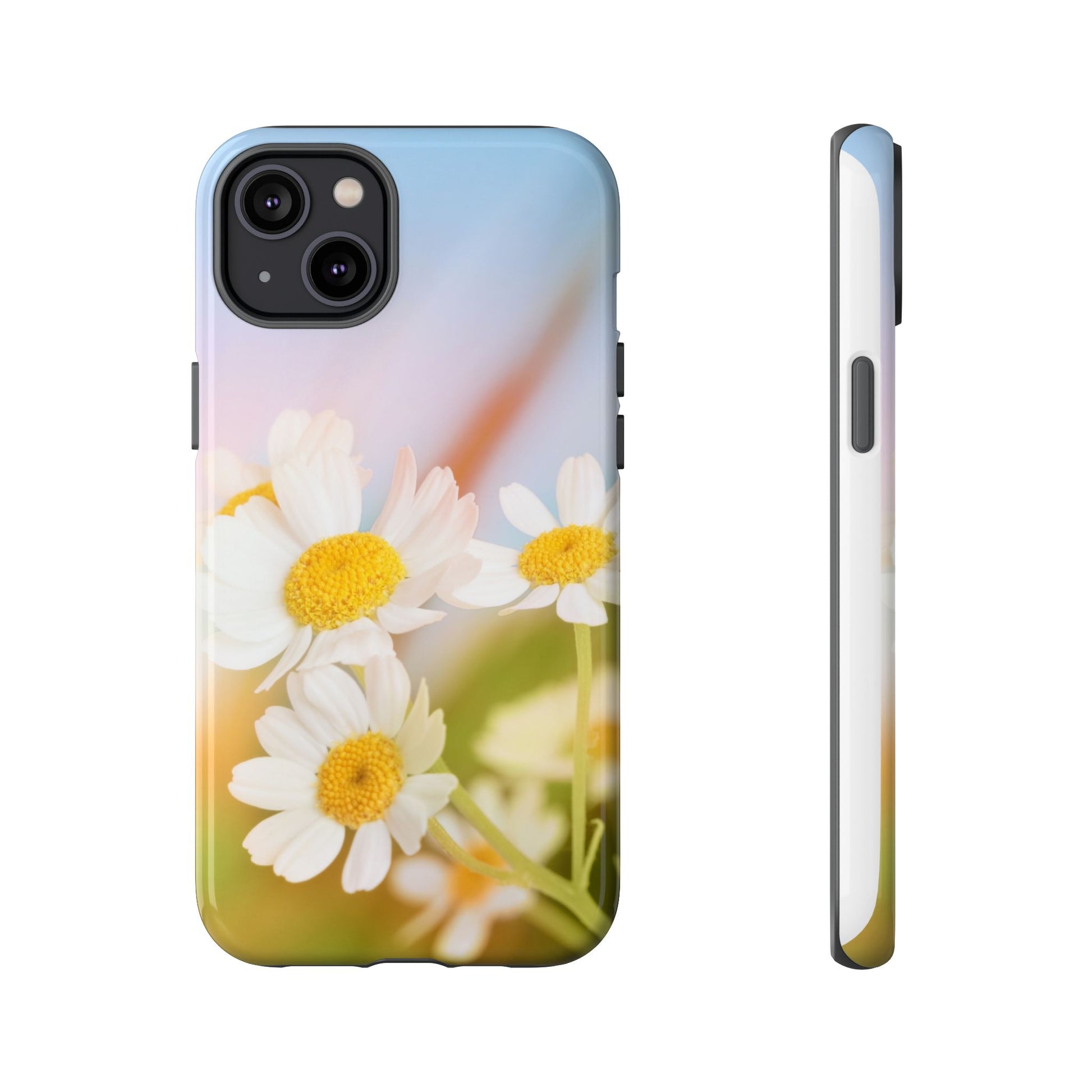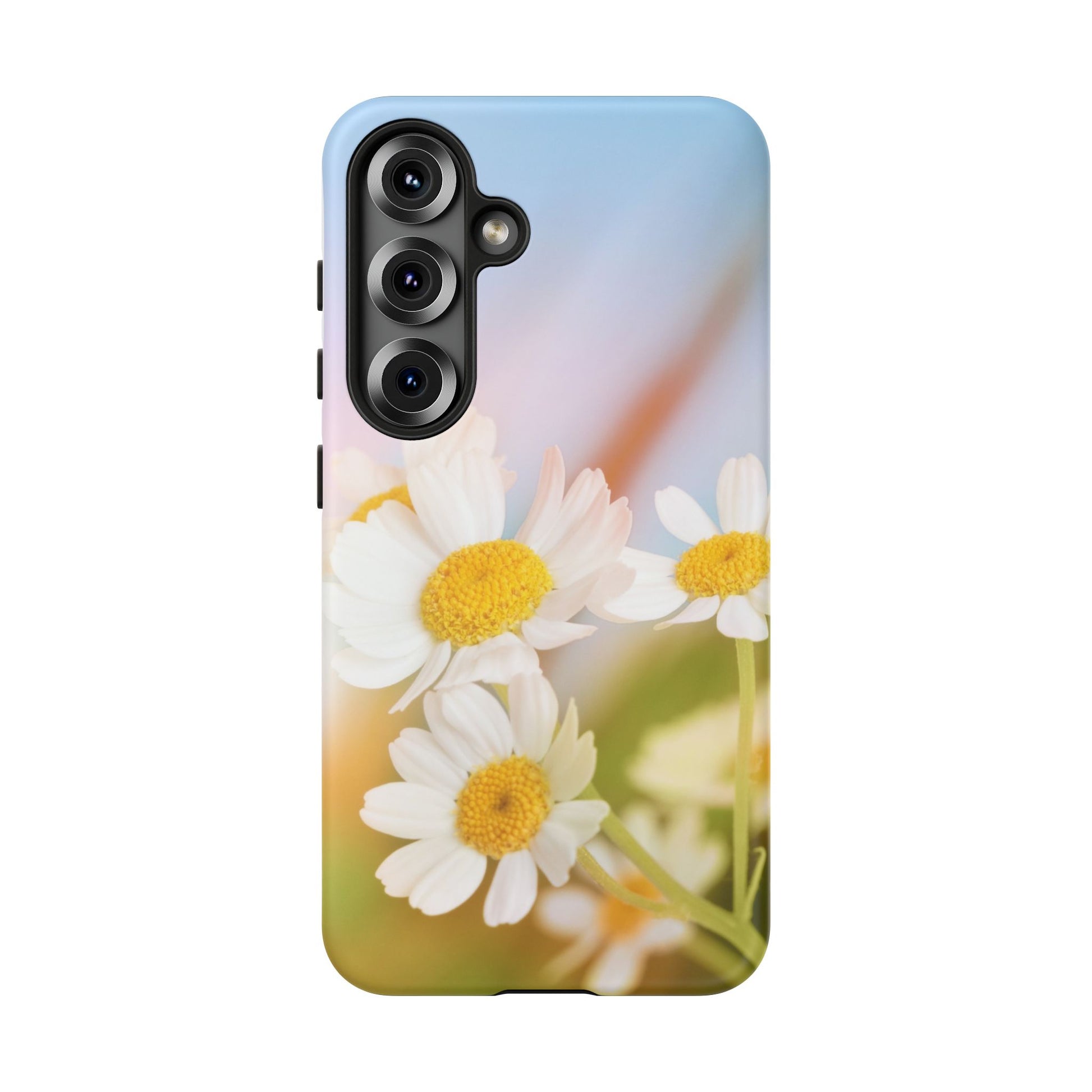Personalize your iPhone and Samsung Galaxy devices with premium-quality custom protective phone cases. Every case has double layers for extra durability and protection while the clear, open ports stay out of your way when it comes to charging. The outer polycarbonate shell will resist daily impacts. Choose between matte or glossy finish. Beautiful daisy and blue sky design to brighten your day.