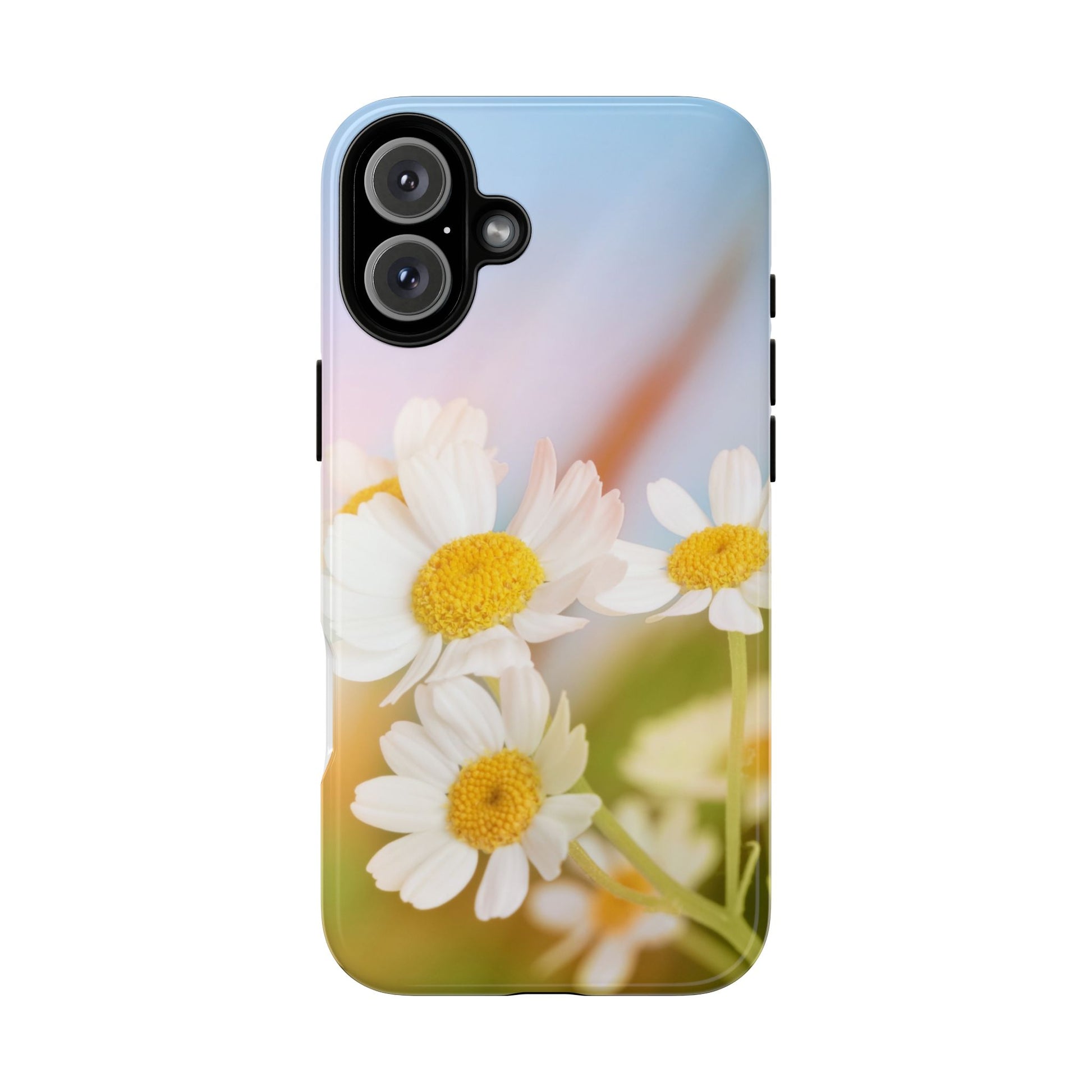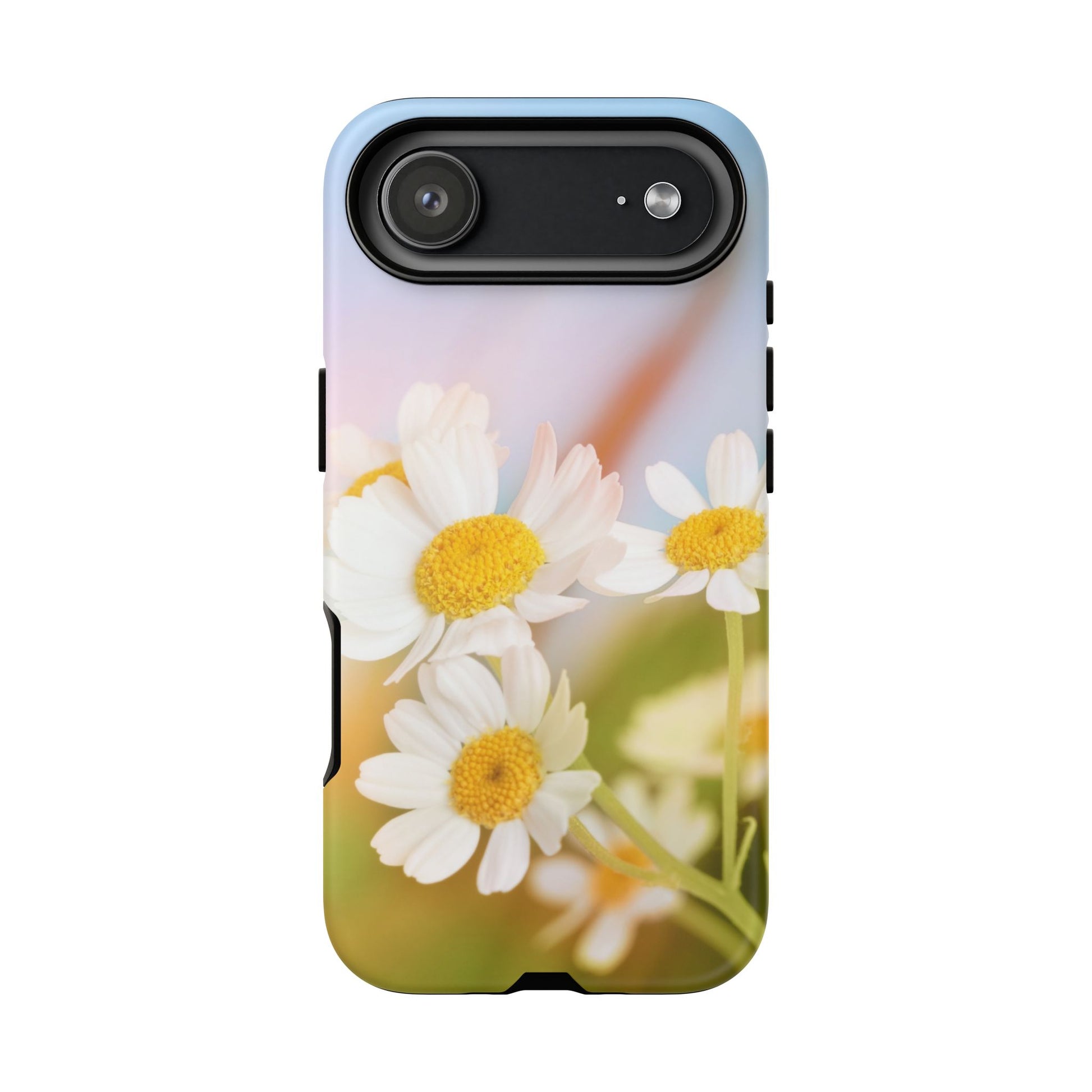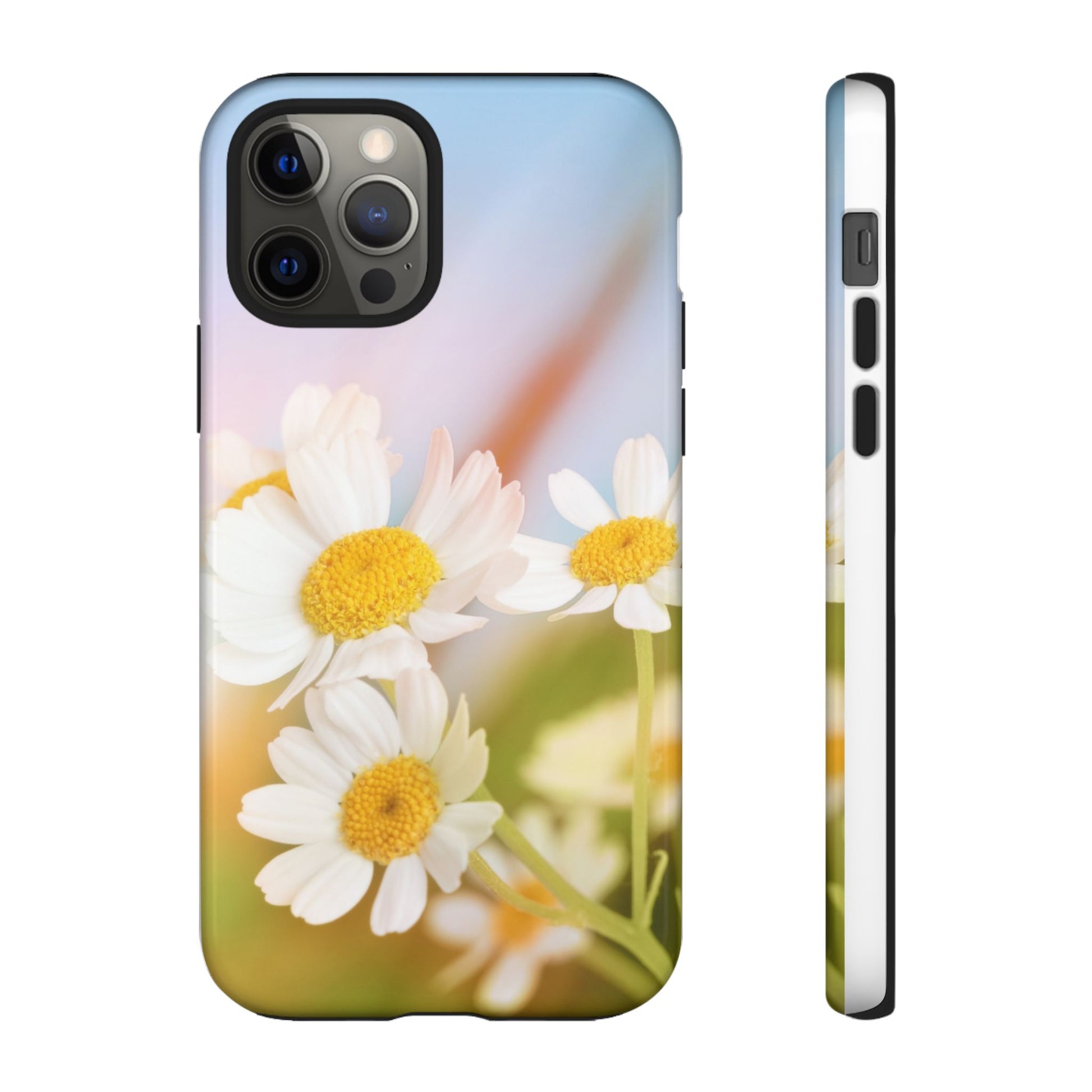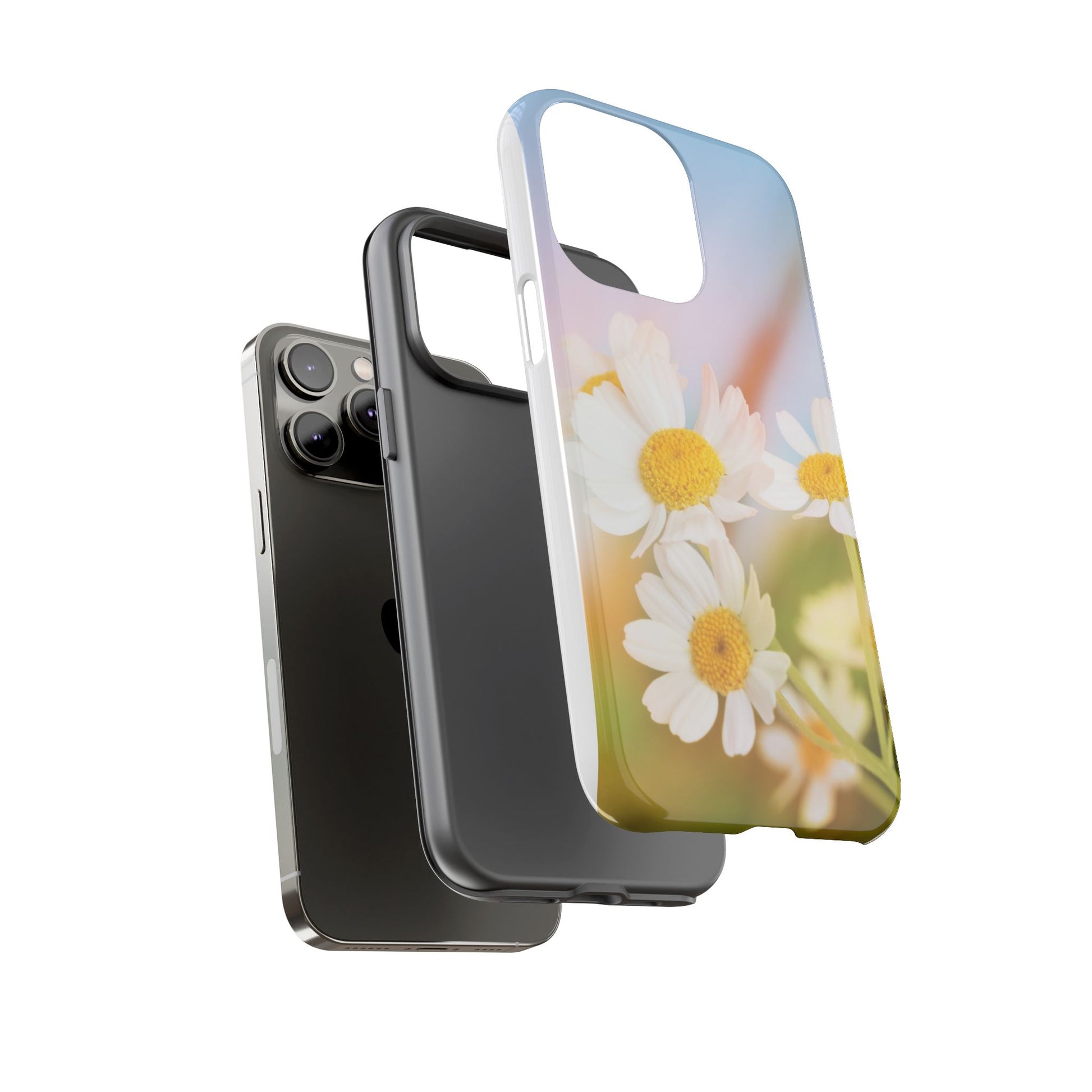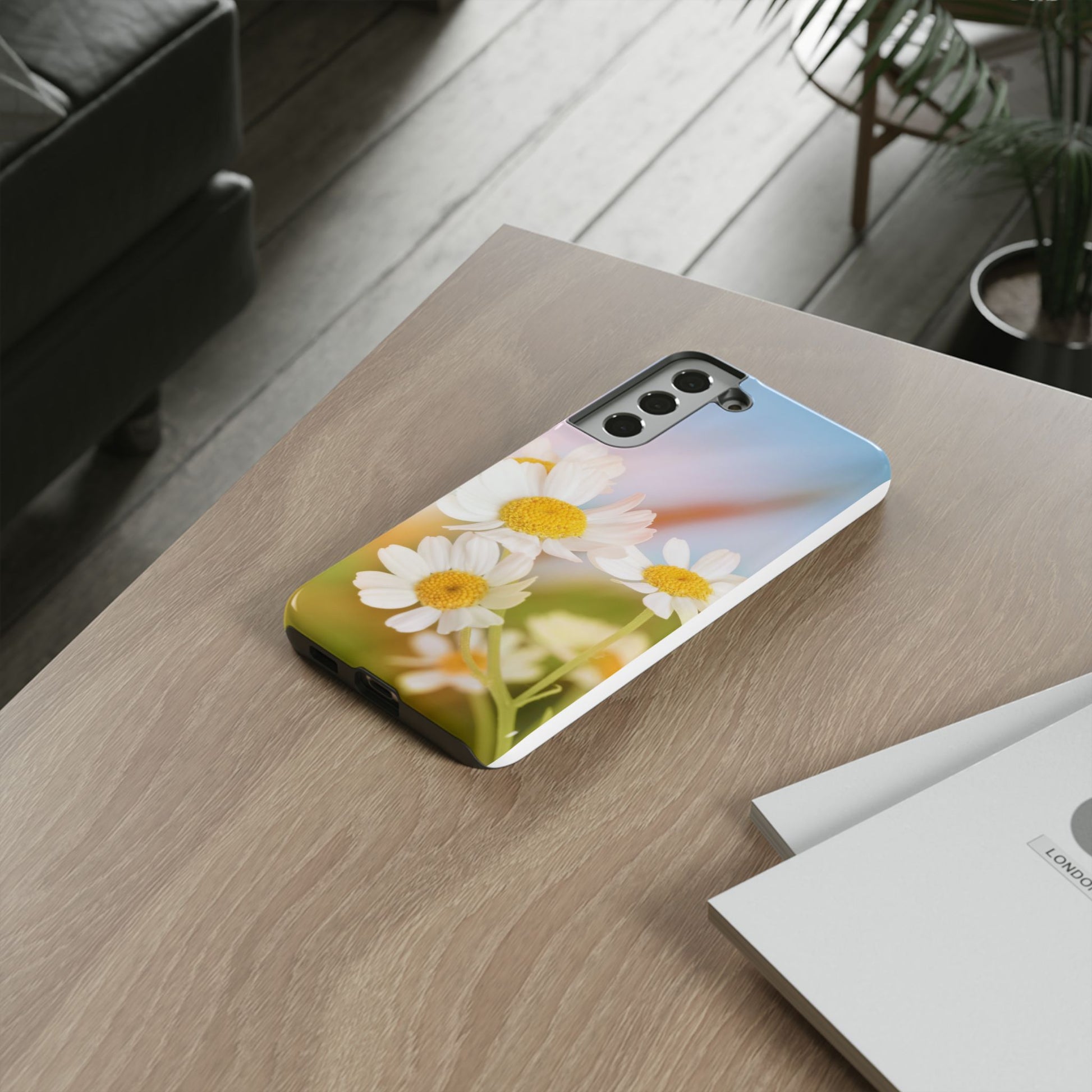 Personalize your iPhone and Samsung Galaxy devices with premium-quality custom protective phone cases. Every case has double layers for extra durability and protection while the clear, open ports stay out of your way when it comes to charging. The outer polycarbonate shell will resist daily impacts. Choose between matte or glossy finish. Beautiful daisy and blue sky design to brighten your day.