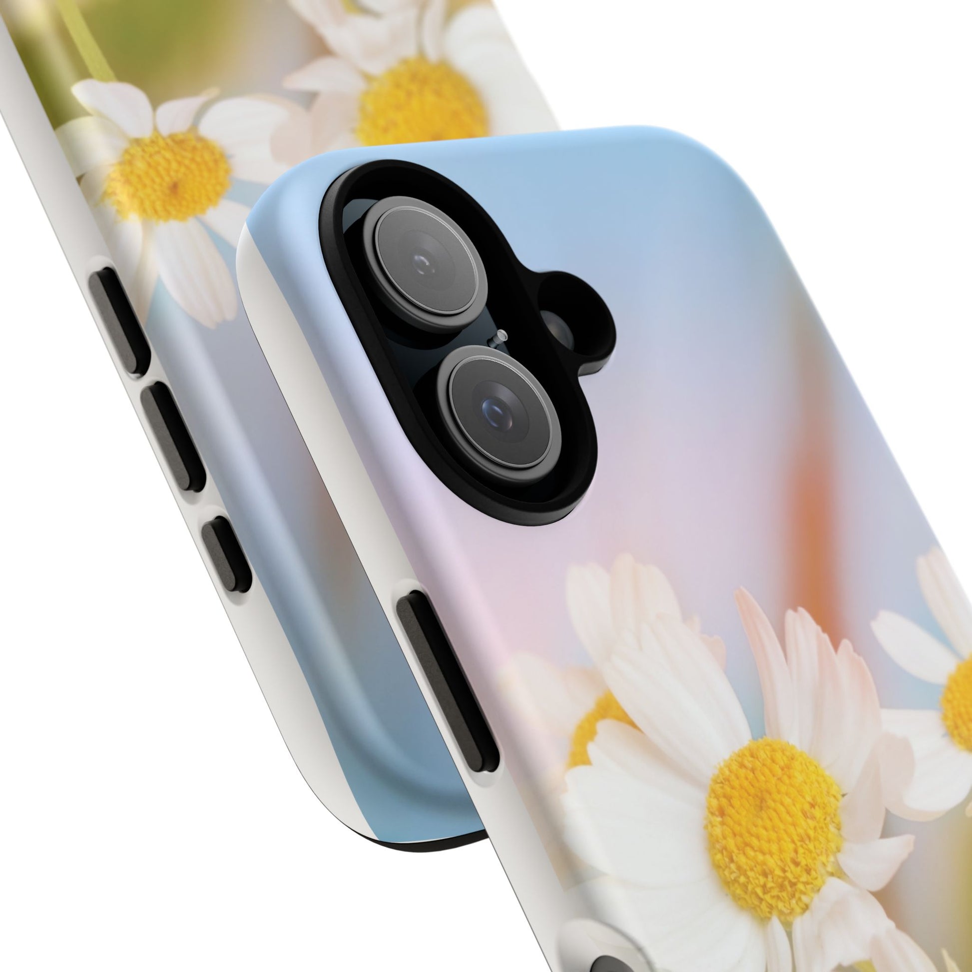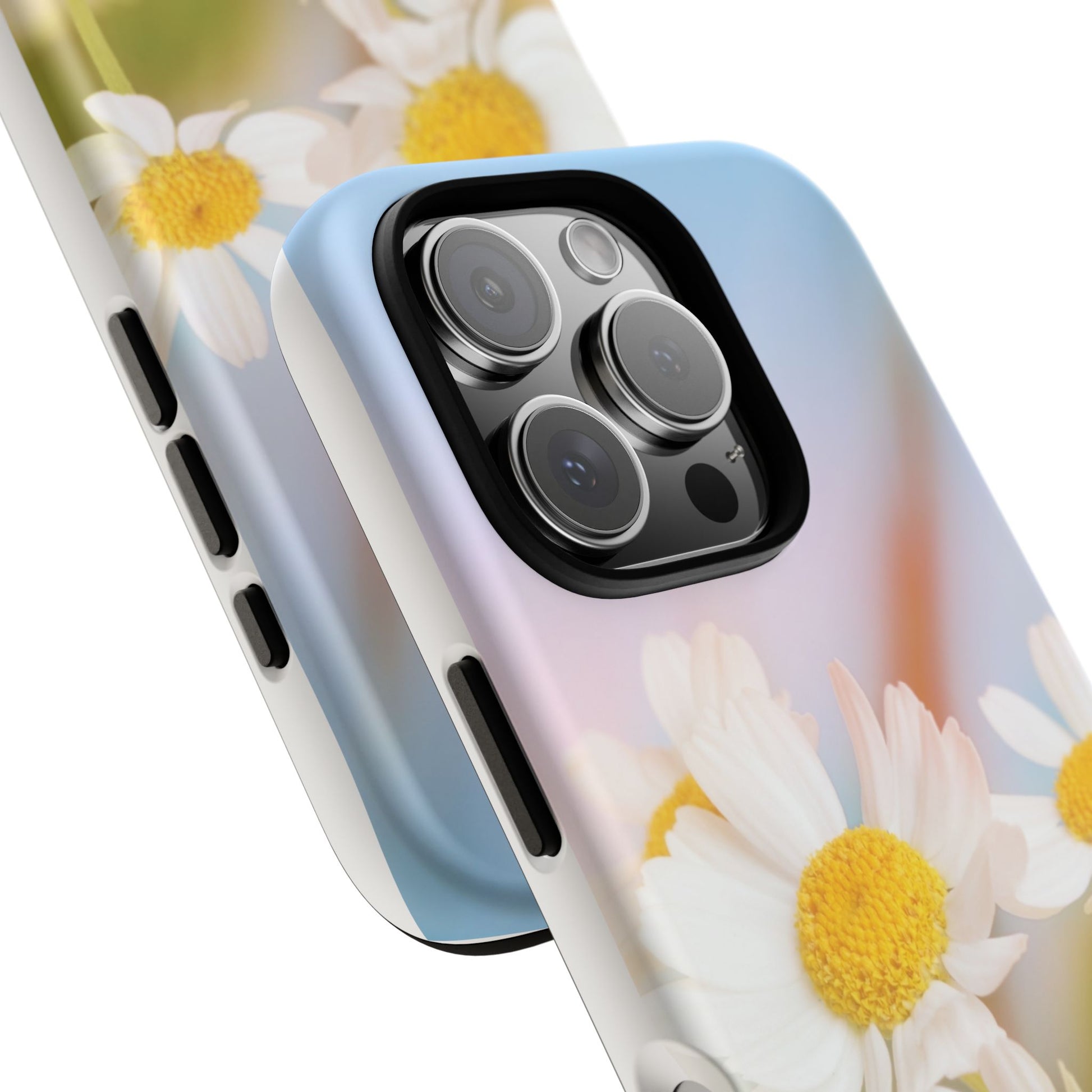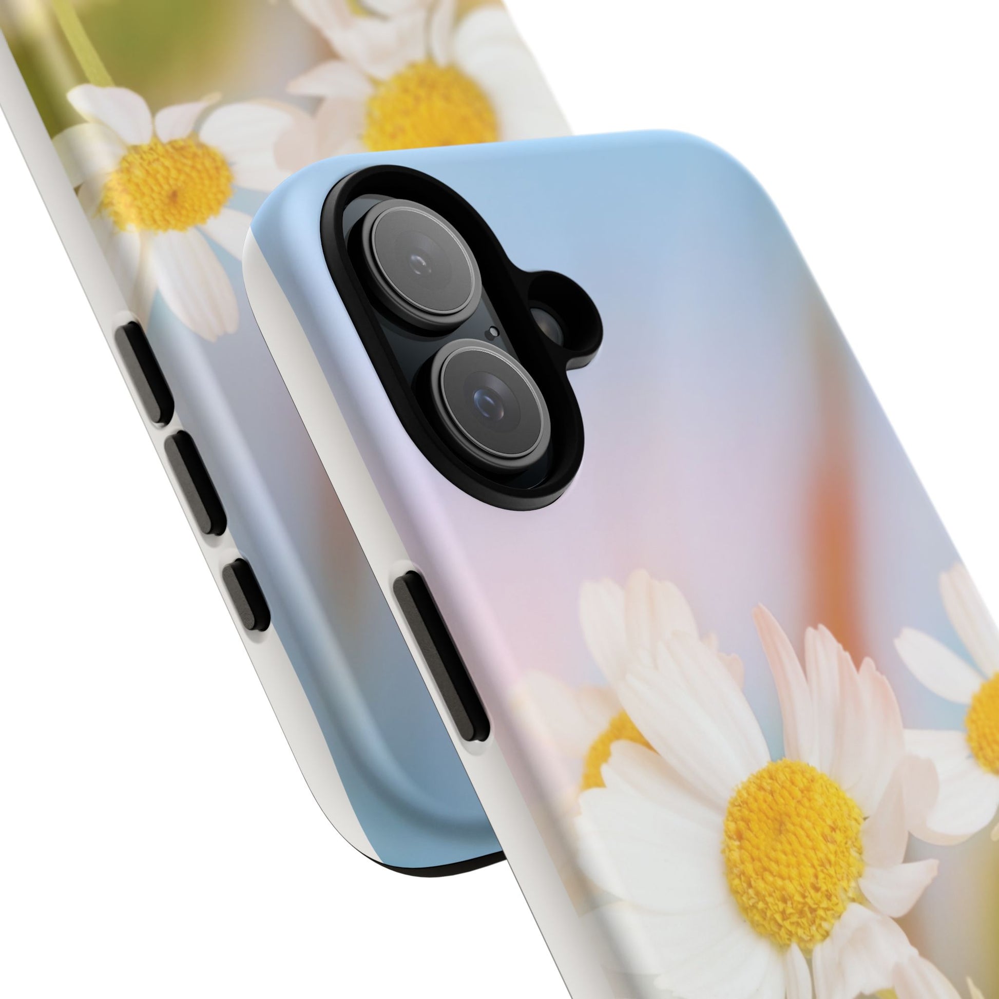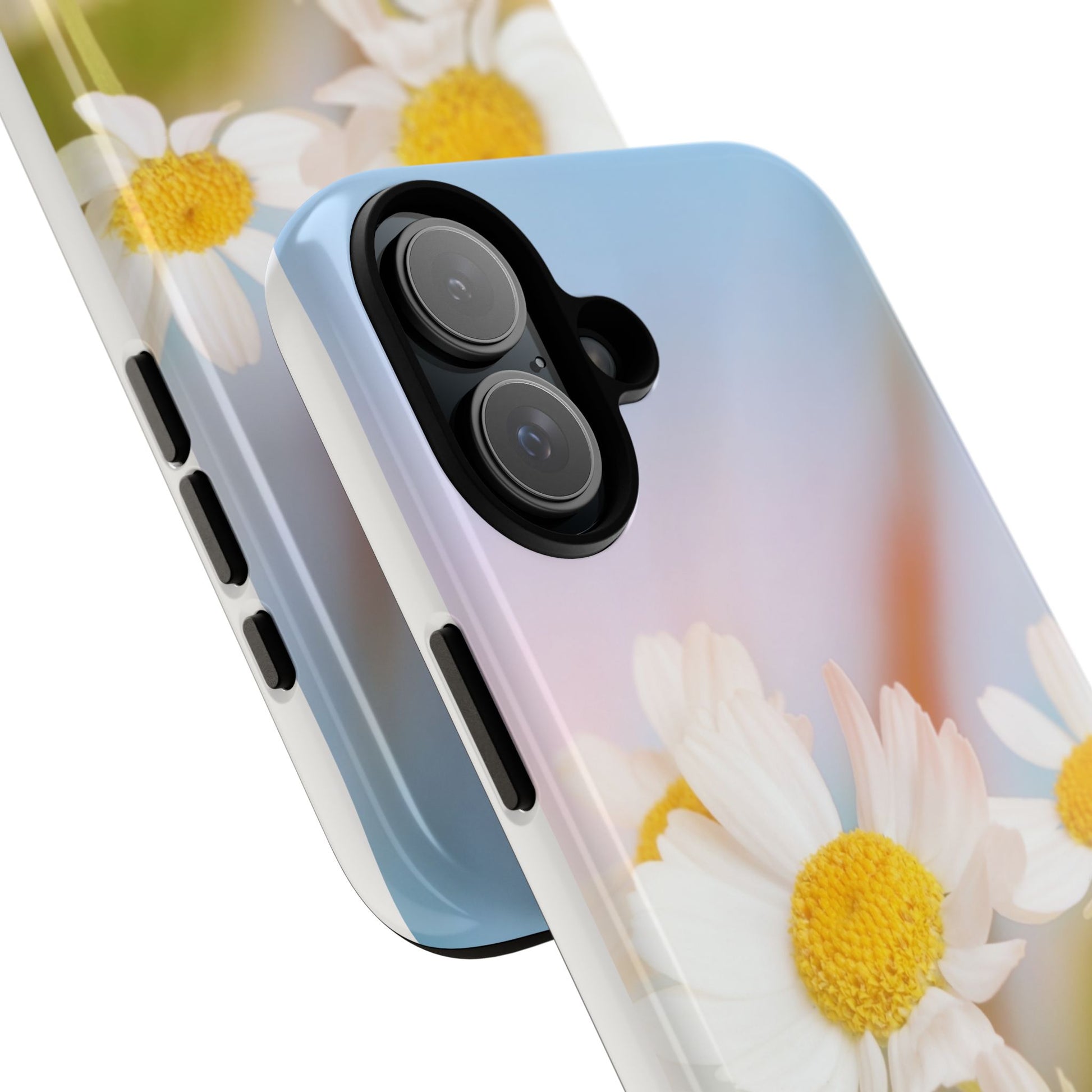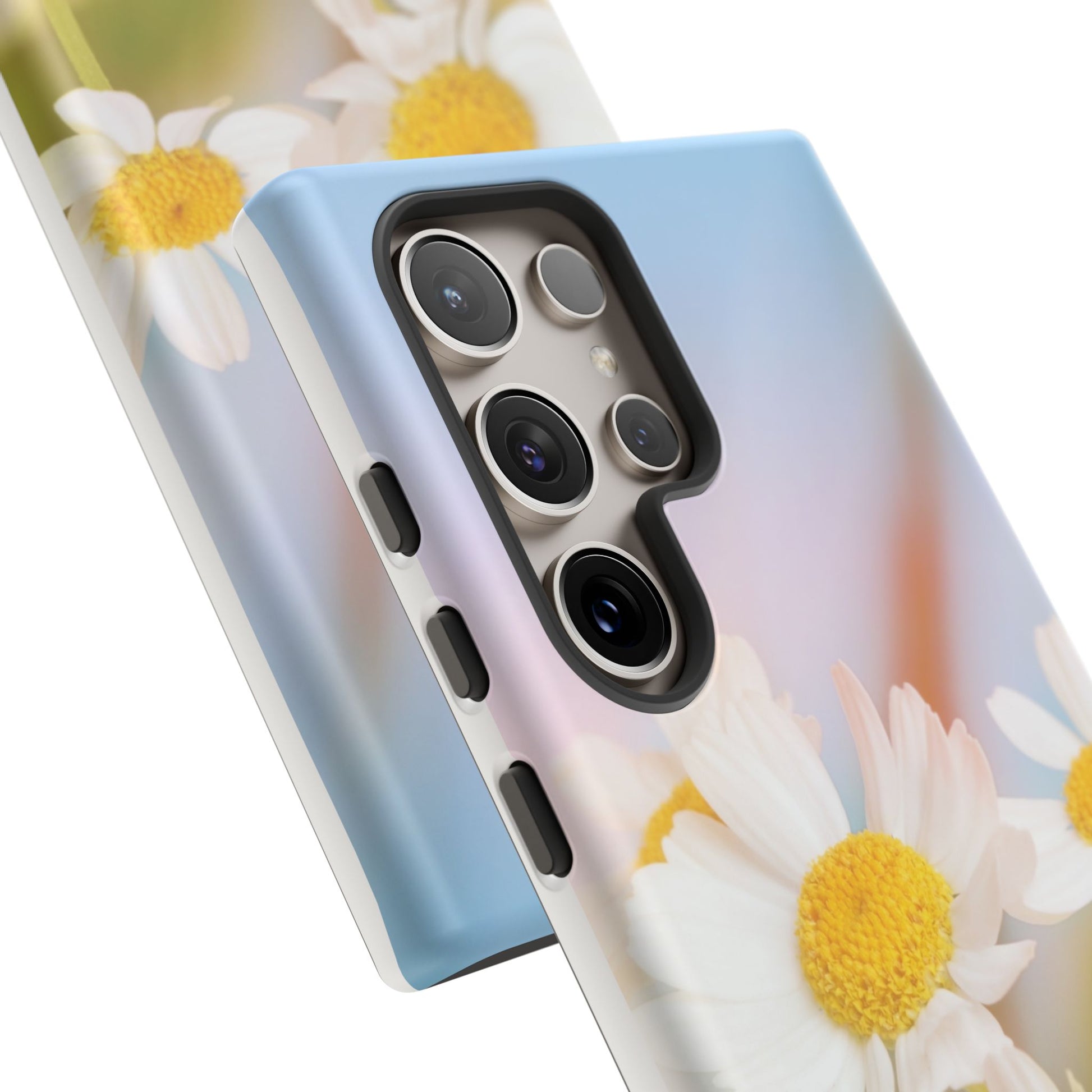 Personalize your iPhone and Samsung Galaxy devices with premium-quality custom protective phone cases. Every case has double layers for extra durability and protection while the clear, open ports stay out of your way when it comes to charging. The outer polycarbonate shell will resist daily impacts. Choose between matte or glossy finish. Beautiful daisy and blue sky design to brighten your day.