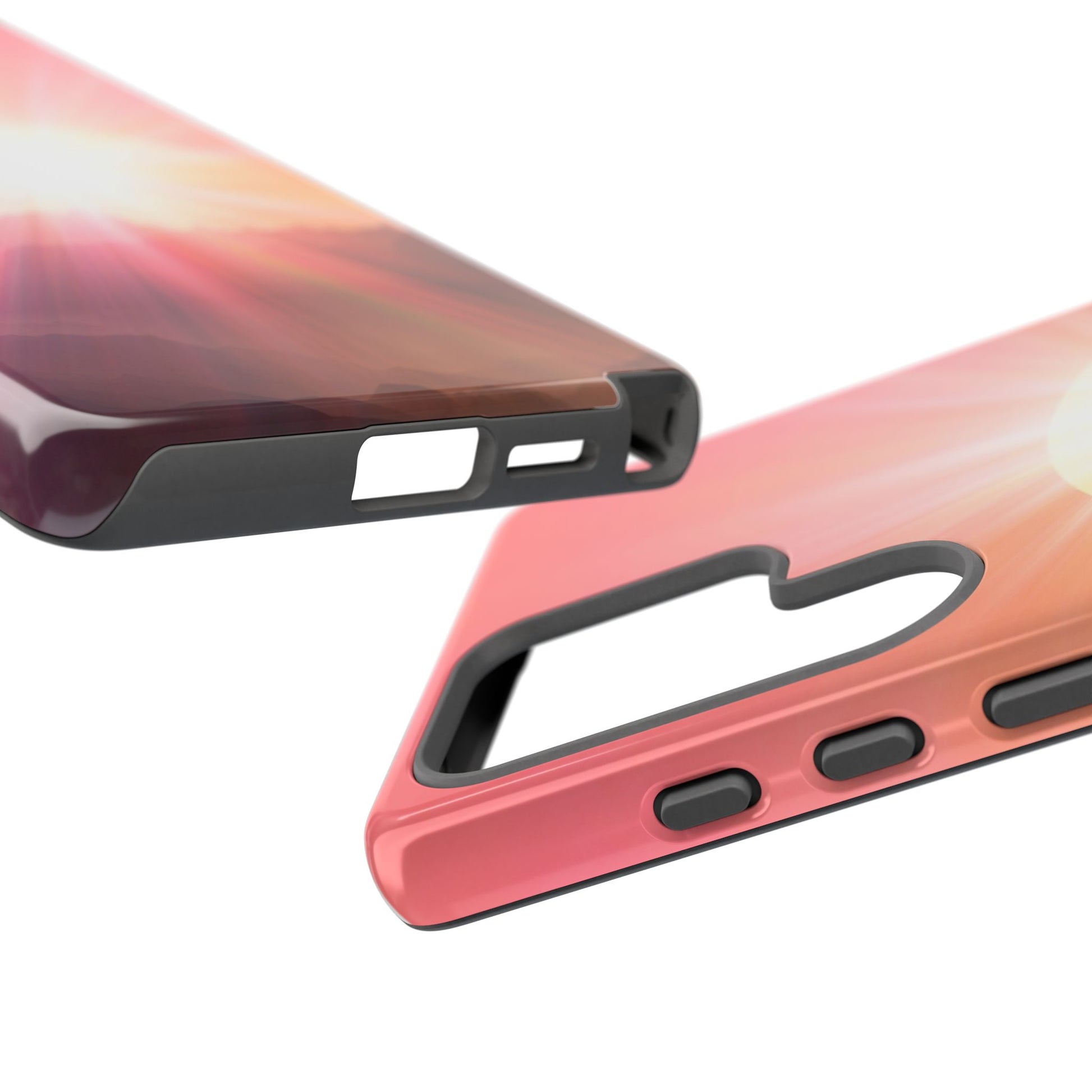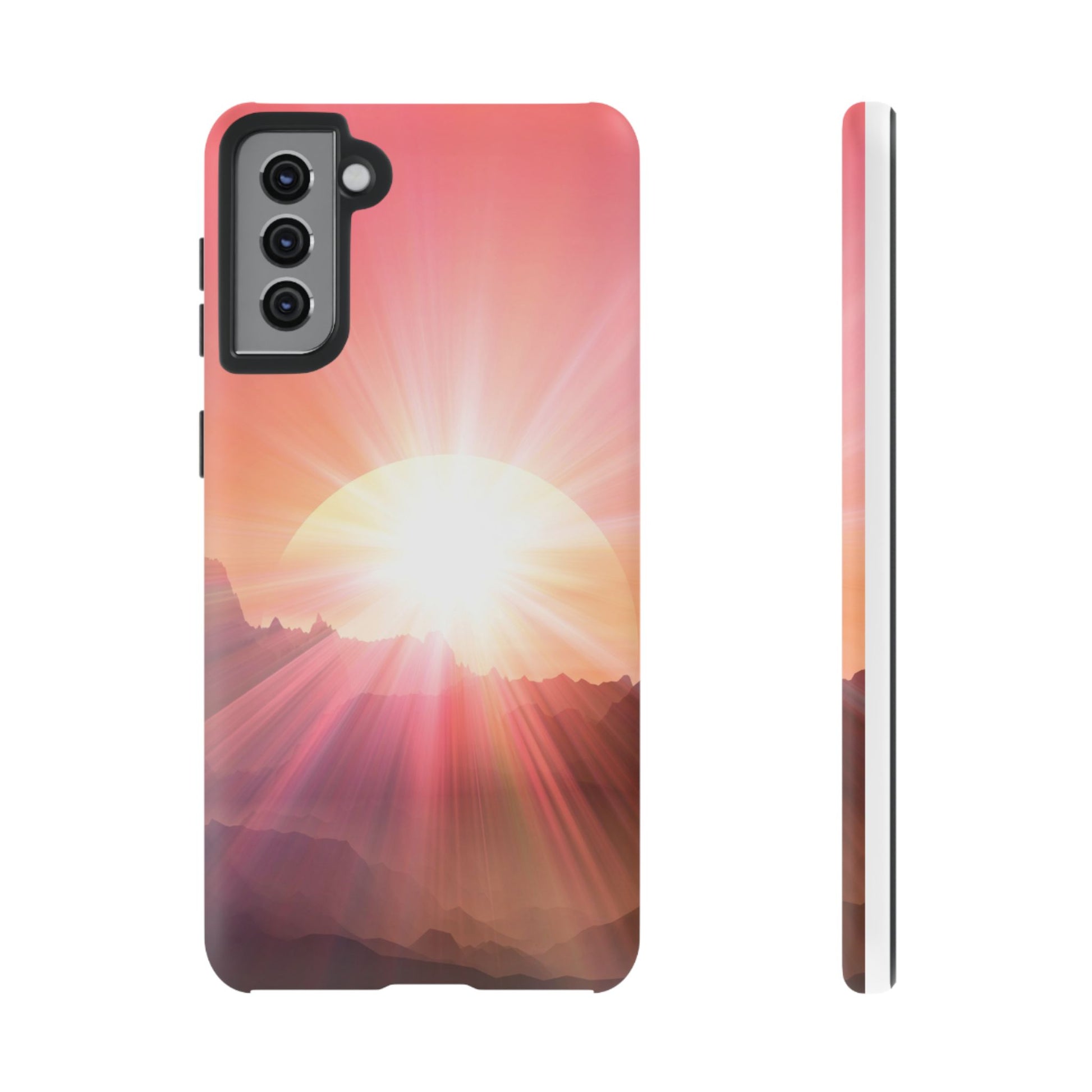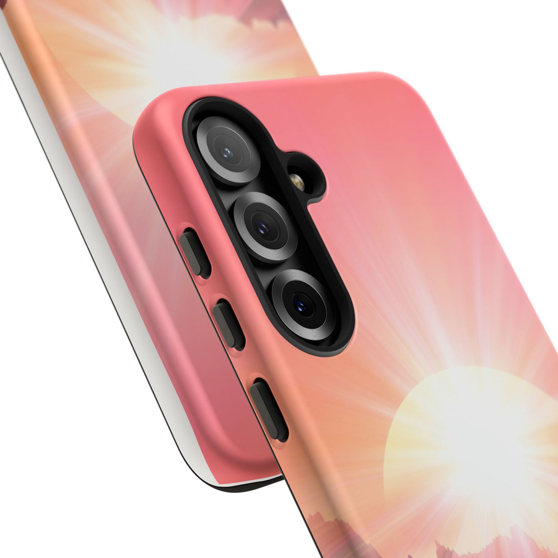 Personalize your iPhone and Samsung Galaxy devices with premium-quality custom protective phone cases. Every case has double layers for extra durability and protection while the clear, open ports stay out of your way when it comes to charging. The outer polycarbonate shell will resist daily impacts. Choose between matte or glossy finish. Beautiful sunrise design to brighten your day.