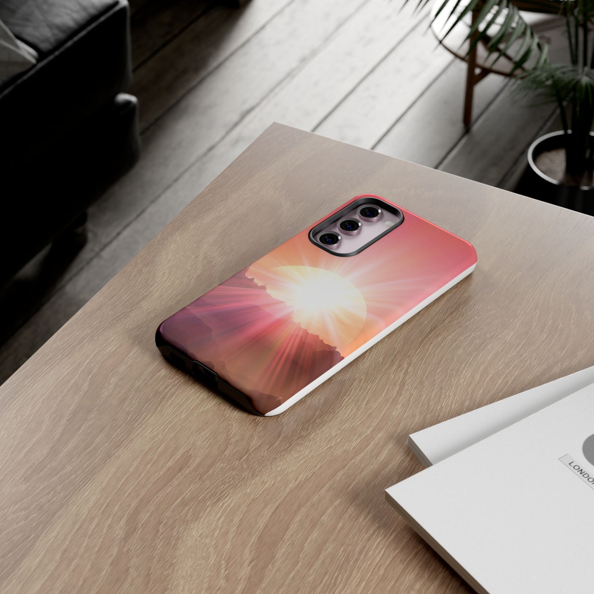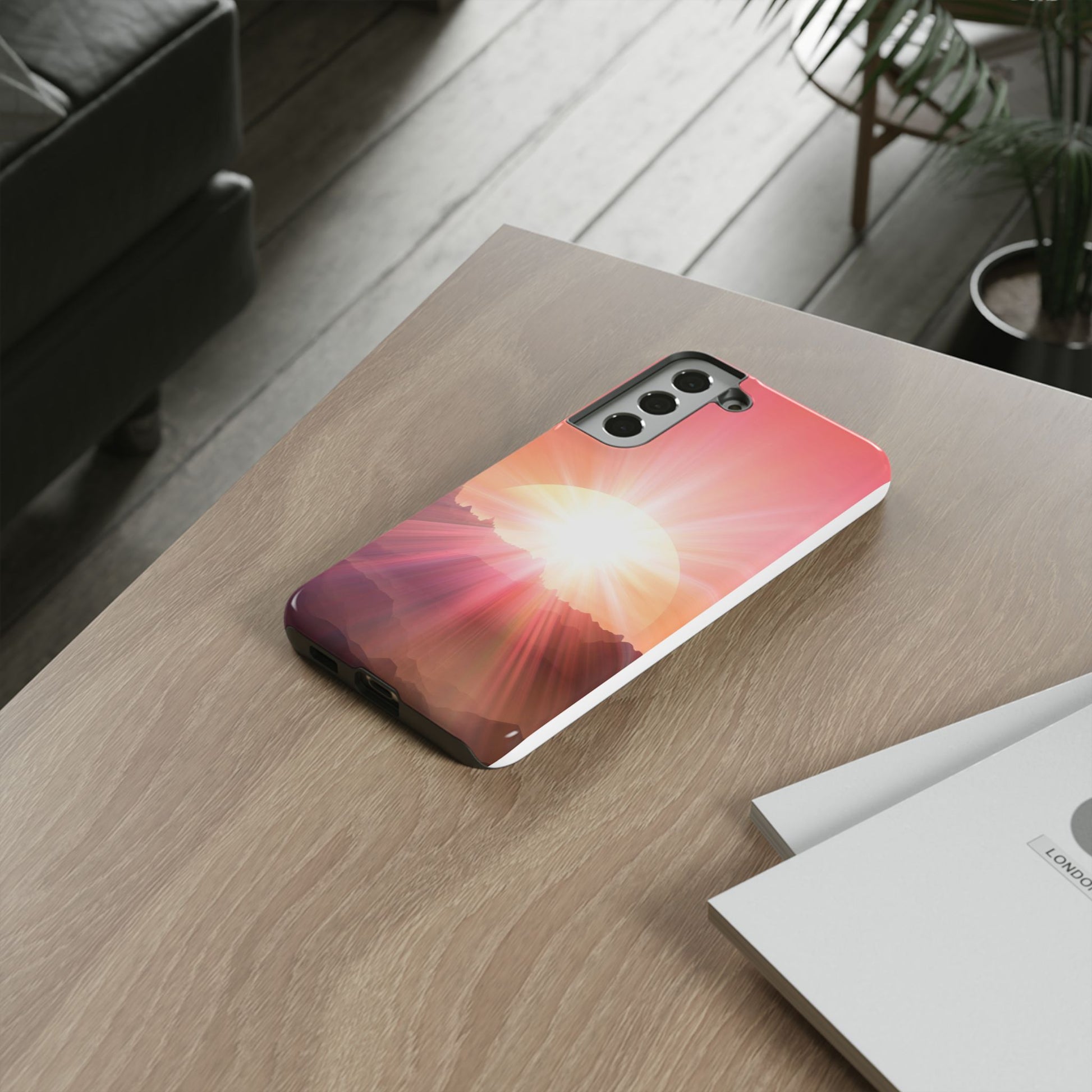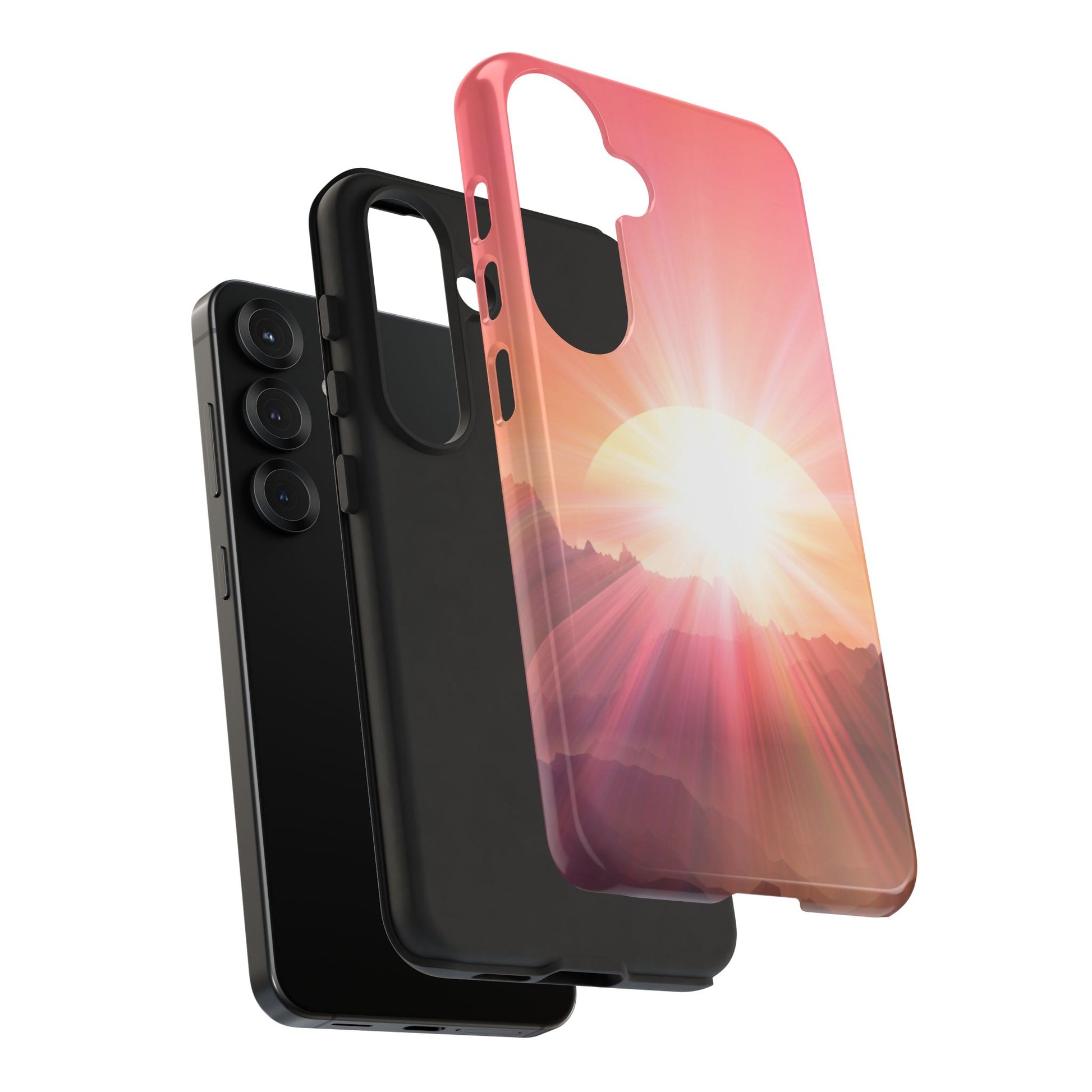Personalize your iPhone and Samsung Galaxy devices with premium-quality custom protective phone cases. Every case has double layers for extra durability and protection while the clear, open ports stay out of your way when it comes to charging. The outer polycarbonate shell will resist daily impacts. Choose between matte or glossy finish. Beautiful sunrise design to brighten your day.